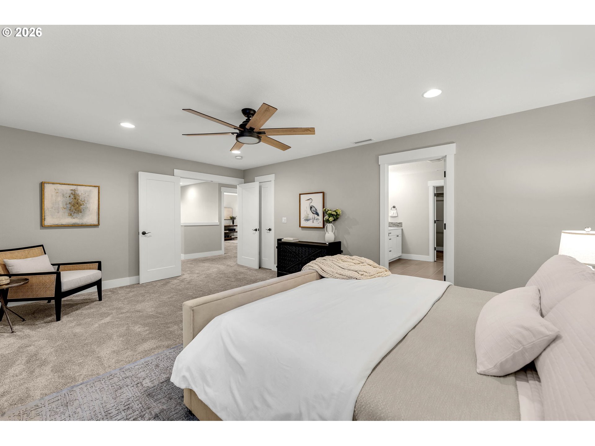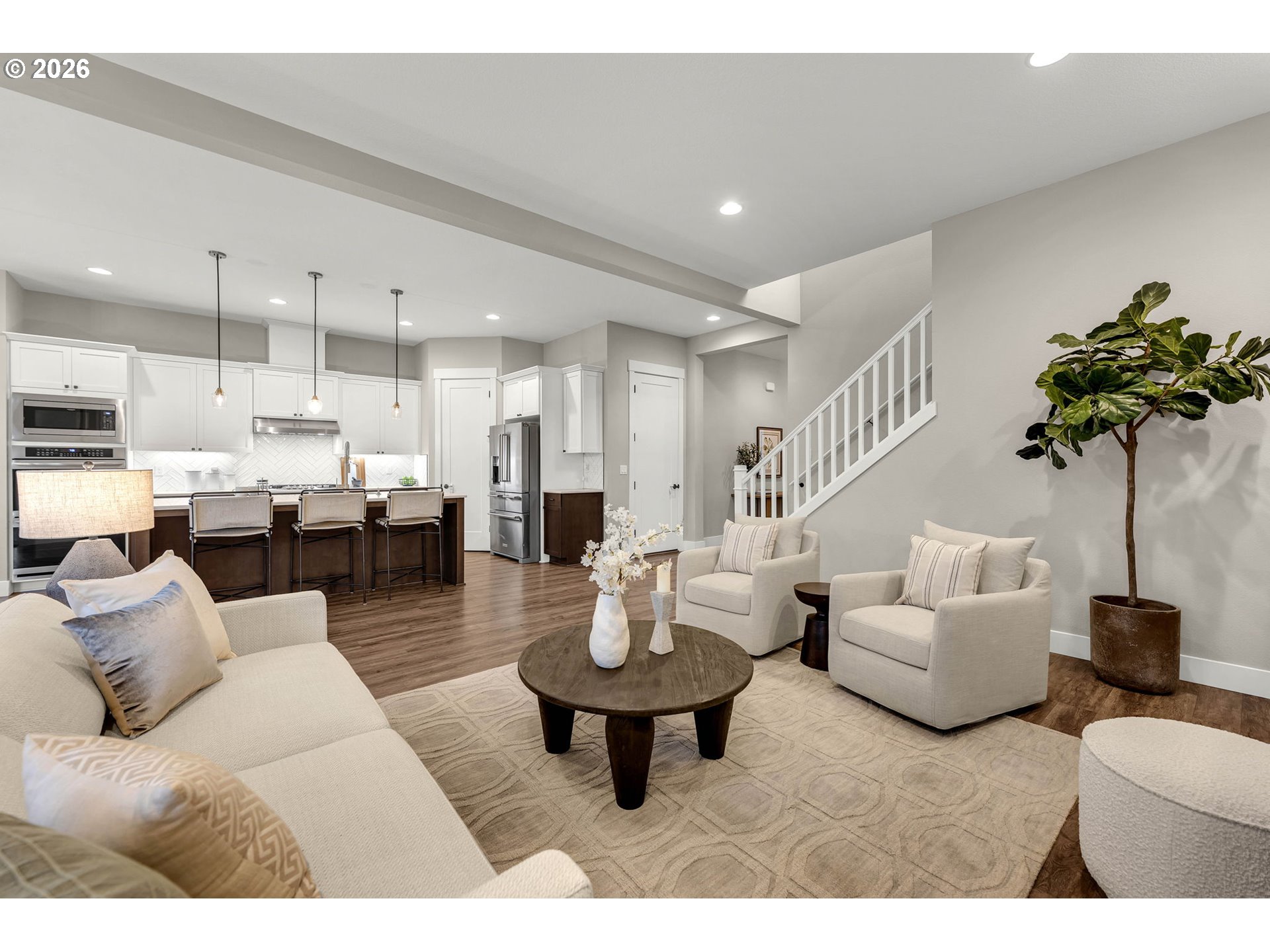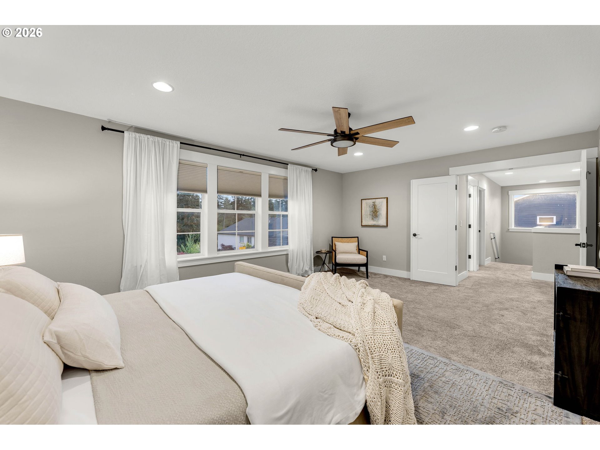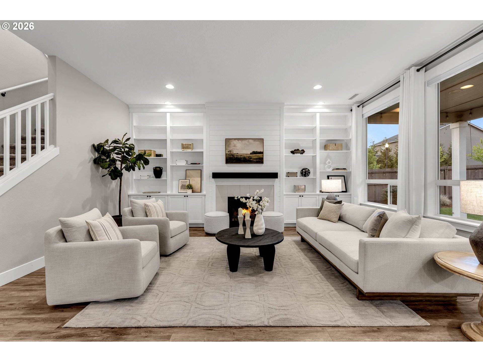 Located in one of Washington’s fastest growing cities, this stunning corner lot home offers space, style, and thoughtful design throughout. Featuring a rare 4-car garage with a convenient man door, this property blends functionality with high-end living. Step inside to an open-concept floor plan with soaring 10-foot ceilings and abundant natural light. The main level includes a dedicated office with custom built-ins, perfect for working from home, while the living room showcases additional custom built-ins and upscale finishes that elevate the space. The gourmet kitchen flows seamlessly into the living and dining areas and includes a custom pantry for added storage and organization. Upstairs, enjoy a spacious bonus room with closet, ideal for media, play, or 4th bedroom. Blackout blinds in all bedrooms provide comfort and privacy. The luxurious primary suite features a spa-like bathroom complete with a freestanding soaking tub and dual-head shower. Outside, the covered back patio creates a perfect year-round entertaining space, complemented by fresh landscaping and a generously sized corner lot. Located within highly sought-after schools and surrounded by Ridgefield’s extensive network of parks and connected trails. This is a home you wont find twice!