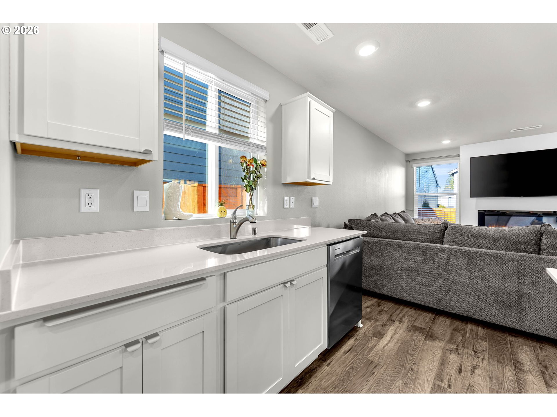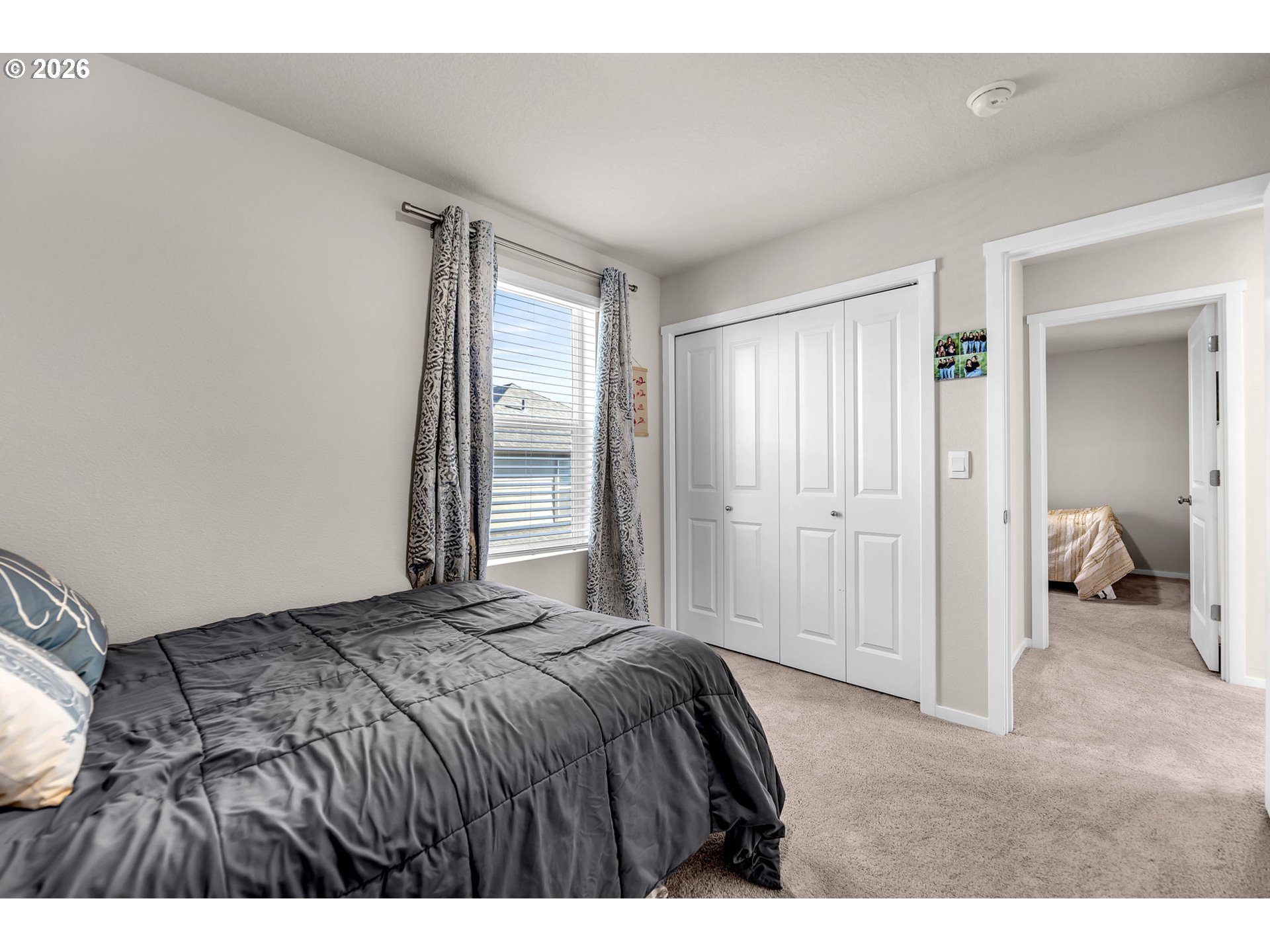 Welcome home to this beautiful 4-bedroom, 2.5-bath property in the desirable Ridgefield community, perfectly located just minutes from the freeway, dining, and shopping. The main level features engineered hardwood floors and an open floor plan ideal for modern living and entertaining. The spacious living room offers a cozy fireplace and flows seamlessly into the dining area with a slider leading to the backyard patio. The kitchen is a standout with stainless steel appliances, quartz countertops, a large island with eat bar, and a corner pantry for plenty of storage.Upstairs, you’ll find a versatile large 4th bedroom or bonus room, a loft space, and carpeted bedrooms for added comfort. The primary suite includes a walk-in shower and a relaxing retreat feel. The laundry room is conveniently located upstairs and features engineered hardwood floors.Outside, enjoy a fully fenced backyard with a large patio, perfect for summer BBQs or quiet evenings. Additional highlights include a 2-car attached garage and a location that blends comfort with convenience.This home checks all the boxes—don’t miss your chance to make it yours!