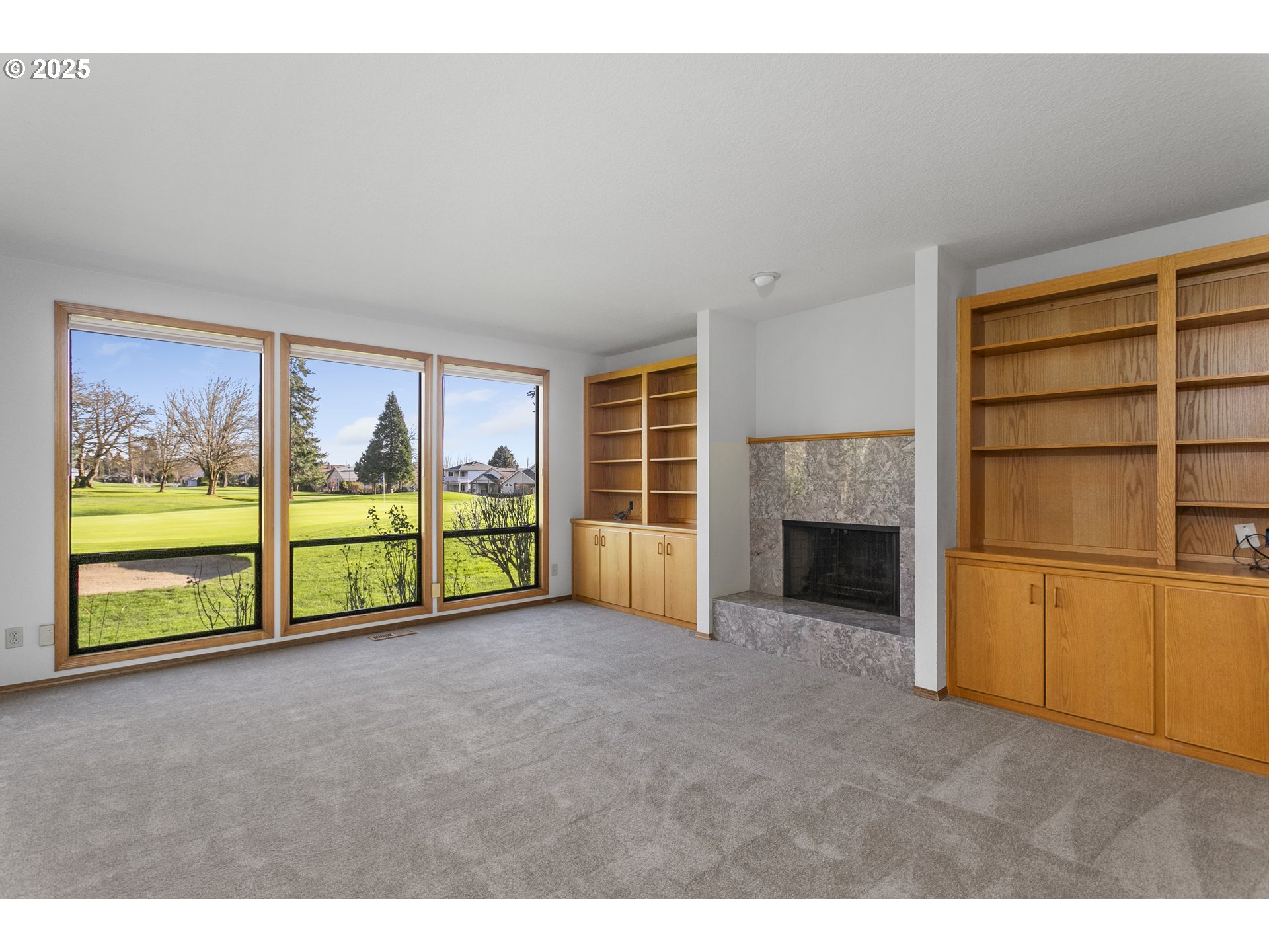 This property is situated on a premier golf course location, offering unobstructed views of two fairways without the interference of golf balls or the need for netting. The golf cart path is positioned on the opposite side, ensuring a tranquil environment. Residents can enjoy panoramic vistas from multiple living spaces, including the living room, dining room, family room, and kitchen. The Cambridge floor plan is one of the largest single-story designs within the community, distinguished by its expansive driveway and a luxurious owner's suite featuring a foyer, a sizable walk-in closet with natural light, and soaring vaulted ceilings. The main living area is spacious, with a wall of tall windows that overlook the fairway, enhancing natural light and scenic views. The dining, family, and kitchen areas also feature high ceilings, creating an open and airy atmosphere. The kitchen, equipped with stainless steel appliances, opens into a cozy family room with a warm fireplace and built-in bookshelves, ideal for relaxation and entertainment. Outdoor living is enhanced by a covered patio, suitable for rainy days, and a sun deck offering an excellent vantage point over the two fairways. This residence is located within a 55+ master-planned community that provides a comprehensive range of amenities, including a clubhouse, organized activities, fitness facilities, a swimming pool, and various recreational options, fostering an active, engaging lifestyle for its residents.