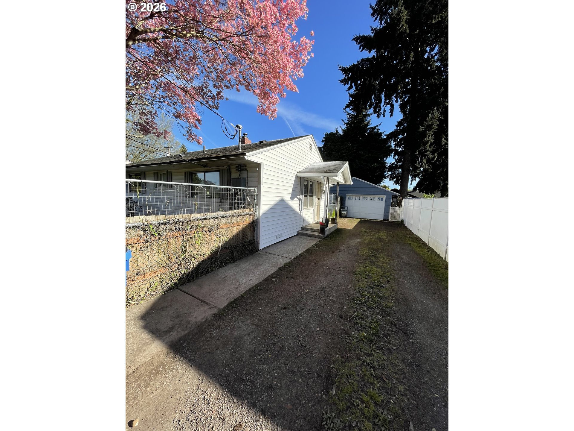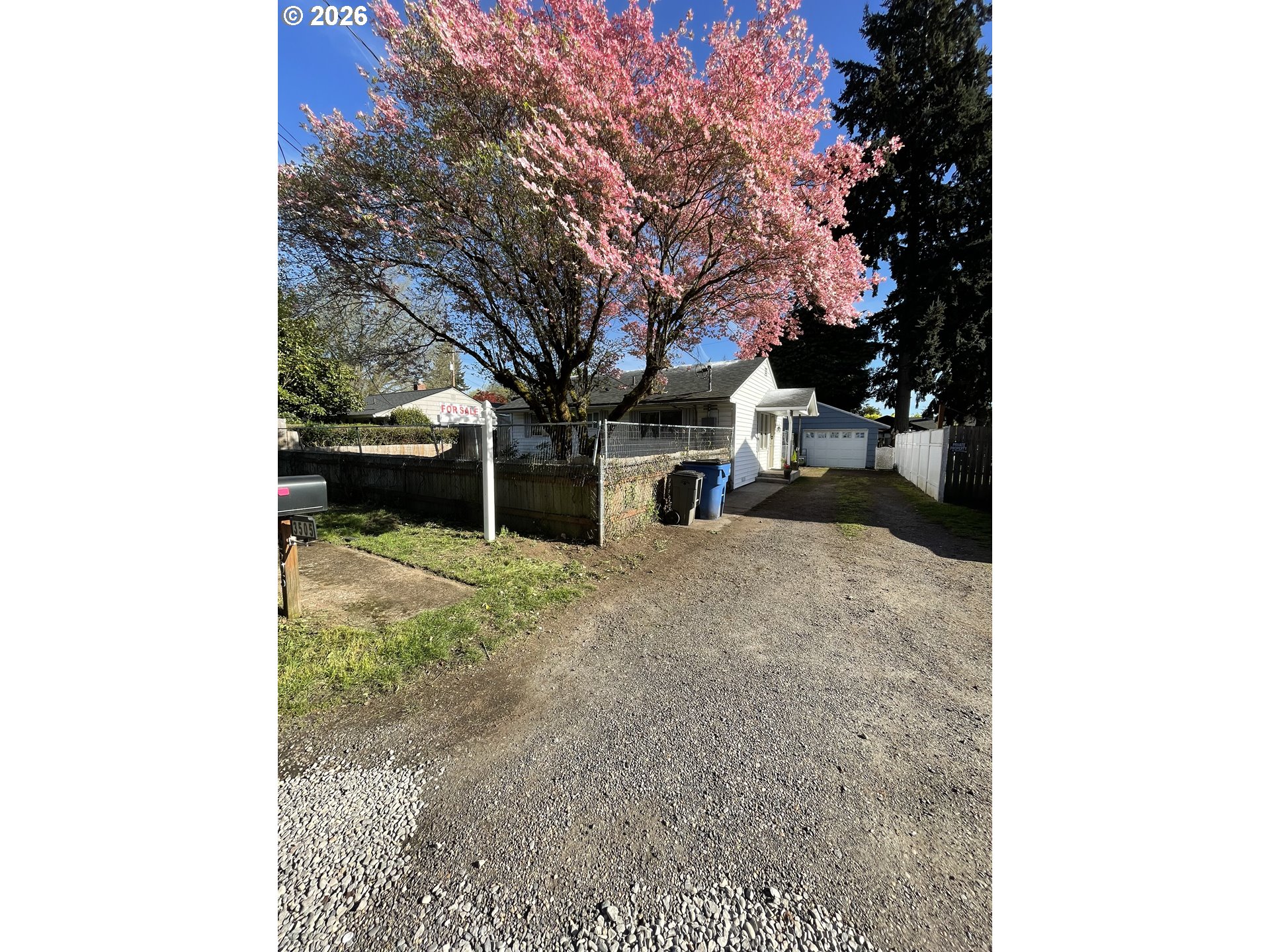 Charming and well-maintained what was once a 2-bedroom and is now a 1-bedroom, 1-bath home with solid construction and thoughtful updates throughout. Seller changed the floor plan layout by increasing the space for the living room area by taking down the wall between the living room and the 2nd bedroom. Easy project to put a wall back if 2 bedrooms are needed. Features include a heat pump with A/C, refinished hardwood floors, and updated windows for improved comfort and efficiency. The fully fenced yard offers privacy and functionality, complete with a garden area in the backyard featuring raspberries, blueberries, and raised vegetable garden in the front. The garage provides versatile space—one side functions as a 1-car garage with a new door and opener, while the other includes a laundry area, partial bath, and additional storage. All appliances are included, making this home move-in ready.