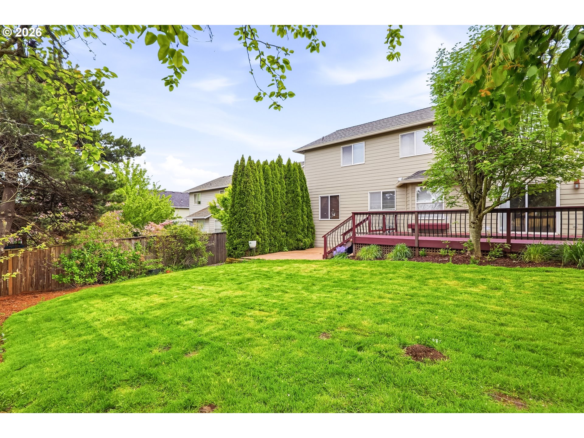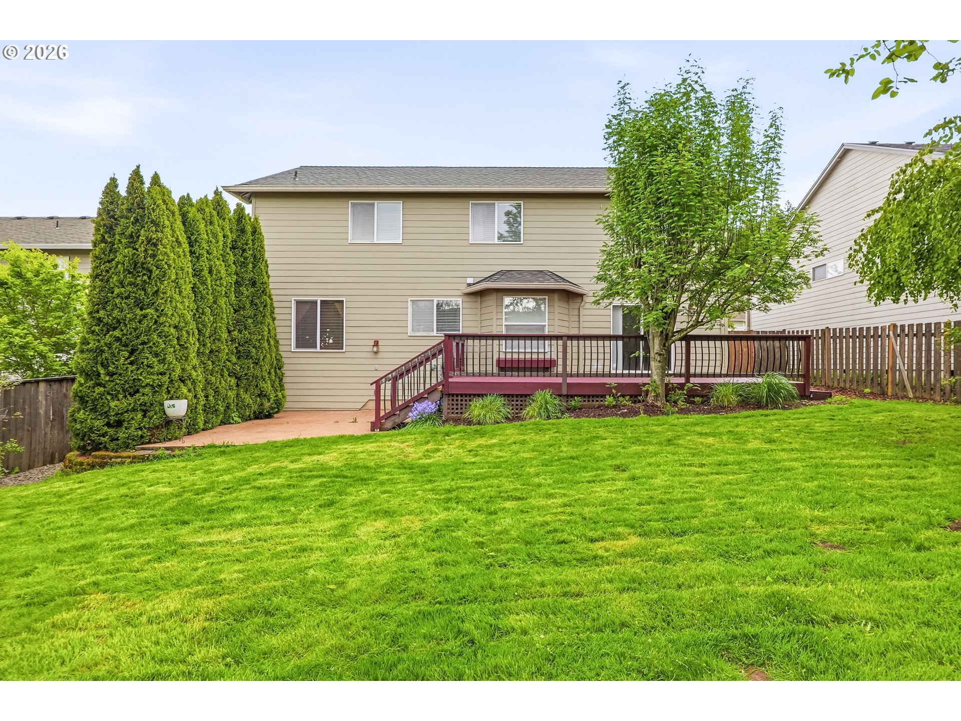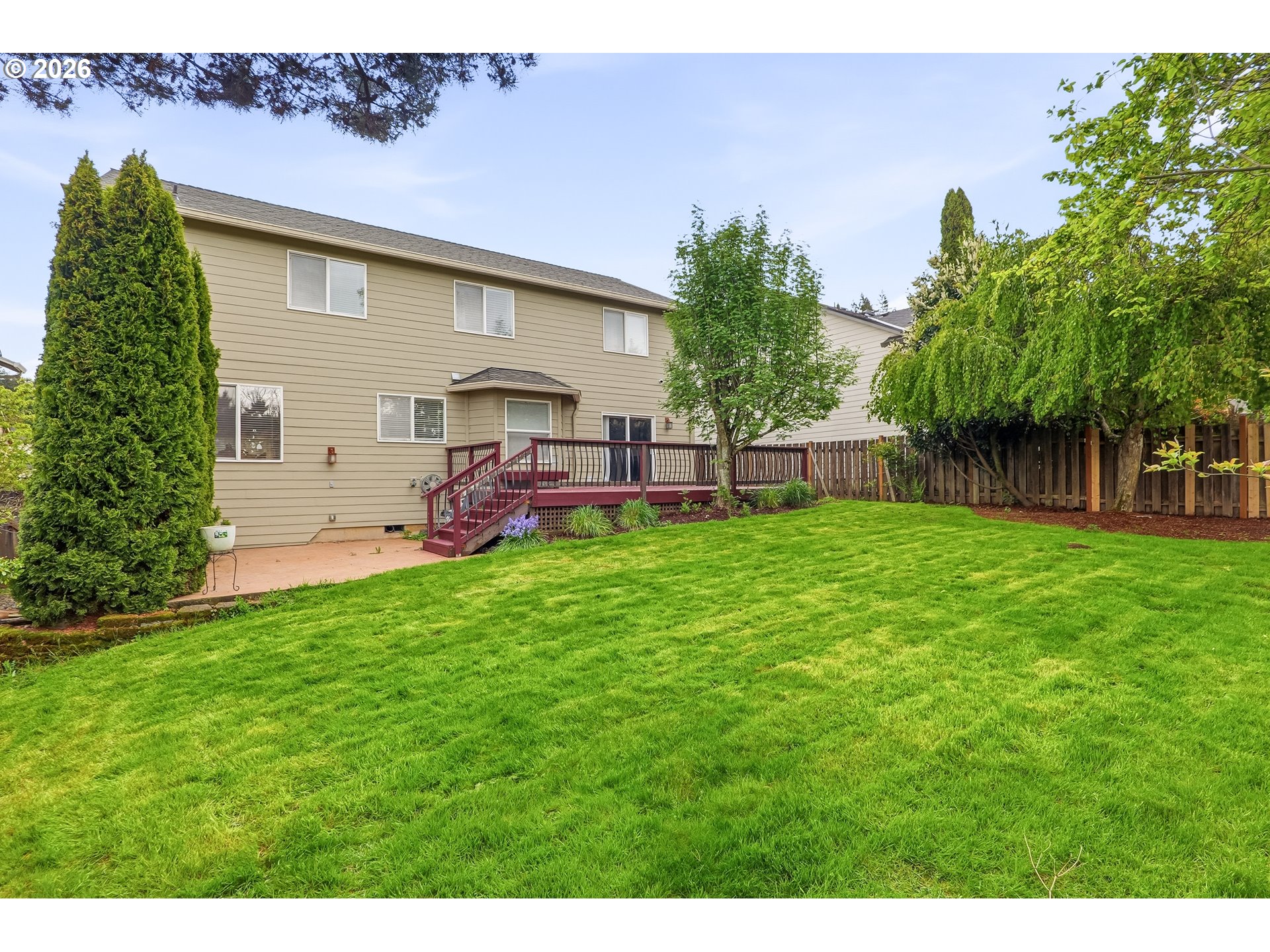 Open House Saturday, April 18 and Sunday, April 19 from 1:00 PM to 3:00 PM. Nestled in the desirable Holly Hills community of Camas, this beautiful 2-story residence offers generous space, timeless comfort, and an ideal location. With 2,622 sq ft, 5 bedrooms, and 3 full baths on a 7,405 sq ft lot, the home features a flexible layout with a main-level bedroom and full bath, ideal for guests, office use, or multi-generational living. The inviting kitchen features quartz countertops, a cook island with seating, and SS appliances, opening to comfortable gathering spaces anchored by a gas fireplace. Tile surfaces, central vacuum, forced-air gas heat, and central A/C enhance both style and function. The entire interior has just been refreshed with a fresh coat of paint, adding a bright and refreshed feel throughout the home, and in 2017 the home was enhanced with a new roof, new gutters, new sprinkler system, and hardwood floors throughout. Upstairs, the spacious primary suite offers a bay window, dual sinks, a jetted tub, and a walk-in shower for a relaxing retreat. Outside, enjoy a fenced backyard with deck, patio, porch, and yard space designed for entertaining and everyday enjoyment. Complete with an attached 2-car garage and convenient access to Hwy 14, 192nd Ave, shopping, dining, parks, and highly rated Camas schools, this home offers the perfect blend of livability and Northwest charm. Close to the elementary school and Gold’s Gym.