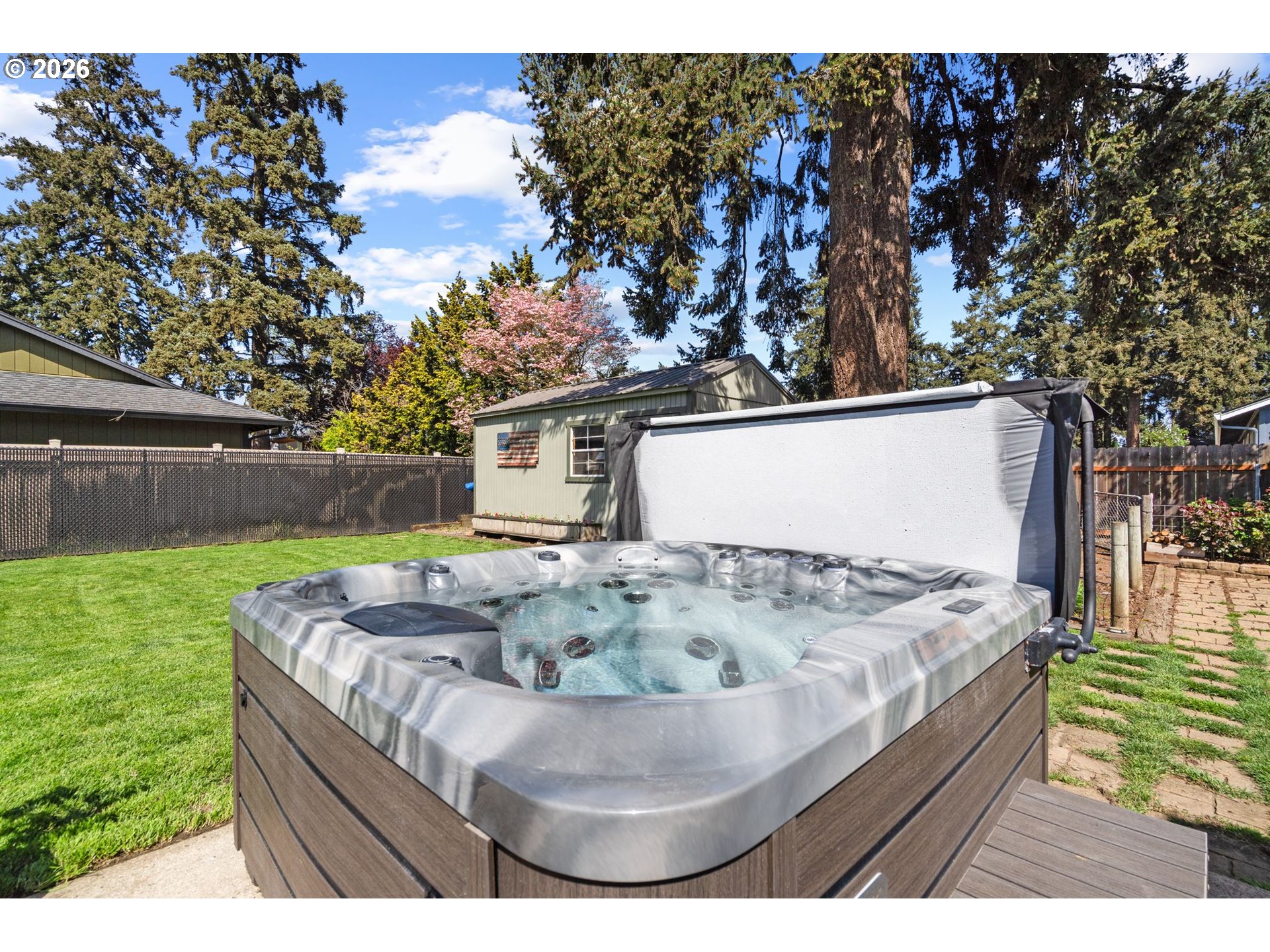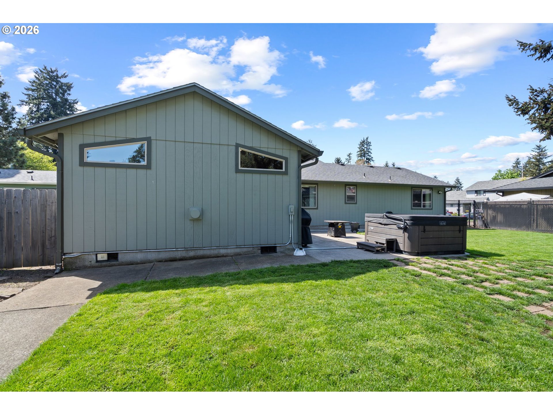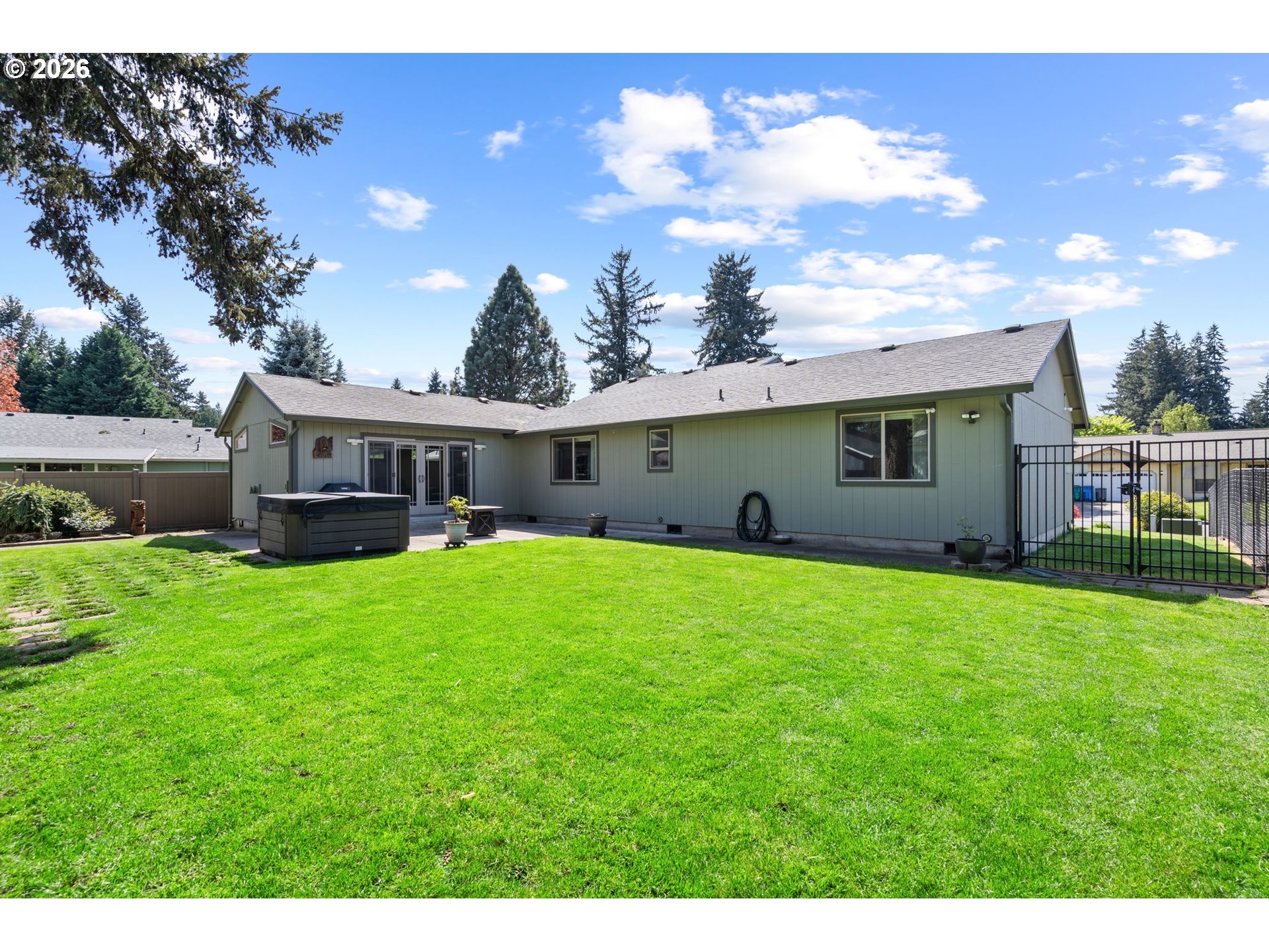 Updated 3-bedroom, 1,616 sq ft single-level home on a cul-de-sac! This home has a newer kitchen featuring stainless steel appliances, quartz countertops, and stylish finishes throughout, plus updated windows for added efficiency and natural light. The standout 17’ x 34’ great room offers vaulted ceilings, a cozy fireplace, and built-in wine cabinets—an ideal space for entertaining or relaxing. Bright, open layout with excellent flow and comfortable living spaces.Step outside to your private backyard retreat with a patio, hot tub, and plenty of room to garden, play, or unwind. Two outdoor storage sheds provide extra space for tools, hobbies, or storage. The beautifully landscaped yard adds to the home’s inviting curb appeal.You won't want to miss this one!