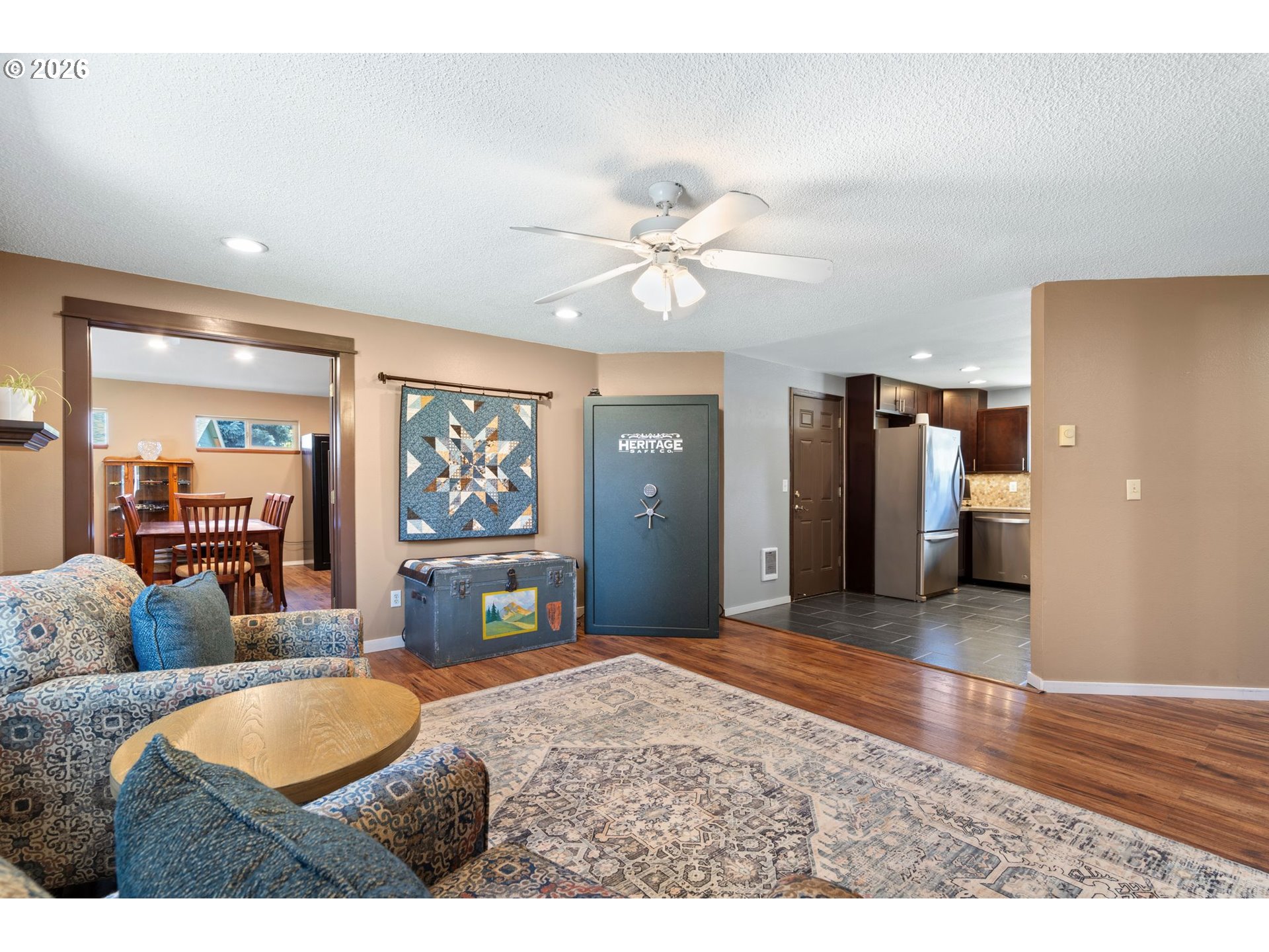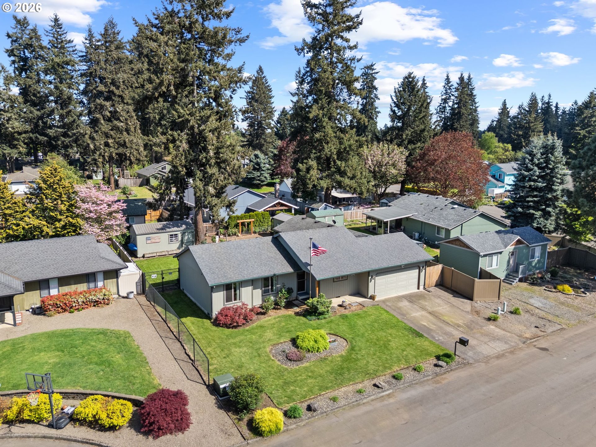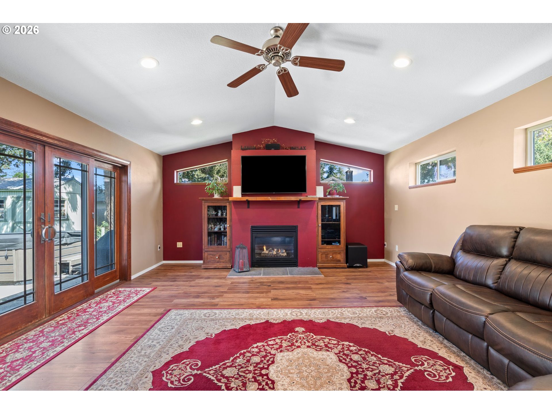Updated 3-bedroom, 1,616 sq ft single-level home on a cul-de-sac! This home has a newer kitchen featuring stainless steel appliances, quartz countertops, and stylish finishes throughout, plus updated windows for added efficiency and natural light. The standout 17’ x 34’ great room offers vaulted ceilings, a cozy fireplace, and built-in wine cabinets—an ideal space for entertaining or relaxing. Bright, open layout with excellent flow and comfortable living spaces.Step outside to your private backyard retreat with a patio, hot tub, and plenty of room to garden, play, or unwind. Two outdoor storage sheds provide extra space for tools, hobbies, or storage. The beautifully landscaped yard adds to the home’s inviting curb appeal.You won't want to miss this one!
