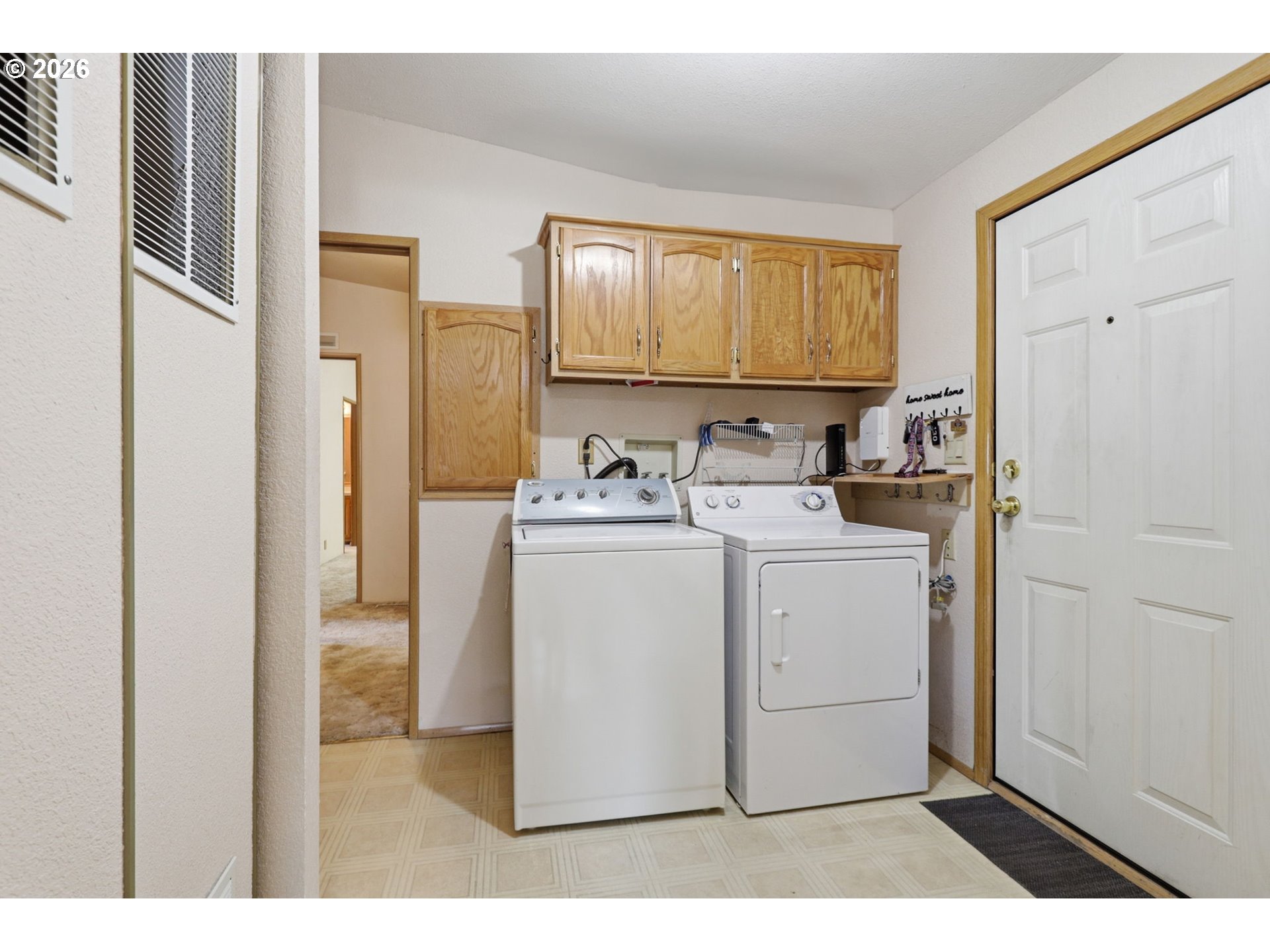 CeilingFan, Laundry, VinylFloor, WalltoWallCarpet, WasherDryer
