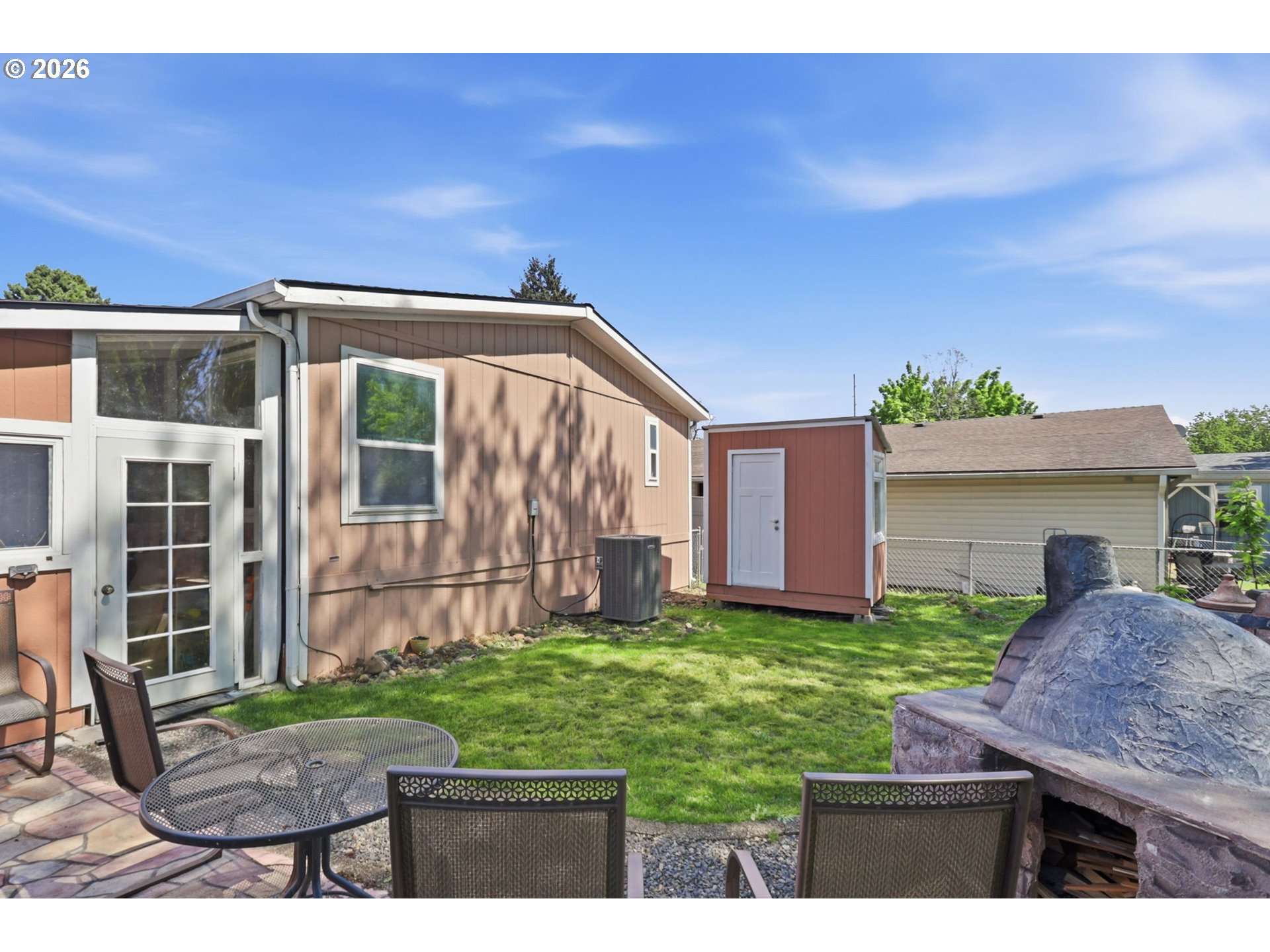 Set in the desirable North Shores community, this single-level home offers comfortable, low-maintenance living with a practical layout that makes everyday life easy. With 2 bedrooms and 2 full baths, the home provides a solid foundation for someone looking to personalize and make it their own.The interior features a functional flow between the living, dining, and kitchen areas, with ample cabinetry, a pantry, and all the essentials in place. The primary suite includes a private bath with walk-in shower, while the second bedroom offers flexibility for guests, a home office, or hobbies. Laundry is conveniently located on the main level, and features like vinyl flooring, ceiling fans, a heat pump, and a newer hot water heater add everyday comfort and efficiency. Outside is where this property truly shines. A covered entry and spacious deck create a welcoming space to relax or entertain, while the backyard offers a unique setup you won’t often find—complete with a custom-built pizza oven and tandoor oven, perfect for hosting and creating an unforgettable outdoor experience. A tool shed and separate workshop provide excellent space for storage, projects, or hobbies, and the mature landscaping adds to the overall charm. Located in a peaceful, well-kept park setting with easy access to local amenities, shopping, and the Columbia River Gorge, this home presents a great opportunity to add your own style while enjoying the Washougal lifestyle.