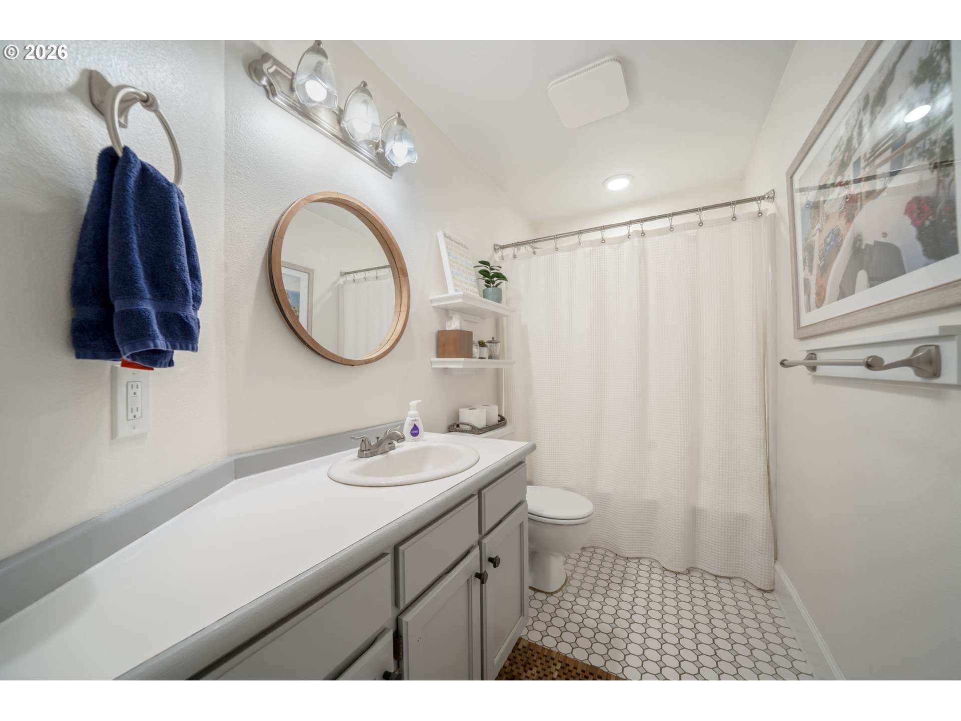 Tucked away at the end of a quiet dead-end street in Ridgefield, this secluded corner-lot retreat sits on a rare, level .31-acre lot and offers the perfect blend of privacy, comfort, and lifestyle. The true showstopper? Direct backyard access to over 6 miles of scenic walking trails. Step outside your gate and instantly connect to miles of winding paths, open green space, and breathtaking views — a daily backdrop for morning walks, sunset strolls, and peaceful outdoor living.From the moment you arrive, manicured landscaping and undeniable curb appeal set the tone. This beautifully maintained single-level home features 3 bedrooms, 2 full baths, and a spacious 2-car garage, thoughtfully designed for effortless living. Inside, lvp floors flow through open-concept living areas, with vaulted ceilings in the great room, and pellet stove create a bright, airy ambiance. The kitchen is both stylish and functional, showcasing striking two-tone cabinetry, white quartz countertops, an inviting eating bar, and a charming breakfast nook. Adding incredible versatility, the detached shop has been thoughtfully converted into a fully finished home office — ideal for remote work, creative space, or a private retreat away from the main home. The side yard offers ample space with potential for boat parking, making this property as practical as it is beautiful. The private primary suite includes an en-suite bath with a walk-in shower, walk in closet creating a clean and comfortable escape. Outside, the oversized patio overlooks a large, level, fully fenced backyard — perfect for gatherings, play, or simply enjoying the quiet surroundings. Rarely does a home combine usable .31-acre space, flexible work-from -home options, parking versatility, and unmatched trail access in one exceptional setting.