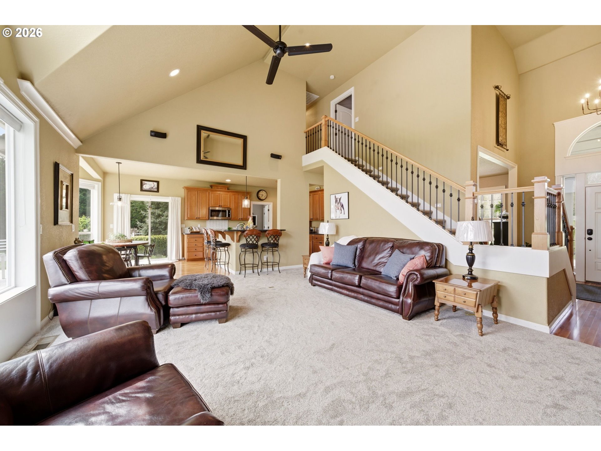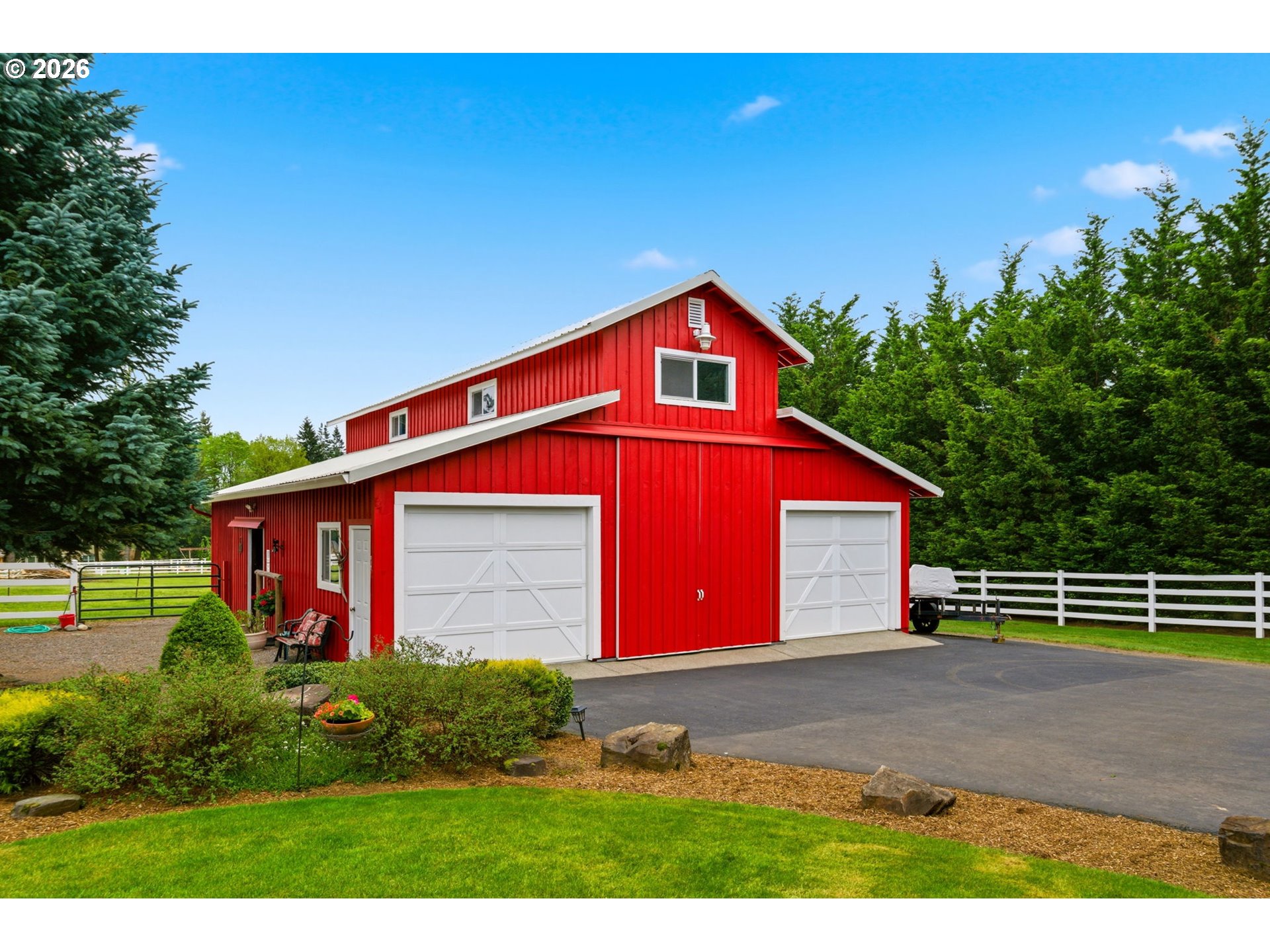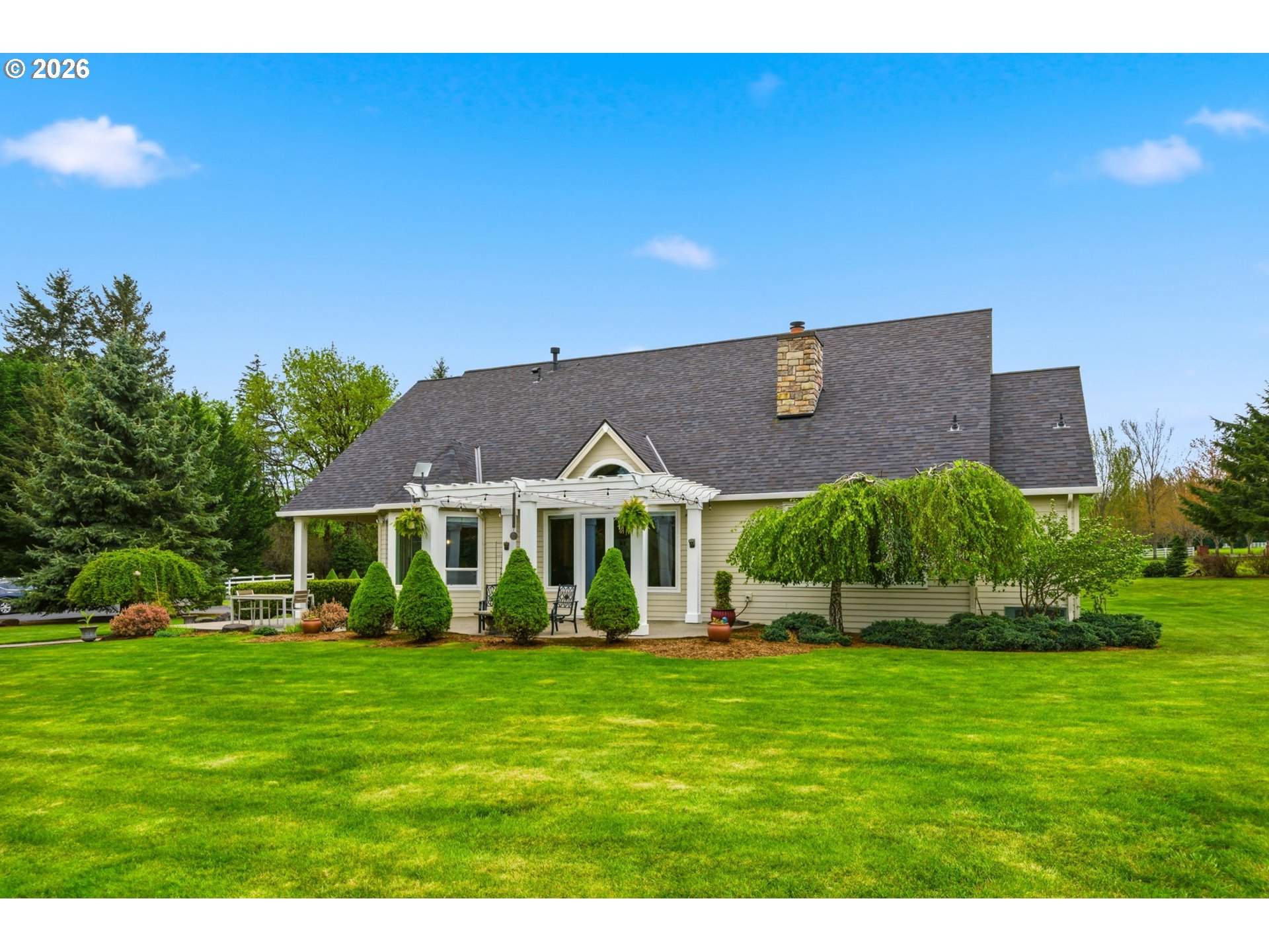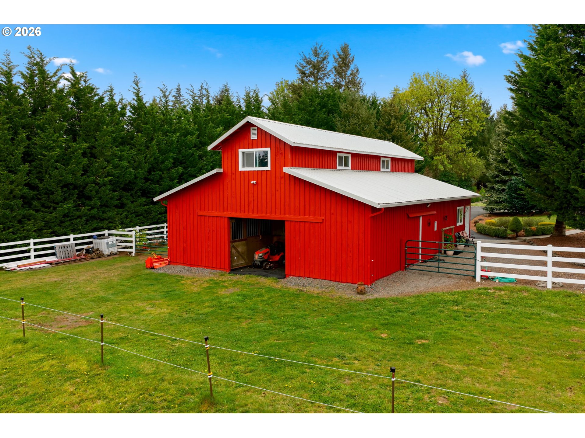 Welcome to this stunning equestrian estate—an exceptional retreat nestled within a beautifully maintained community. A gated entrance offers privacy and sets the tone for a perfect blend of luxury, functionality, and pastoral charm. Situated on five flat, fully usable acres, this horse-ready property features elegant four-rail fencing, two expansive pastures, and a well-designed paddock. The grounds are lush and thoughtfully landscaped with a five-zone sprinkler system and dedicated garden area with raised beds. The beautifully updated 3-bedroom, 2.5-bath home offers warmth and style, with a new roof, carpet, updated countertops and backsplash, modern lighting, and newer appliances—truly move-in ready. The main-level primary suite includes a jetted tub, while the vaulted great room with a wood-burning fireplace opens to a spacious patio with pergola, ideal for entertaining. A formal dining room, dedicated office with hardwood floors, inviting kitchen with eat bar and breakfast nook, mudroom, and attached two-car garage complete the main level. Upstairs offers two additional bedrooms and a versatile bonus room. The impressive three-bay barn/shop features an oversized 11.5-foot door, 220-volt power, and insulated ceilings and floors. The rear includes two plumbed horse stalls, a wash area, ample storage, and a large hay loft—perfect for equestrian living. This property offers the ideal combination of comfort, space, and equestrian excellence.