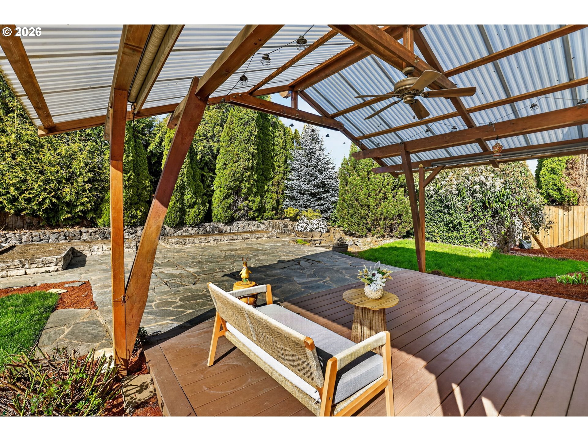 CoveredDeck, CoveredPatio, Fenced, Garden, RaisedBeds, Sprinkler, WaterFeature, Yard