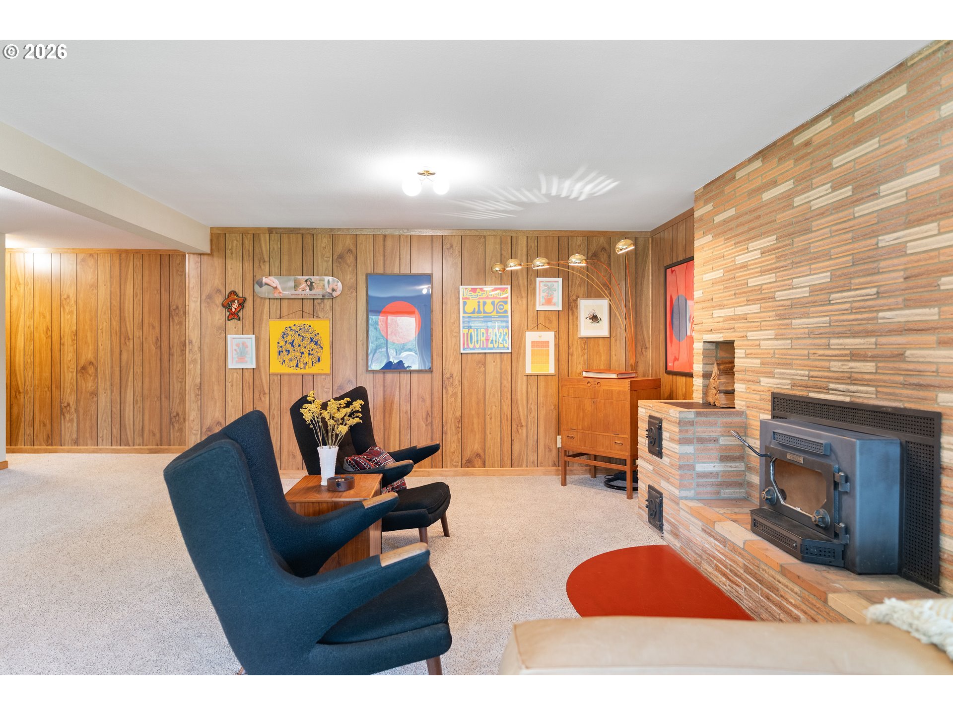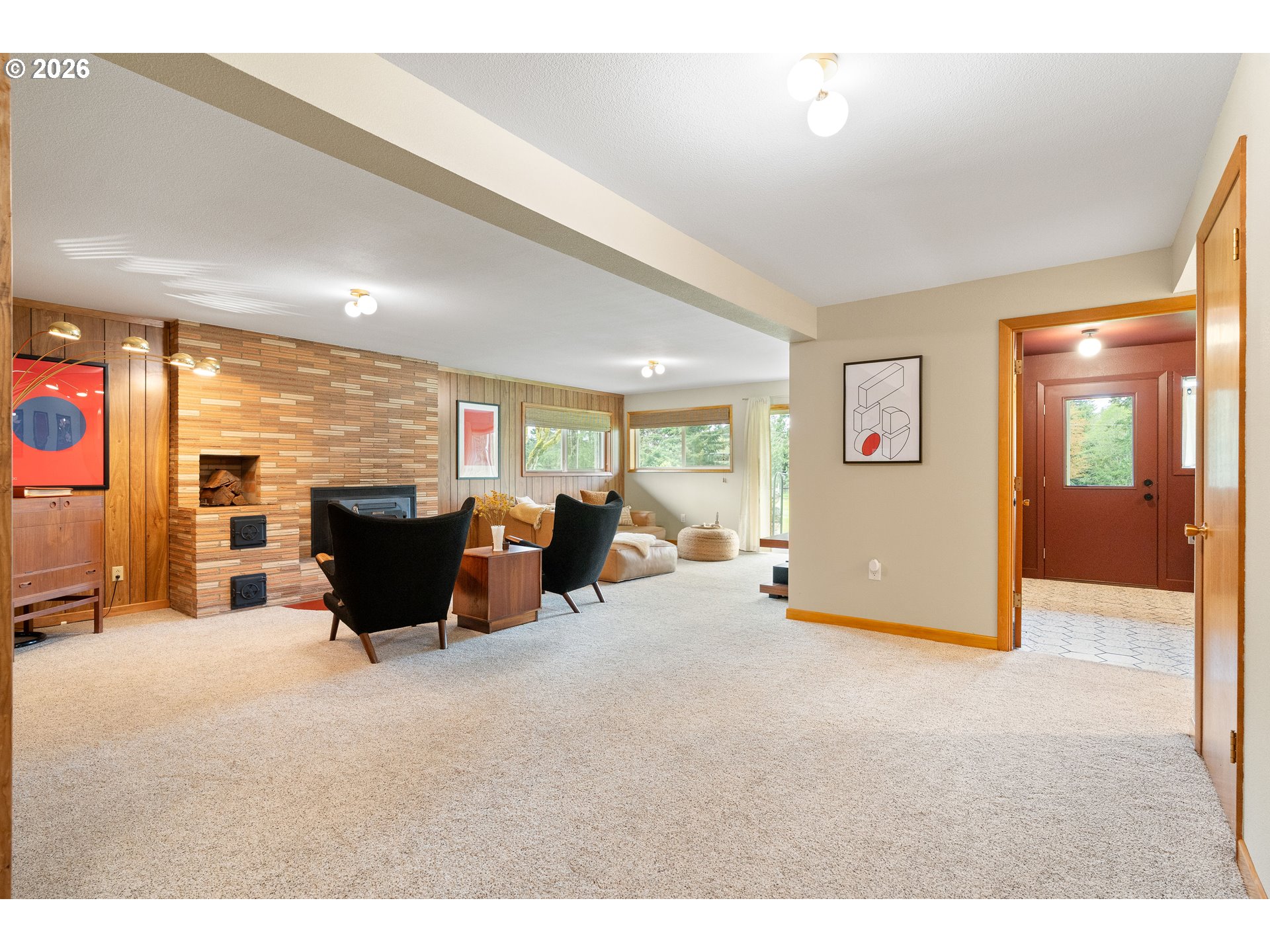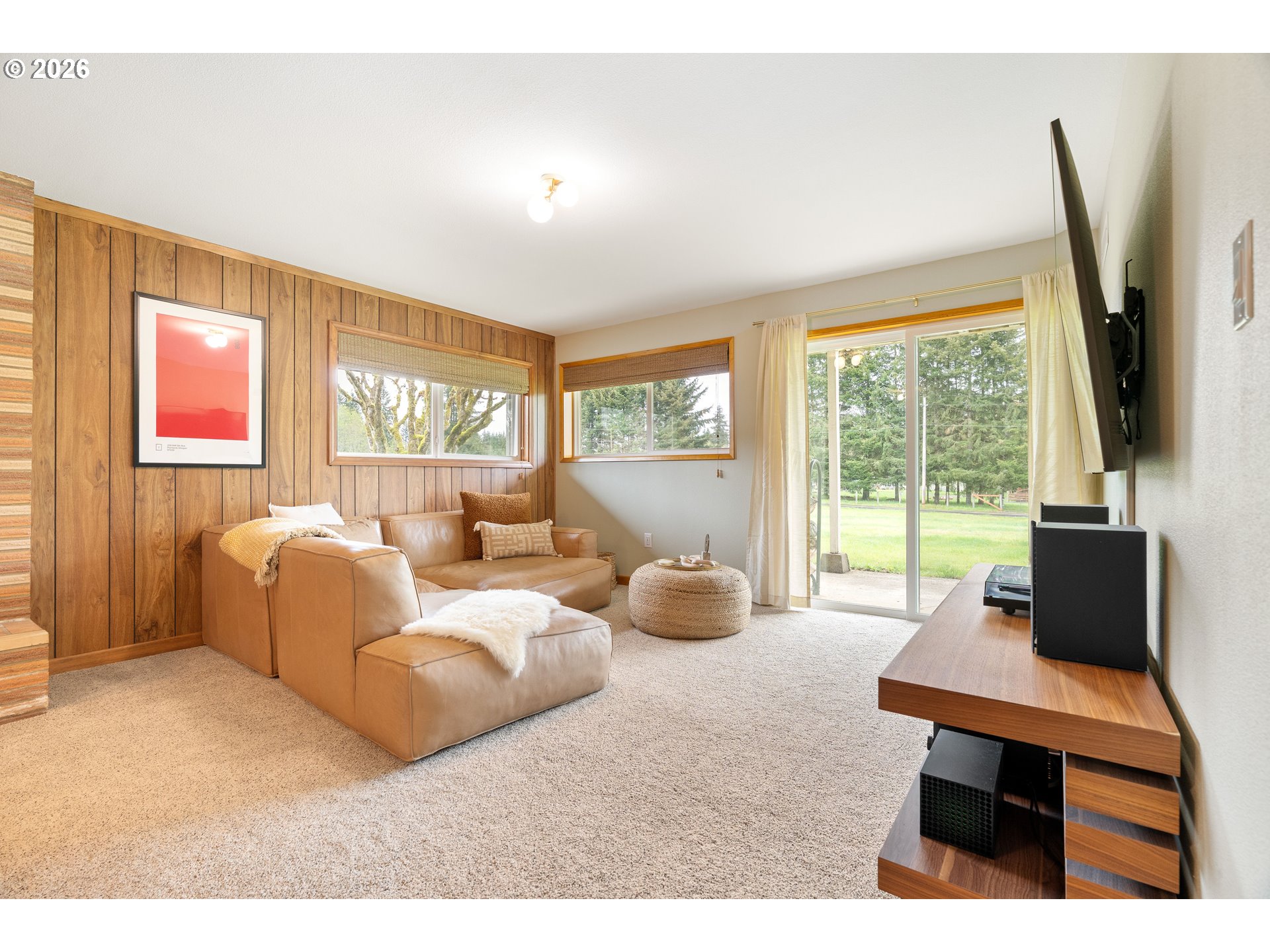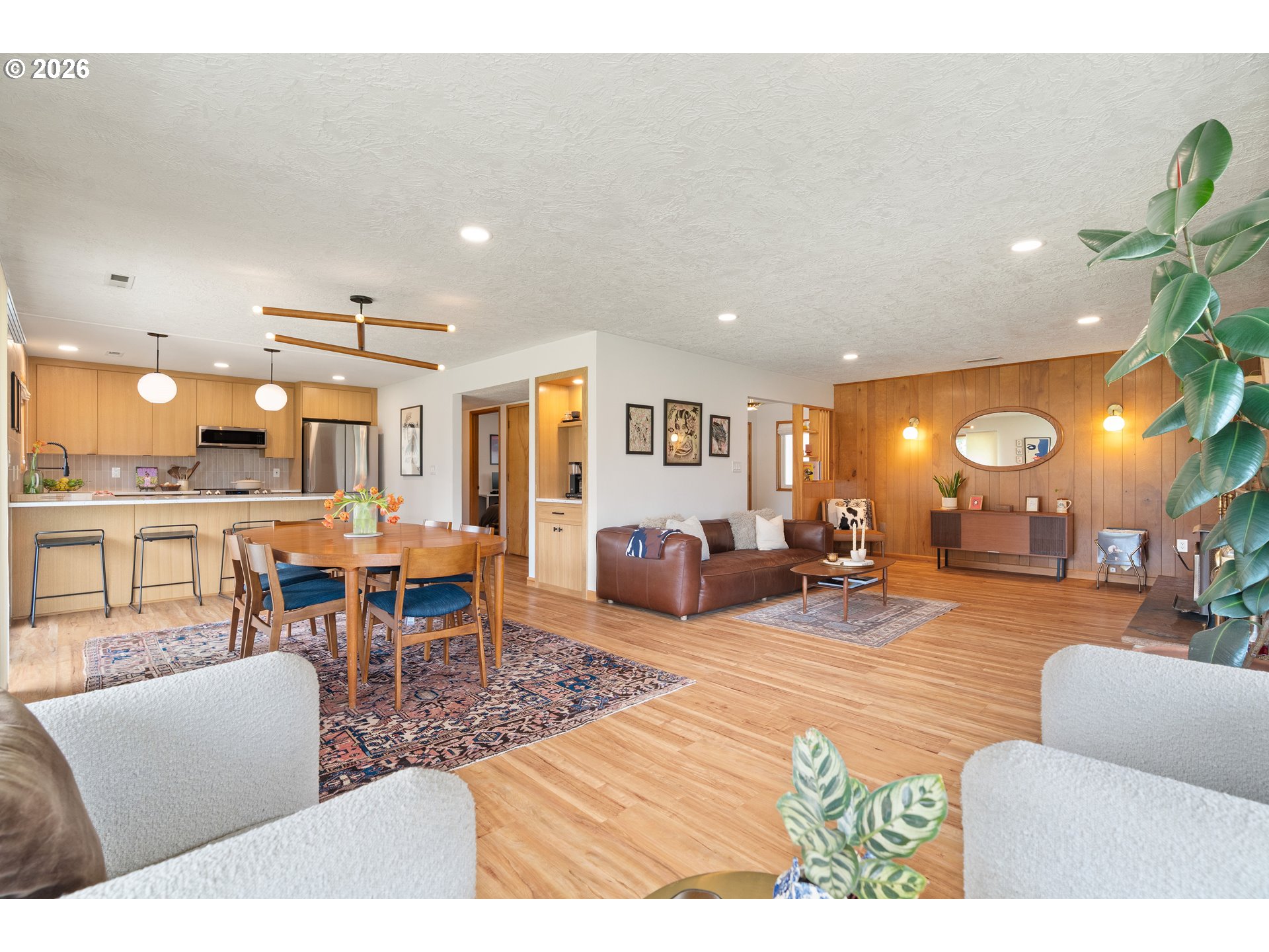Built in 1962 and nestled on 2.5+ acres in La Center, this authentic mid-century modern home has been lovingly updated from top to bottom while preserving every bit of its original charm. A remodeled kitchen with custom cabinetry, terrazzo-style counters & a coffee bar/nook. A dramatic brick fireplace for cozy evenings. A string-lit concrete patio for backyard gatherings. A primary suite with serene wooded views. Fully remodeled bathrooms on the main level, newer furnace & heat pump, updated electrical panel & so much more. Add chickens, a large shop, deck & plenty of space for your boat/RV — and you have everything you need to live slowly, intentionally & beautifully. This is the life you've been dreaming of. Newer furnace & heat pump (2024), updated electrical panels (2026), new water heater & water filter (2025), replaced well tank (2024) & fresh exterior paint — this home is truly move-in ready.