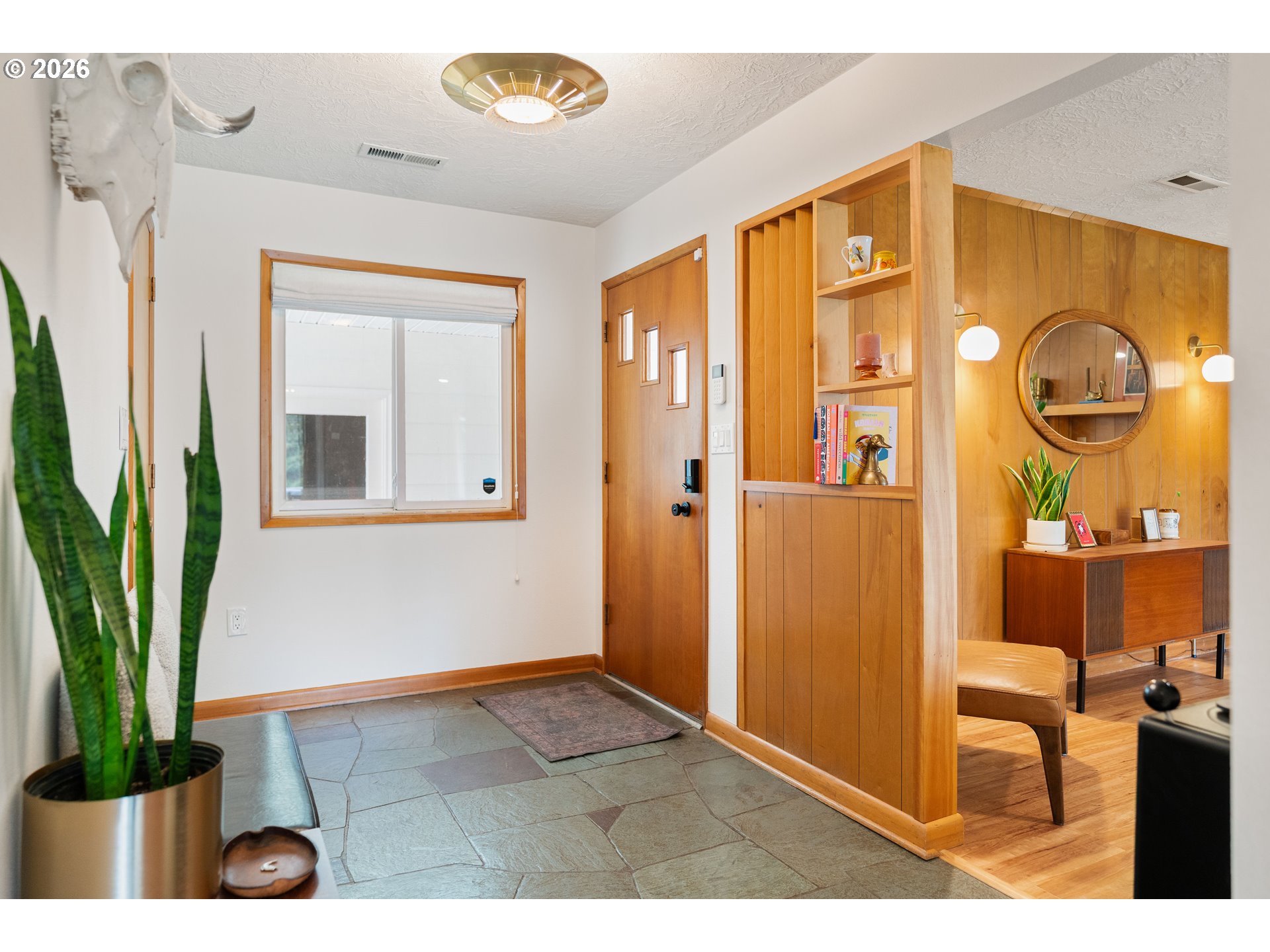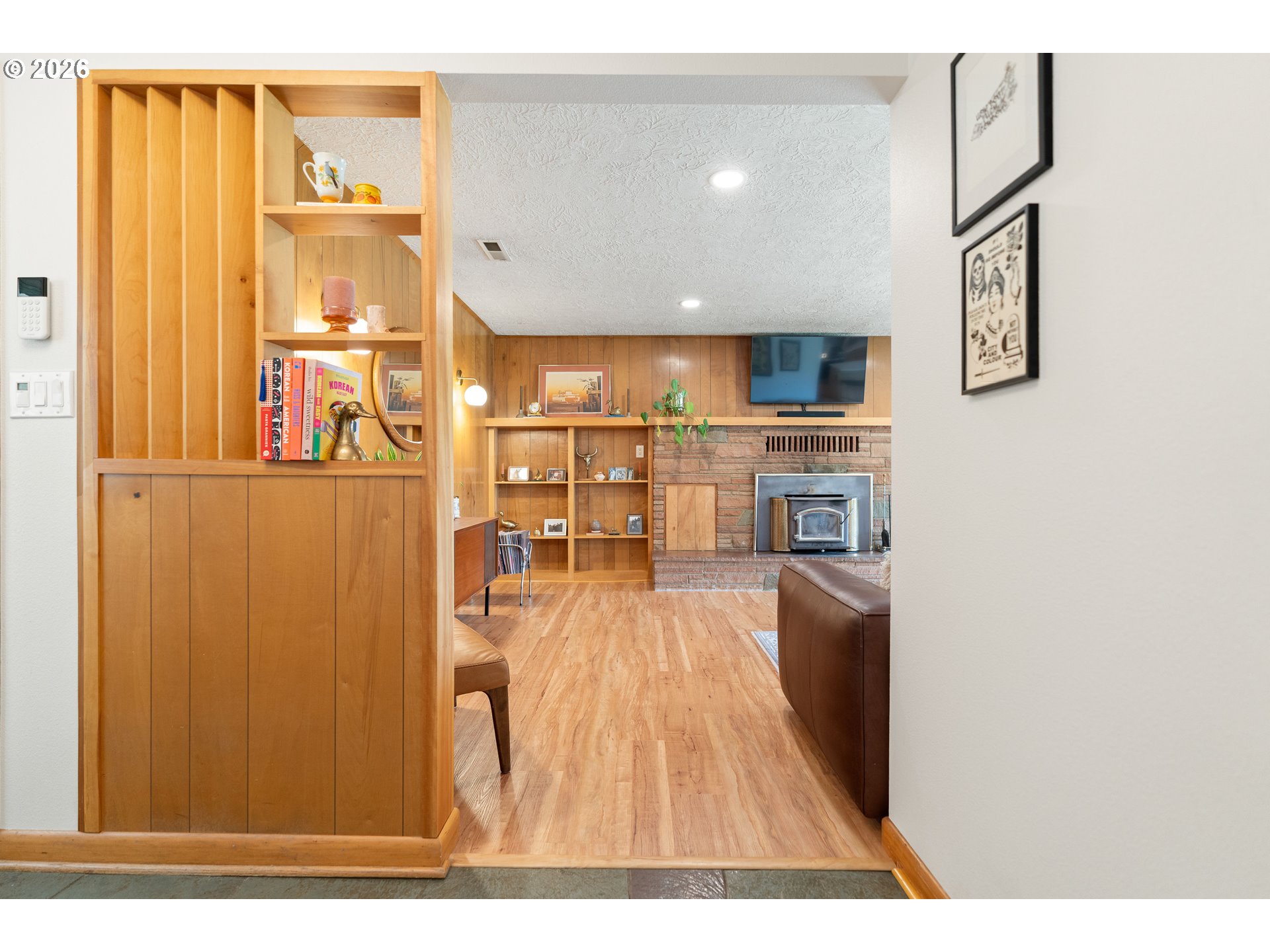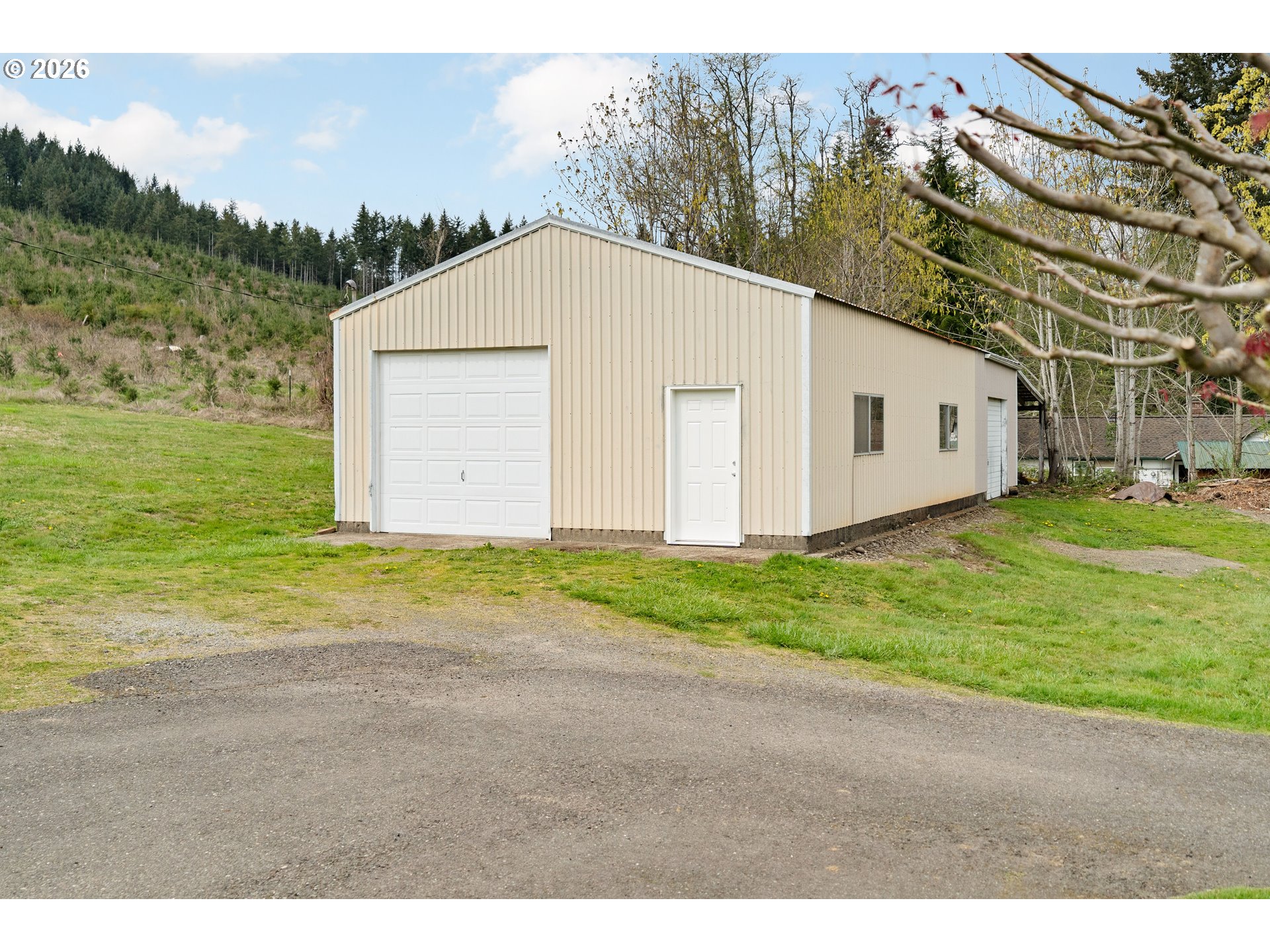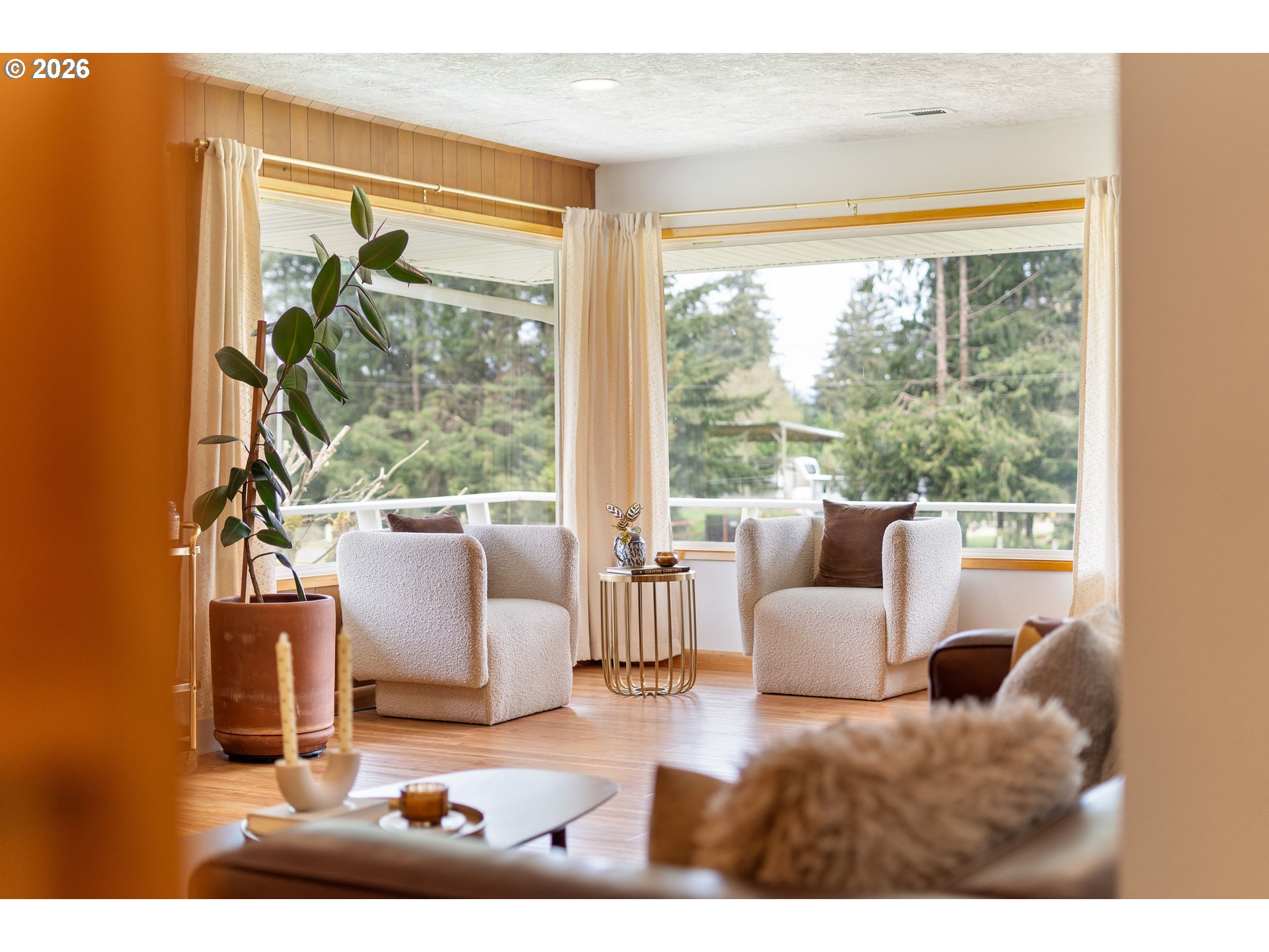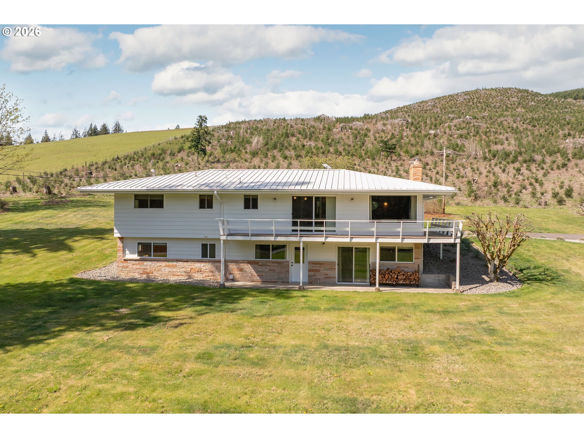 Built in 1962 and nestled on 2.5+ acres in La Center, this authentic mid-century modern home has been lovingly updated from top to bottom while preserving every bit of its original charm. A remodeled kitchen with custom cabinetry, terrazzo-style counters & a coffee bar/nook. A dramatic brick fireplace for cozy evenings. A string-lit concrete patio for backyard gatherings. A primary suite with serene wooded views. Fully remodeled bathrooms on the main level, newer furnace & heat pump, updated electrical panel & so much more. Add chickens, a large shop, deck & plenty of space for your boat/RV — and you have everything you need to live slowly, intentionally & beautifully. This is the life you've been dreaming of. Newer furnace & heat pump (2024), updated electrical panels (2026), new water heater & water filter (2025), replaced well tank (2024) & fresh exterior paint — this home is truly move-in ready.