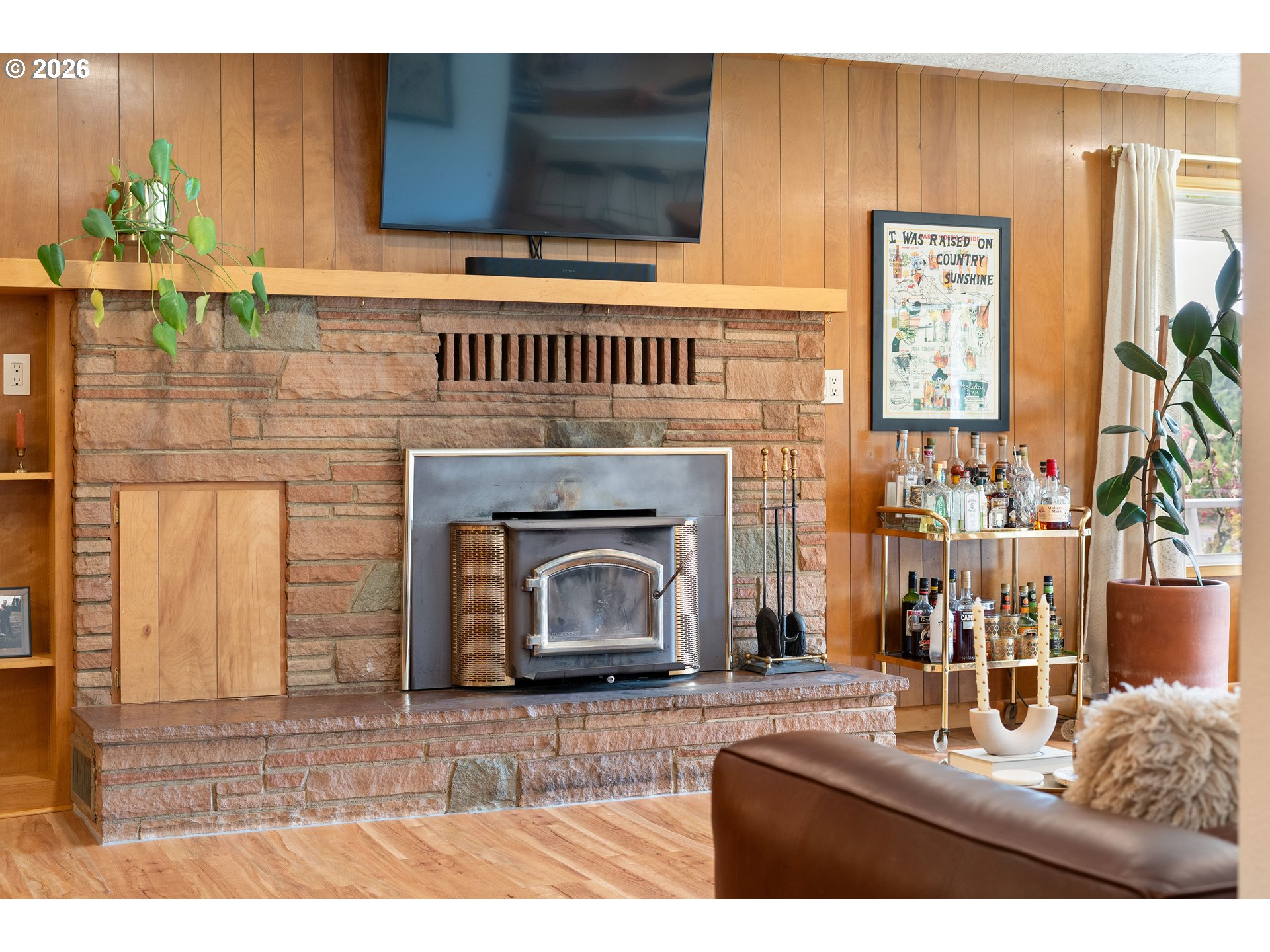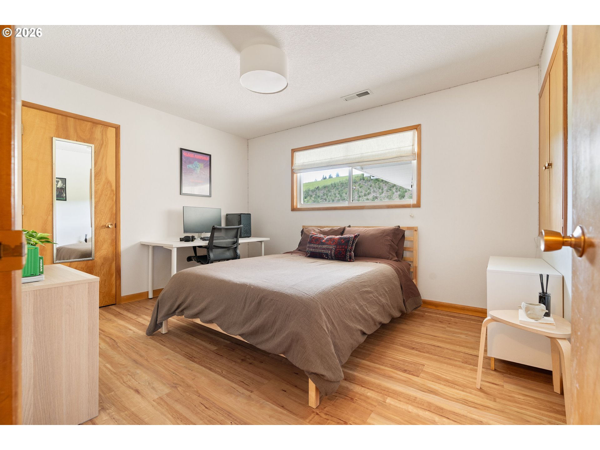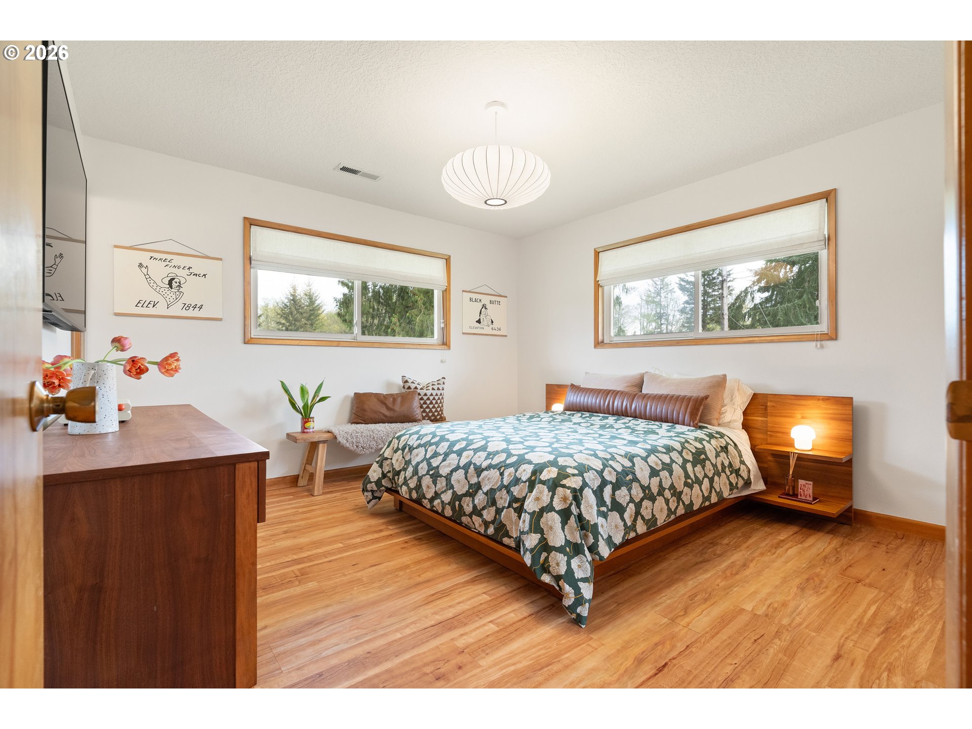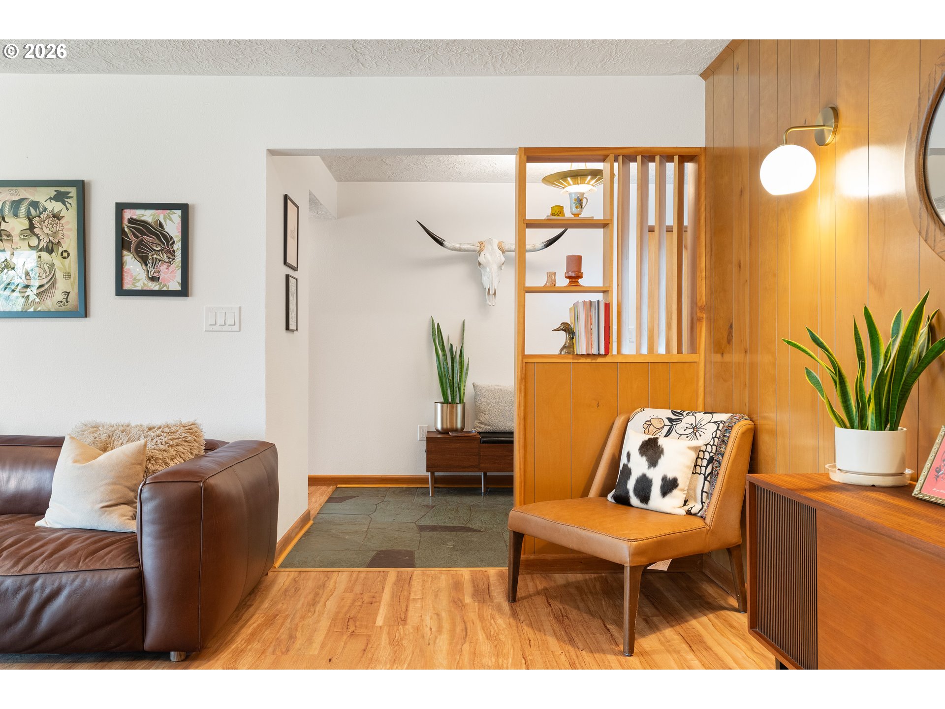 Built in 1962 and nestled on 2.5+ acres in La Center, this authentic mid-century modern home has been lovingly updated from top to bottom while preserving every bit of its original charm. A remodeled kitchen with custom cabinetry, terrazzo-style counters & a coffee bar/nook. A dramatic brick fireplace for cozy evenings. A string-lit concrete patio for backyard gatherings. A primary suite with serene wooded views. Fully remodeled bathrooms on the main level, newer furnace & heat pump, updated electrical panel & so much more. Add chickens, a large shop, deck & plenty of space for your boat/RV — and you have everything you need to live slowly, intentionally & beautifully. This is the life you've been dreaming of. Newer furnace & heat pump (2024), updated electrical panels (2026), new water heater & water filter (2025), replaced well tank (2024) & fresh exterior paint — this home is truly move-in ready.