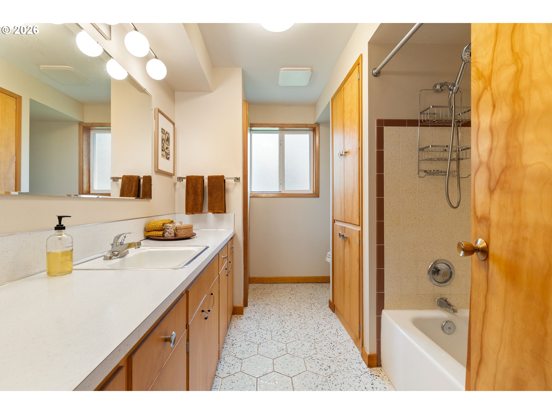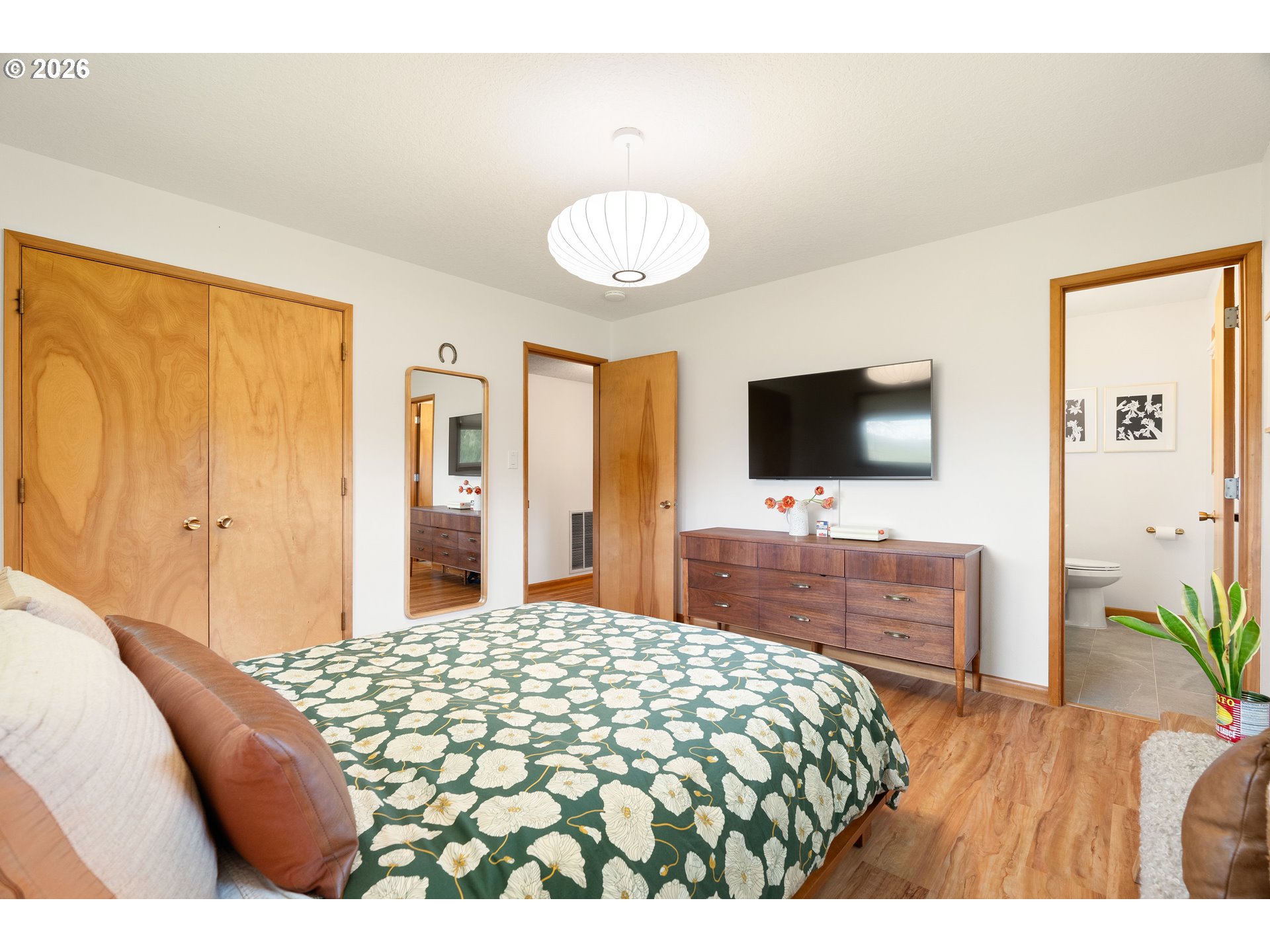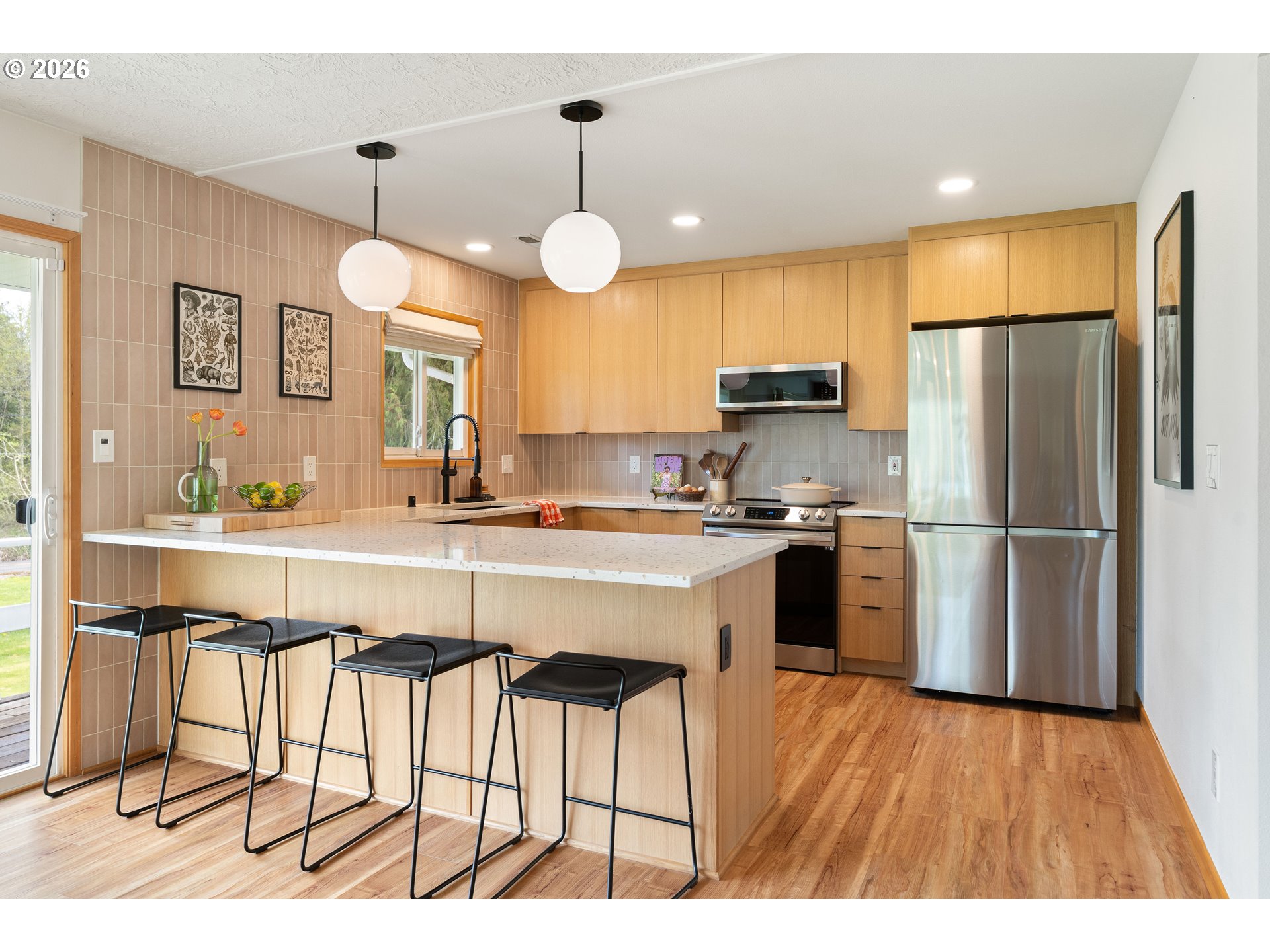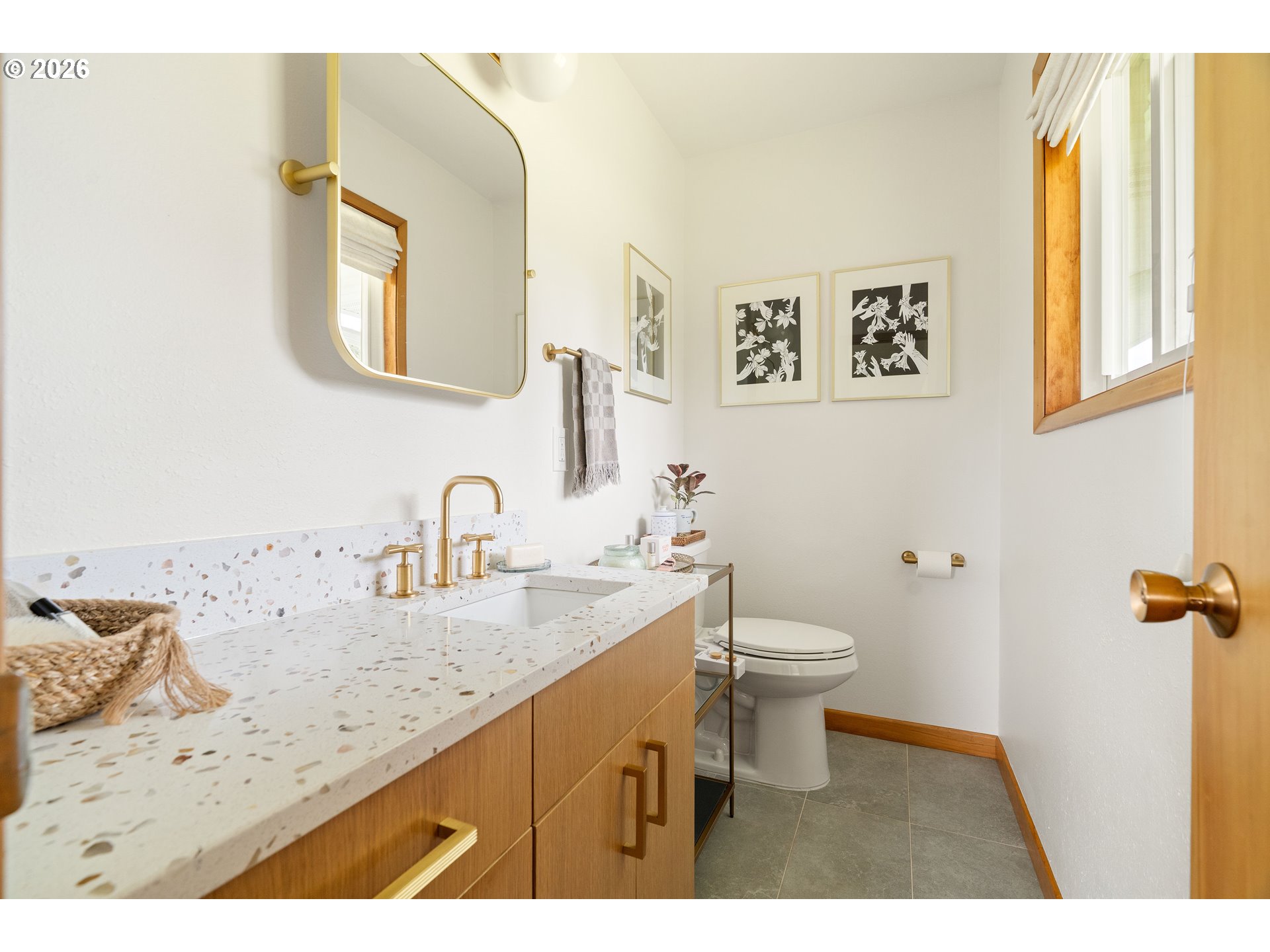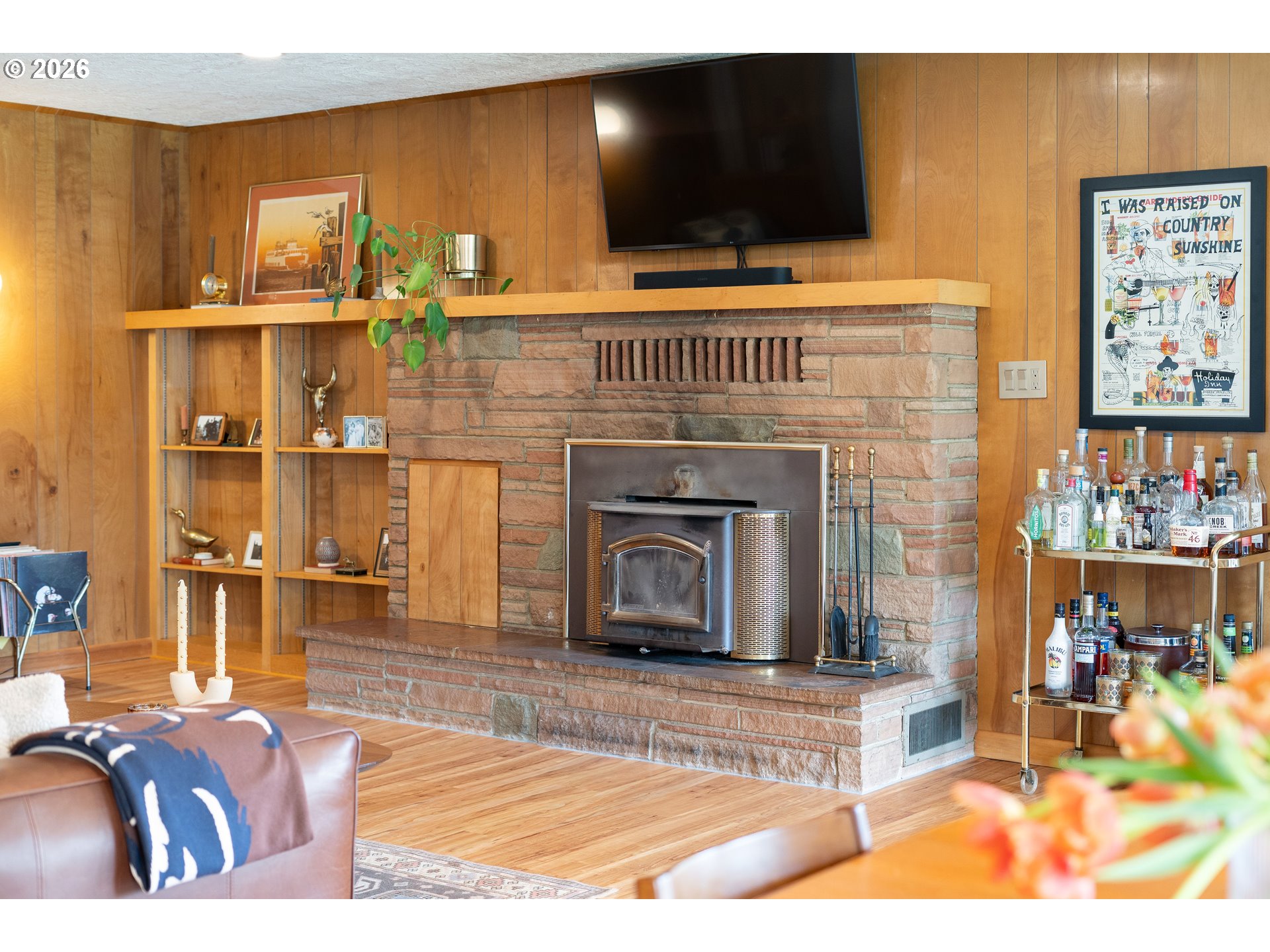 Built in 1962 and nestled on 2.5+ acres in La Center, this authentic mid-century modern home has been lovingly updated from top to bottom while preserving every bit of its original charm. A remodeled kitchen with custom cabinetry, terrazzo-style counters & a coffee bar/nook. A dramatic brick fireplace for cozy evenings. A string-lit concrete patio for backyard gatherings. A primary suite with serene wooded views. Fully remodeled bathrooms on the main level, newer furnace & heat pump, updated electrical panel & so much more. Add chickens, a large shop, deck & plenty of space for your boat/RV — and you have everything you need to live slowly, intentionally & beautifully. This is the life you've been dreaming of. Newer furnace & heat pump (2024), updated electrical panels (2026), new water heater & water filter (2025), replaced well tank (2024) & fresh exterior paint — this home is truly move-in ready.