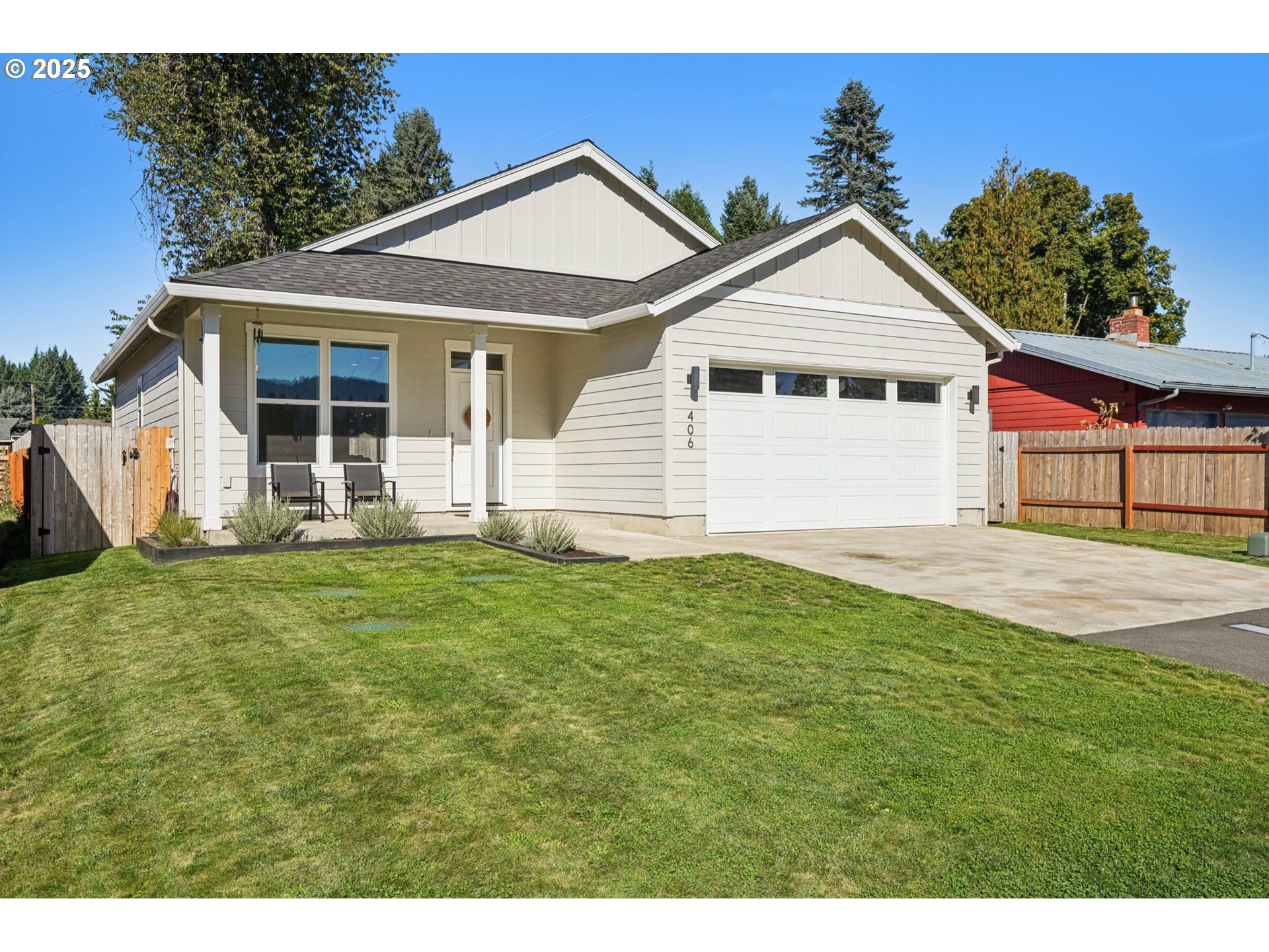 Welcome to 406 W Jones St in the heart of Yacolt! This charming 1,160 sq. ft. single-level home offers 3 bedrooms and 2 bathrooms, designed for comfort and convenience. Enjoy year-round efficiency with a forced-air heat pump. Great floor plan with high ceilings. Primary on one side and other 2 bedrooms on the other. Kitchen has pantry, island with eat at bar, and stainless steel appliances. Relax on the inviting covered front patio. The spacious fenced backyard provides plenty of room for pets, play, or gardening. Located directly across the street from the town park, you’ll love having green space and community amenities right at your doorstep. A great opportunity for those seeking small-town living with modern comfort and easy access to local schools, shops, and trails.