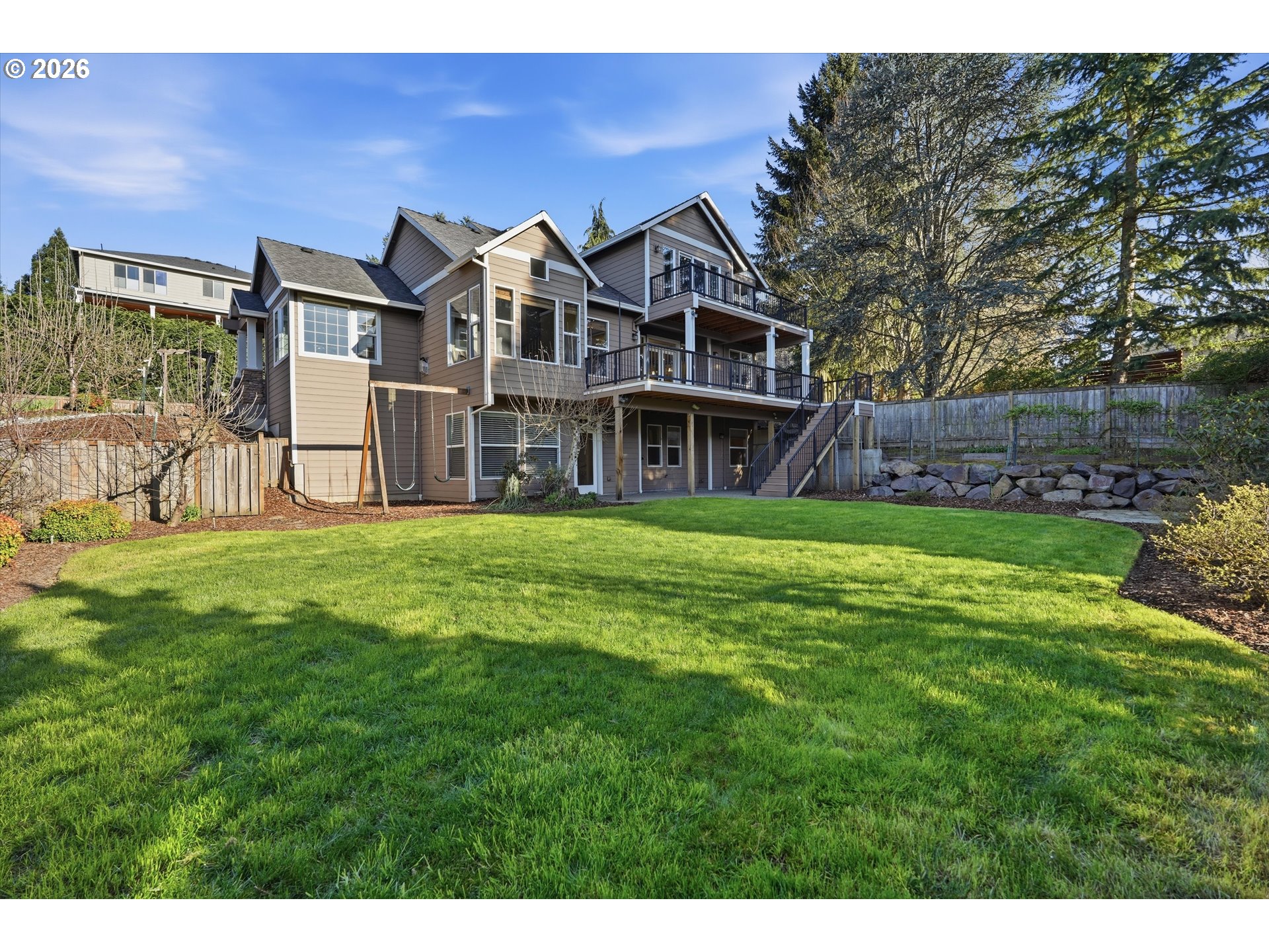 Beautifully crafted 4-bedroom, 3.5-bath home w/a daylight basement in the sought-after Felida neighborhood! Constructed by Mt. Lake Homes, this well-planned layout includes a private office & a flexible bonus room, offering practical space for work, play, or relaxation. Inside, hand scraped engineered hardwood floors lead into a well-appointed kitchen featuring a large island, hazelnut & maple cabinetry, granite countertops w/tile backsplash, double ovens, & soft-close drawers. The living room designed w/a gas fireplace, custom built-ins, & a charming corner bench w/hidden storage, while the dedicated office w/closet & additional bonus room provide excellent flexibility for work, play, or guests. The home includes a functional mudroom w/dual entry points, built-in bench seating, along with a spacious laundry room complete w/ utility sink. Upstairs, the primary suite offers a relaxing retreat w/plush carpet, & direct access to a Trex deck patio, plus dual sinks, a walk-in closet, and a custom tile shower w/dual shower heads. Additional bedrooms all feature walk-in closets, including one w/a finished, heated bonus storage space. The daylight basement expands the living area w/an oversized bedroom, full bathroom, surround sound wiring, and a dedicated storage room ideal for a wine cellar. The 3-car garage is a standout feature, offering an extra-deep 27-foot third bay along with work benches, dual 200-amp service, freezer plugs, & plumbing for a utility sink. Exterior outlets are also in place for easy holiday lighting installation. This spacious property offers RV parking & an ideal layout for both everyday living & entertaining. Step outside to a beautifully maintained oversized yard w/garden beds & a variety of fruiting plants. Enjoy outdoor living w/built-in speakers, a fire pit seating area, & a custom swing set. Located near Ashley Heights Park & just a short walk to Salmon Creek Trail, this home offers the perfect balance of space, quality, and access to nature!