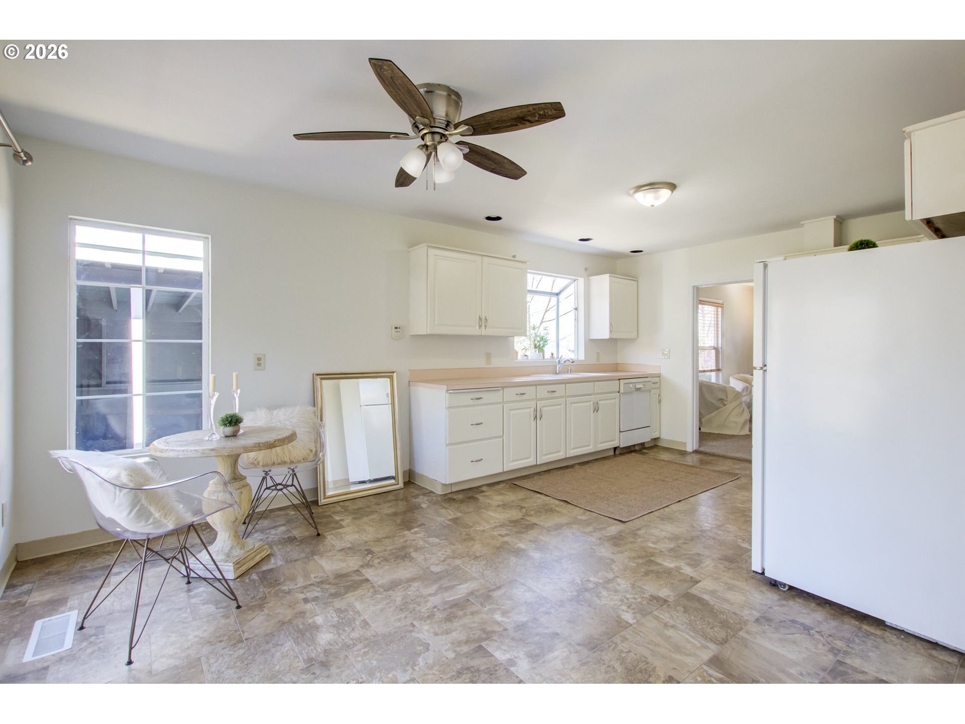 OPEN HOUSE SUNDAY 3/29/26 12PM-2PM Inviting 1926 bungalow, perfectly positioned to capture beautiful views of Mt. Hood and the Columbia River. All new exterior and interior paint. Inside, you'll find a spacious kitchen and dining area, along with a cozy living space warmed by an electric faux-wood stove. Stove, washer and dryer only one year old. Real hardwood floors under living room carpet. Gas forced air furnace just serviced with all new ducting. The home also features a fenced yard, a back deck for relaxing outdoors, and a workshop plus carport for added convenience. Recent updates include a new sewer line and roofs are only 6–8 years old. Located just blocks from Crown Park and a community garden.
