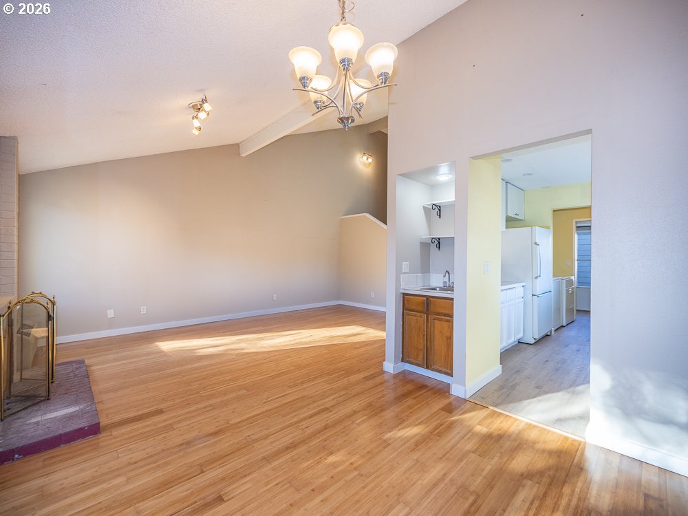 Spacious and well-maintained 2-bedroom, 2-bathroom end-unit townhouse in a highly convenient location! The main level features vaulted ceilings that create an open, airy feel, along with a bedroom and full bathroom—perfect for guests or flexible living. Upstairs, enjoy an extra-large primary retreat with a walk-in closet and private bath. The family room offers a cozy wood-burning fireplace, ideal for relaxing on cold winter days, while the dining area includes a charming wet bar for entertaining. Step outside to your private patio for outdoor enjoyment. This home includes a one-car garage plus an additional assigned parking space, with the option to rent extra parking for just $25/month. The community also features a gated RV parking area available for a small fee. HOA dues cover exterior maintenance, water, sewer, pool access, meeting/party room, and common area landscaping. A fantastic opportunity you won’t want to miss—schedule your showing today!