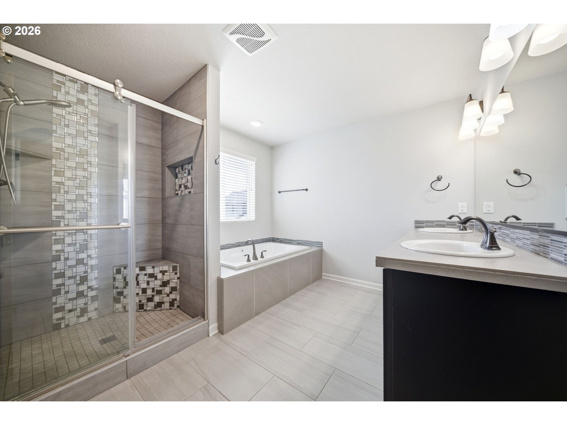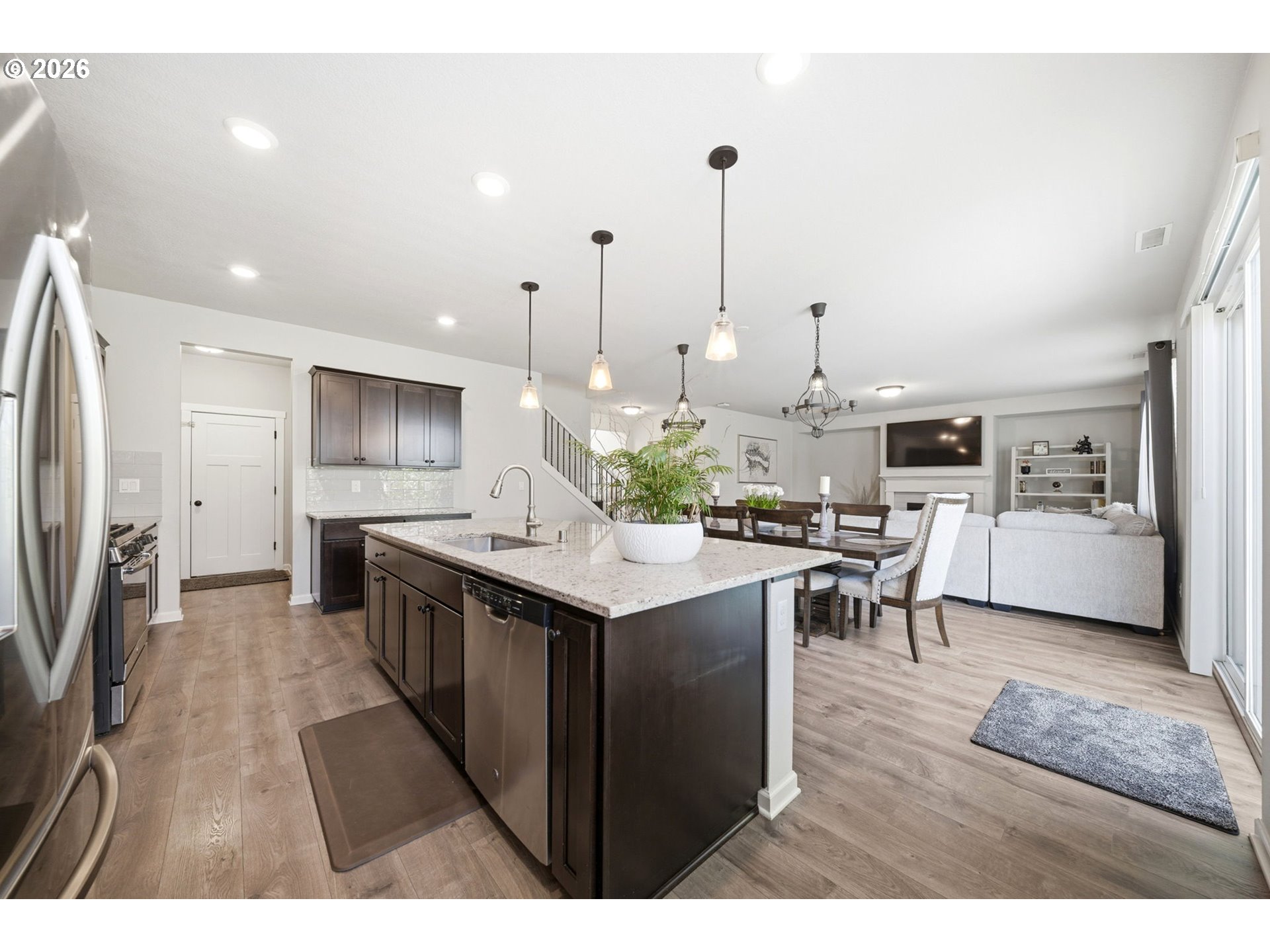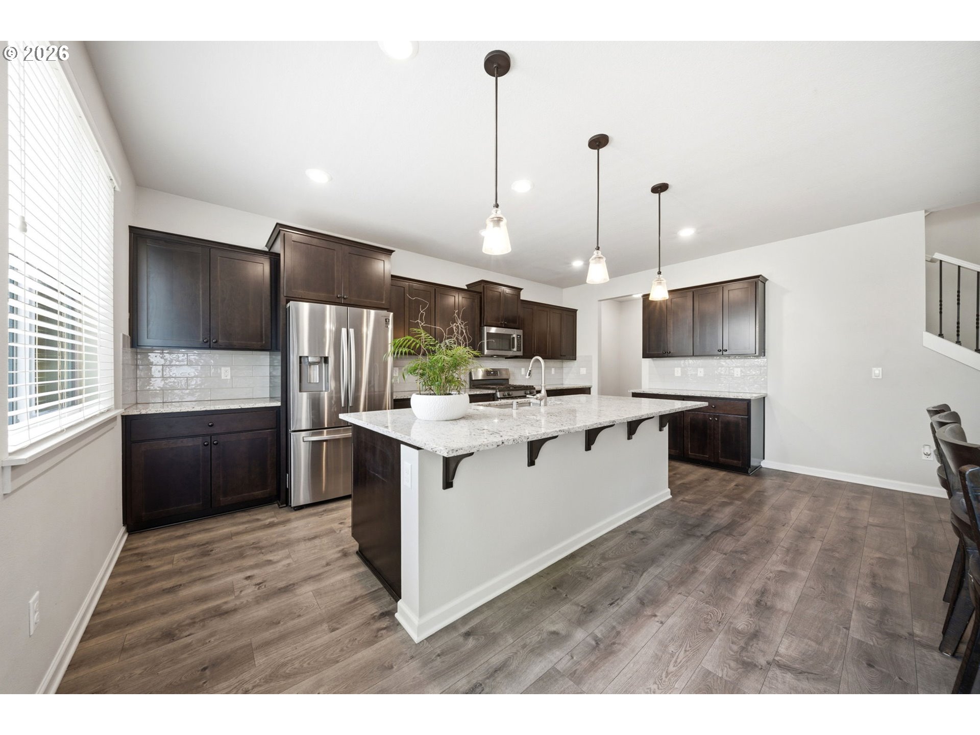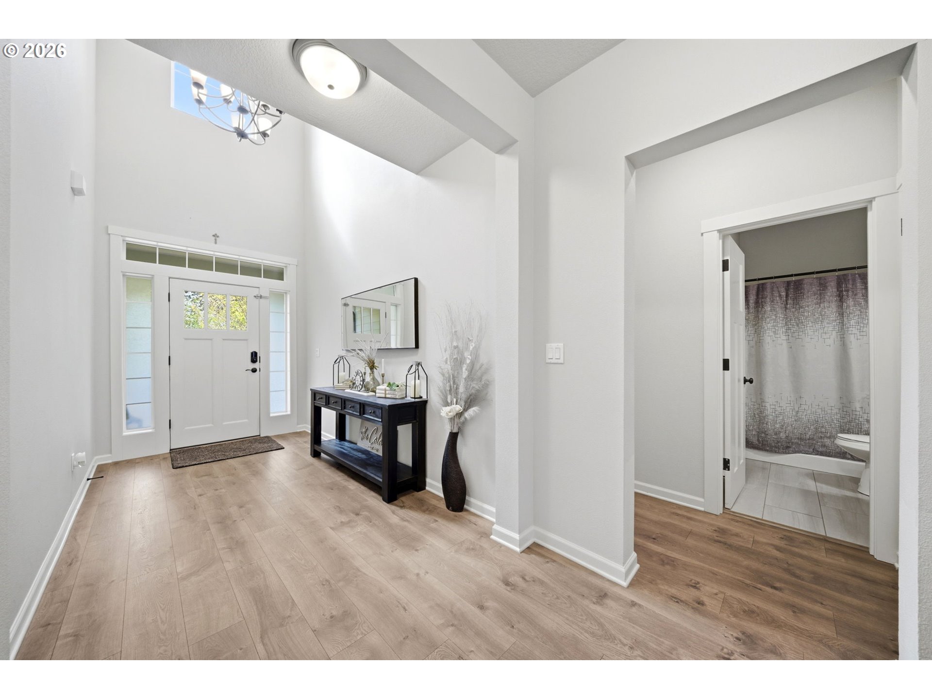 Welcome to this Stunning 2688 sq ft two-story craftsman home, where comfort and style come together in a lovely, open-concept design with high ceilings. The main level features a bright spacious living area, a large granite island, walk-in pantry, stainless steel appliances, and a gas range-perfect for gathering with family and friends. A main-floor bedroom and full bath offer flexible living for guests or multi-generational needs, with beautiful laminate flooring throughout the main level and stairs. Upstairs, you'll find a cozy bonus area, two additional bedrooms, a full bathroom and laundry room. The primary suite is a relaxing retreat, complete with large walk-in closet and an amazing bathroom featuring dual sinks, soaking tub and a walk-in tiled shower. Enjoy the ease of a 3-car garage, gutter guards, and a beautifully landscaped, low- maintenance backyard with stone and rock design perfect without the upkeep. Conveniently located just 25mins from Portland International Airport (PDX) Don't miss out on this amazing home!
