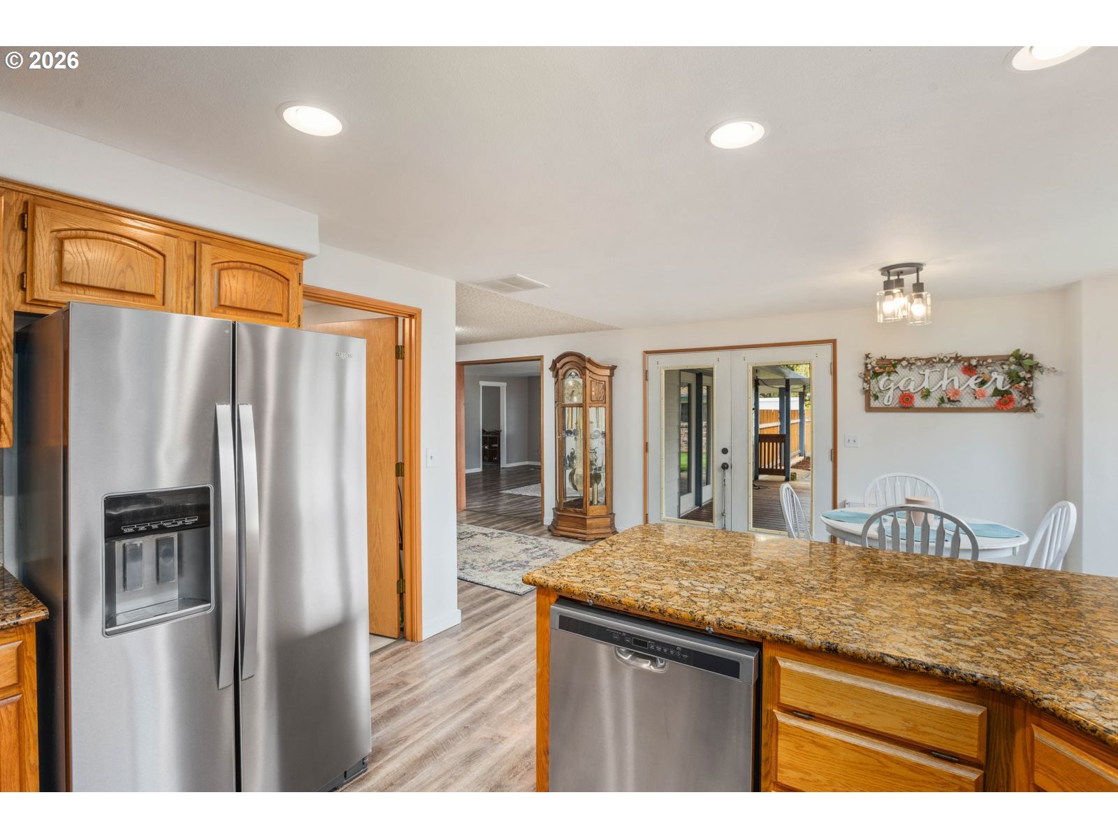 Dishwasher, FreeStandingRange, FreeStandingRefrigerator, Granite, StainlessSteelAppliance