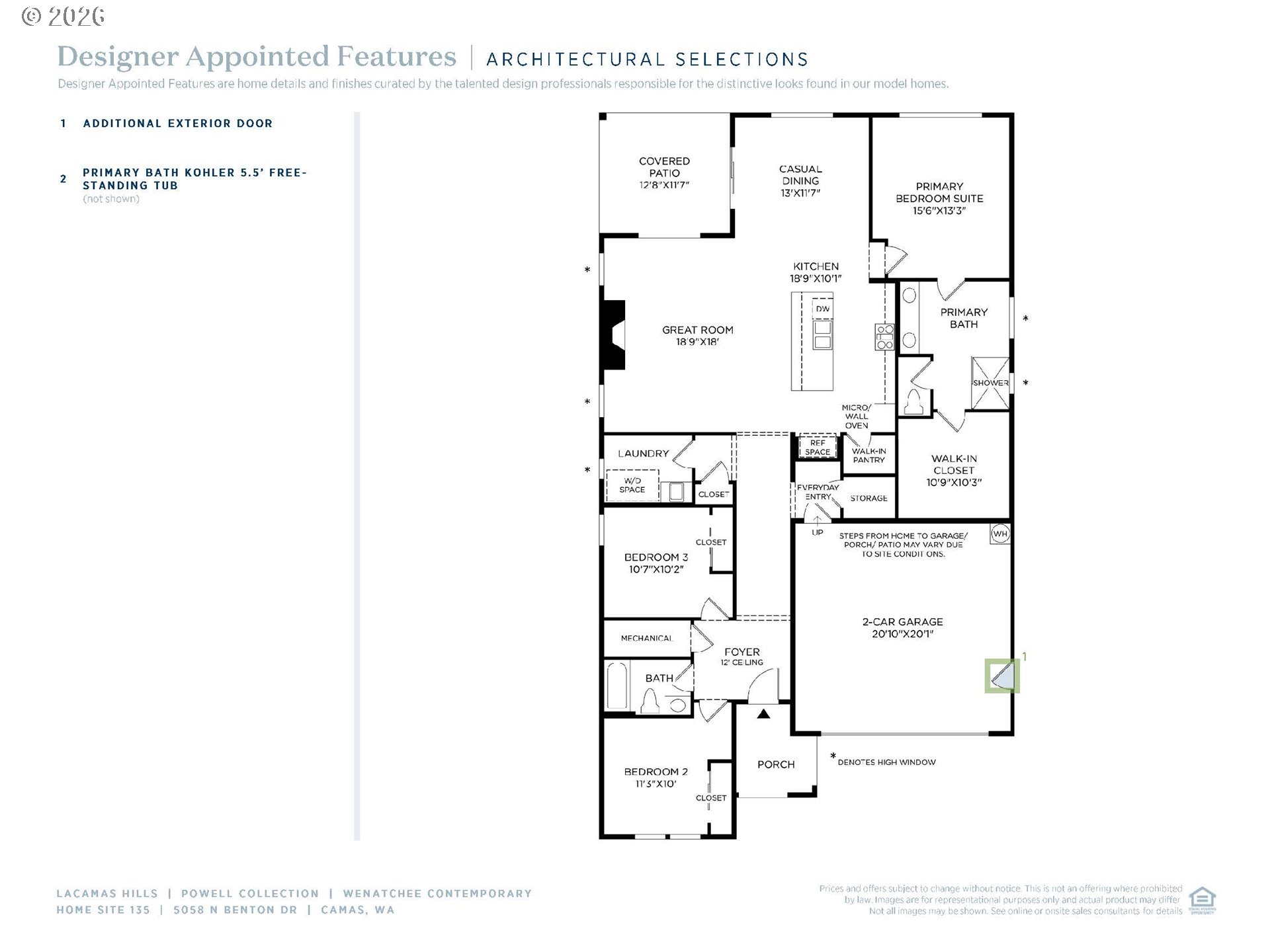 Homesite 135: Newly staged and ready for you to tour! An airy foyer flows into the Wenatchee's stunning great room with access to a lovely covered patio. Adjacent, the well-designed kitchen is highlighted by a sizable casual dining area, oversized center island with breakfast bar, plenty of counter and cabinet space, and a roomy walk-in pantry. The alluring primary bedroom suite is enhanced by an ample walk-in closet and a gracious primary bath with a dual-sink vanity, a luxe shower, freestanding tub, and private water closet. Secondary bedrooms feature sizable closets and share a hall bath. Additional highlights include easily accessible laundry, an everyday entry, and additional storage closet. Taxes have not been updated to reflect a completed home. Move-in ready! Visit our sales center to learn more!