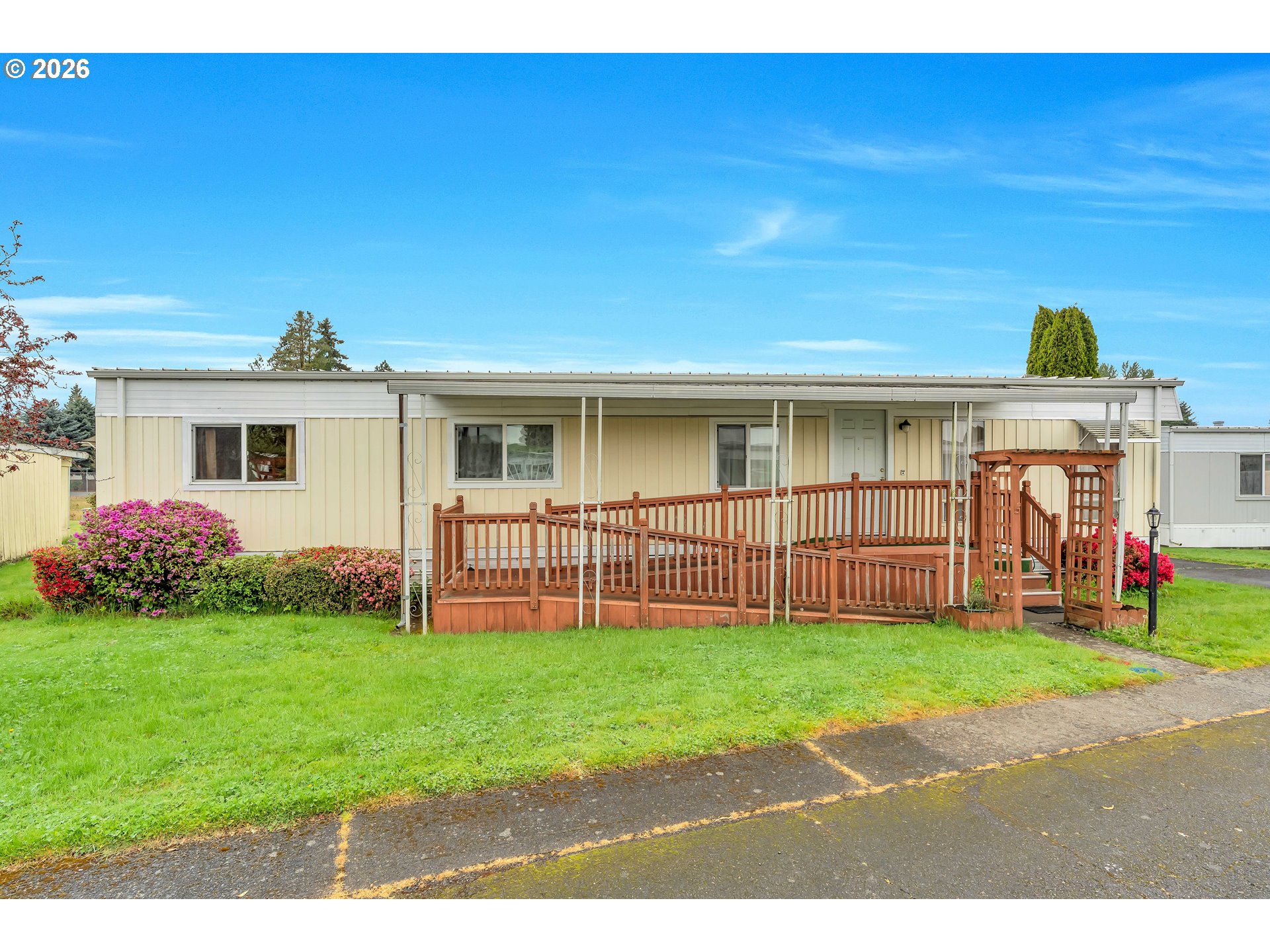 One-Level Living Made Easy! Set within a gated 55+ community, this 1,511 sq ft manufactured home offers an inviting blend of comfort, functionality, and low-maintenance living. The spacious, vaulted dining area flows seamlessly into the kitchen, where generous counter space including an eating bar, ample storage, and an included dishwasher and refrigerator make every day routines effortless. With two bedrooms and two bathrooms, the practical single-level layout is both comfortable and easy to live in. Outdoors, enjoy a large, covered porch and the convenience of an extra-deep carport, plus the well-maintained community features a large park for residents to enjoy. Located near shopping, dining, medical facilities, and with easy freeway access, this home combines comfortable living with everyday convenience in a well-established community. Buyer must be approved by the park.