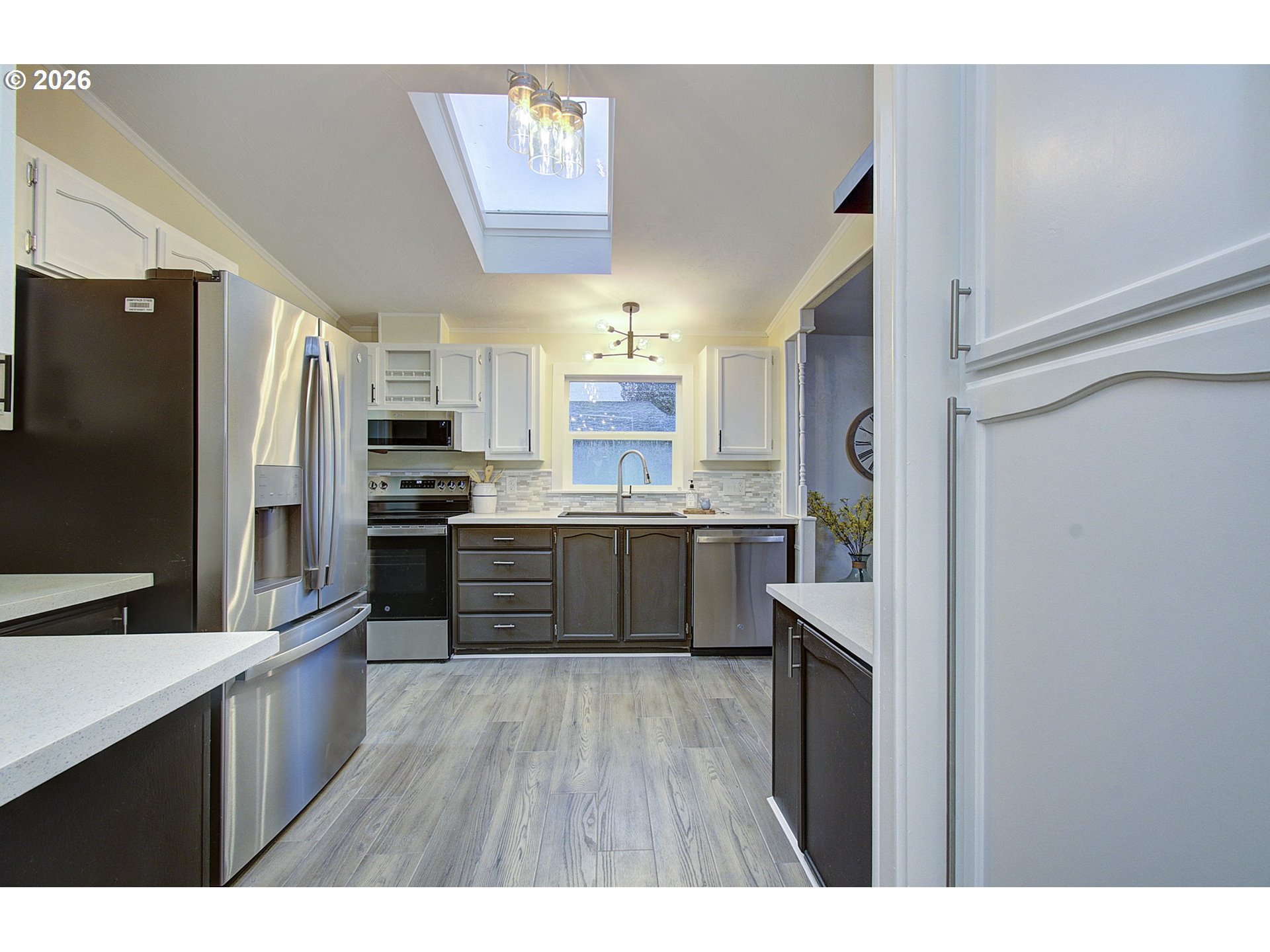Located in the highly sought-after 55+ Creekside Estates—widely considered one of the nicest senior communities in Vancouver, Washington—this beautifully remodeled three-bedroom, two-bath double-wide manufactured home truly stands out with a hard to find ATTACHED GARGAGE! Step inside to a big, light, and bright interior featuring all-new flooring and fresh paint throughout, creating a clean and modern feel. The spacious kitchen has been fully updated with quartz countertops and brand-new stainless steel appliances, while both bathrooms have also been remodeled with matching quartz counters for a cohesive, upscale look. The bedrooms are generously sized, offering comfortable space for relaxation, guests, or a home office. Beyond the stylish updates, this home offers impressive efficiency and comfort with a forced air furnace and heat pump that includes air conditioning, along with all-new windows for added energy savings. Fresh exterior paint adds to the home’s polished appearance. The absolute showstopper, however, is the ATTACHED GARAGE—a rare and highly desirable feature in this community—providing secure parking, extra storage, and everyday convenience that is hard to find. This is a special opportunity to own a move-in-ready home with standout features in an exceptional senior park.