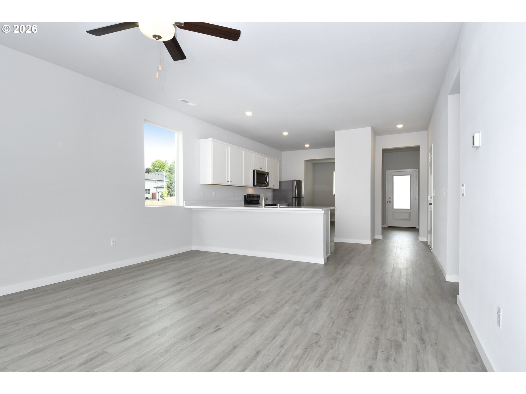 Now available in Vancouver, this gorgeous corner lot, single-story home offers a thoughtfully designed layout with modern finishes throughout. The open living area flows seamlessly into the dining room and chef-ready kitchen, complete with stainless steel appliances, quartz countertops, and contemporary cabinetry. The private primary suite features a luxurious en-suite bath with a soaking tub, separate shower, and a spacious walk-in closet. Two secondary bedrooms and a second full bath provide flexibility for family and guests. Professional front yard landscaping and energy-efficient features complete this beautiful new home.