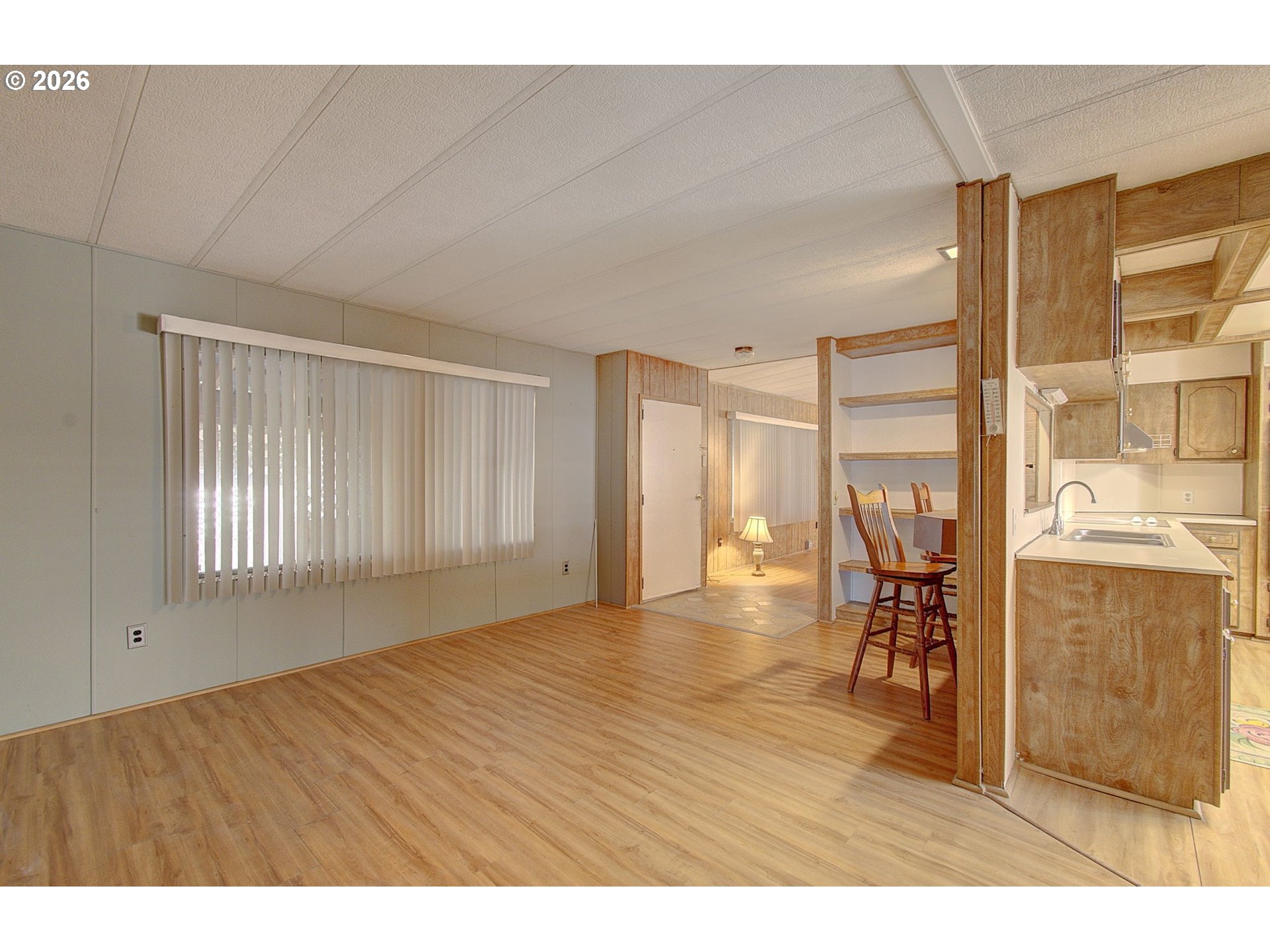 Spacious 3-bedroom, 2-bath manufactured home in Fair Oaks Estates, a 55+ community in Vancouver. Offering 1,436 square feet of living space plus a large enclosed patio. Features include laminate flooring, accessible ramp, and a roll-in shower in the primary bathroom. The living room includes a cozy gas portable stove. Community amenities include a clubhouse with recreational and gathering space. Lot rent is $970/month, with park-approval. Move-in ready and available now.