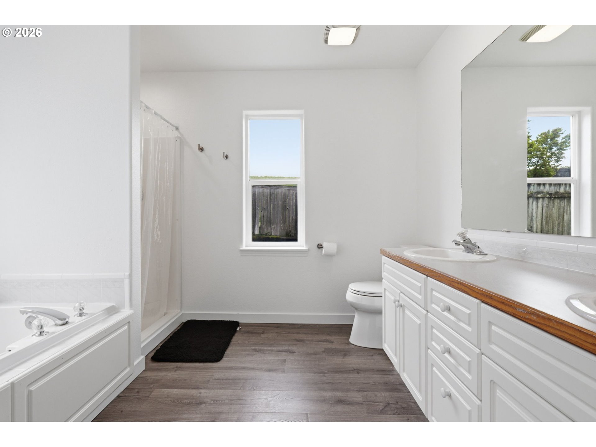 Enjoy easy, single-level living in a prime Camas location just minutes from top-rated schools, shopping, and dining in East Vancouver. Inside, vaulted ceilings and expansive windows fill the home with natural light, creating an open, airy feel that flows effortlessly from the living space into the kitchen and dining area. The kitchen is bright and fresh with crisp white cabinetry, generous counter space, and a functional layout that keeps everything within reach. The adjacent dining area is perfectly positioned to overlook the backyard. The primary suite offers a comfortable retreat with a spacious vanity, while two additional bedrooms provide flexibility for guests, a home office, or hobbies. A dedicated laundry room adds everyday convenience. Out back, a fully fenced yard and covered deck set the stage for summer evenings, weekend gatherings, or quiet mornings outside. Thoughtful updates add real value here, including fresh interior paint and new flooring completed in 2026, along with a newer furnace installed just six months ago and a hot water heater that is less than five years old. All appliances stay, including the washer and dryer, making this home truly move-in ready. Come see it for yourself and experience how comfortably this home lives. Schedule your showing today!