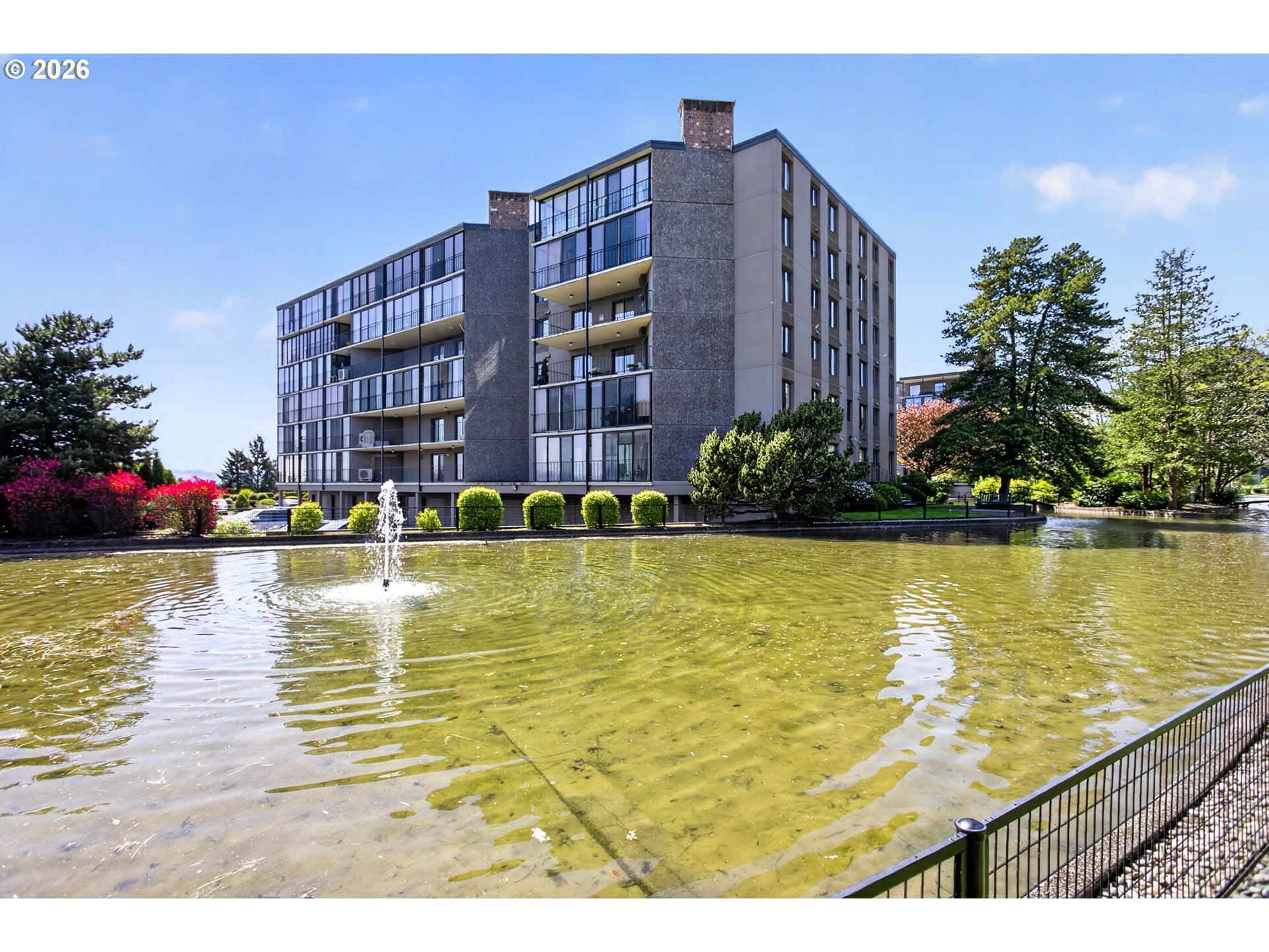 Best condo location overlooking common area/pond, plus Columbia River views. Nicely updated with newer cabinets, granite slab counters, and Tigerwood hardwood floor. Beautiful kitchen w/amazing pantry, Vinyl windows and slider to covered deck w/access from living room & bedroom with rare pleasing views. Updated bathroom with walk=in soaker tub shower. Great resort style community amenities including fitness center, heated pool, spa, sauna, recently renovated rec-room, rentable guest suite, extra storage space, and even a cafe! Recent interior common area updates include LVP flooring and new LED lighting. Easy access to SR14, the newly renovated downtown Vancouver waterfront area, I-5, I-205 & PDX.