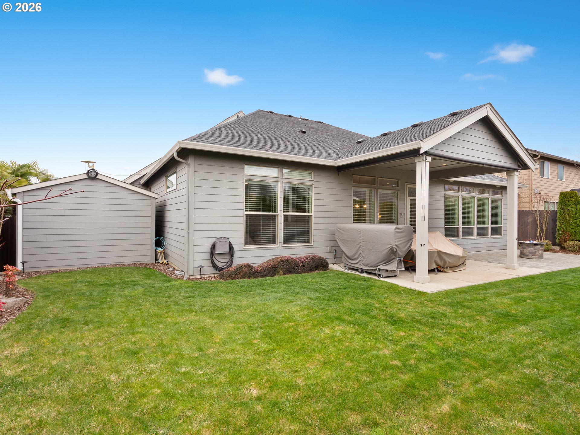 Welcome to Vancouver’s premier Philbrook Farms neighborhood — where timeless elegance meets everyday luxury. This beautifully maintained, custom-built 4-bedroom, 3-bathroom home is the BEST in the area, boasting a 3-car garage with extra depth for a car lift (effectively 4-car capacity), plus side parking for your boat or RV.Step inside to dramatic 10-foot ceilings and an open main floor with waterproof vinyl plank flooring. The family room features built-in surround sound and a modern fireplace with a full tiled wall, ideal for relaxing or entertaining.The gourmet kitchen shines with quartz countertops (solid surface ), an oversized island, soft-close cabinets and drawers with pull-outs, upgraded stainless steel appliances, a built-in wine cooler, touch less faucet, glass-front display cabinet, and custom cabinetry for tall ceilings. Enjoy added convenience with a central vacuum system and auto-light pantry.Retreat to the luxurious primary suite, complete with a tiled bathroom and closet, extra-large walk-in closet with built-in shoe racks and sweater storage, custom makeup vanity, soft-close toilet seats, and a spa-like walk in shower with clear glass doors. Thoughtful upgrades include custom-stained mirror frames, electric blind openers, ceiling fans throughout, a large built-in wall safe, and file cabinet.Outside, the private backyard paradise is landscaped with a soothing water feature, patio speakers for entertaining, and a retractable screen door for bug-free evenings. The 11x16 powered outbuilding with auto-lighting adds extra utility.Philbrook Farms offers sidewalks, parks and walking trails. Minutes from Legacy Hospital, top schools, shopping, dining, and easy access to I-5 and I-205 for seamless commutes.This isn’t just a house — it’s a lifestyle for hosting dinners, unwinding by the fire, or sipping coffee by the water feature. Don’t miss the finest in Philbrook Farms!