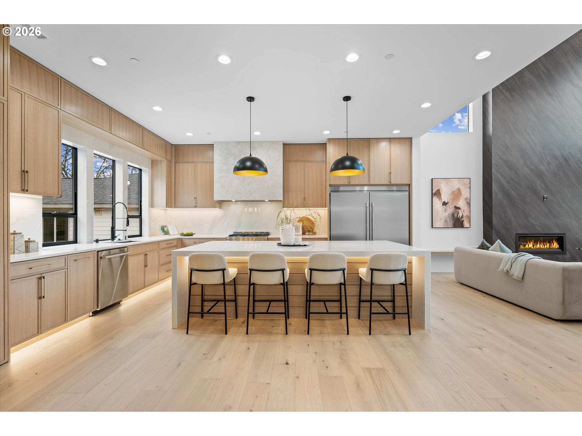 Custom modern luxury meets rare natural surroundings on one of the last remaining greenbelt lots in Spyglass Hill, located in the Camas School District. This stunning new construction offers 5 bedrooms and 5 bathrooms, including a versatile main-floor primary suite or office.The open-concept main level is designed for effortless living and entertaining, featuring a spacious living area, a beautifully appointed kitchen with a hidden pantry, and an open dining space that flows seamlessly to the deck overlooking peaceful outdoor green space. Downstairs, you’ll find a second spacious living area, bonus room, and private sauna. Upstairs offers 3 bedrooms, including a primary suite and guest suite, both with attached baths.Nearly every bedroom includes its own en suite, with expansive closet space in each of the homes closets.Enjoy seamless indoor-outdoor living with two decks, a large private yard, and a serene creek setting with seasonal peekaboo views of the Columbia River.A truly rare opportunity.