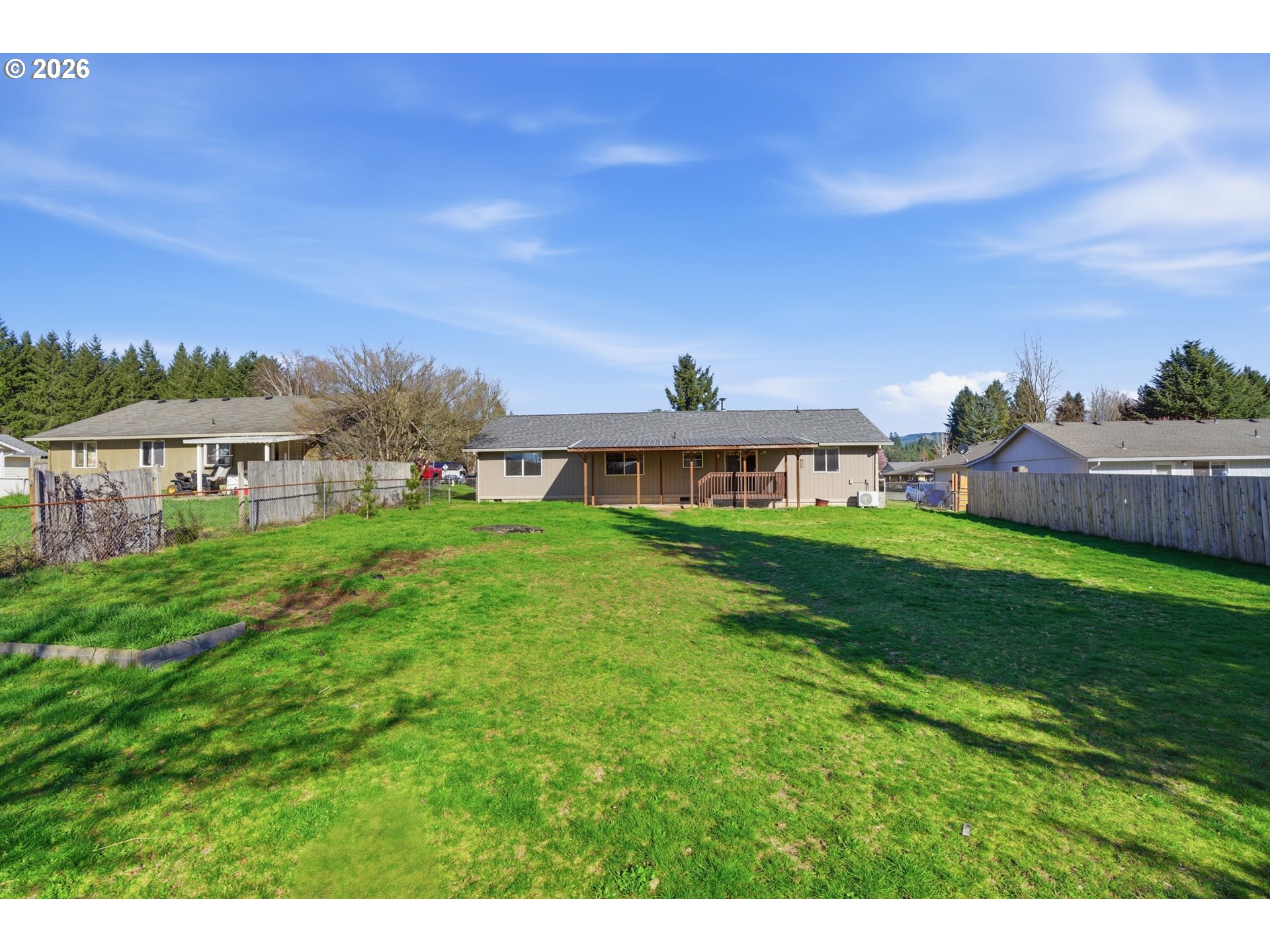 Welcome to easy, one-level living in a charming small-town setting. This inviting home offers the perfect blend of comfort, functionality, and outdoor enjoyment. Step inside to a bright and open layout where a cozy wood stove anchors the living room, creating a warm and welcoming gathering space year-round. The home features three spacious bedrooms and two full bathrooms, including one with a shower/tub combo and another with a large walk-in shower. A dedicated dining area sits just off the kitchen, which is equipped with stainless steel appliances—making it a practical and comfortable setup for both everyday meals and hosting. Outside, the property truly shines. Enjoy peaceful mornings on the covered front porch and unwind in the evenings on the covered back deck overlooking the flat, green, multi-purpose lot. Whether you're hosting around the fire pit, letting pets roam freely within the fully fenced yard, or tending to your chicken coop, this space is ready to fit your lifestyle. A two-car garage with a built-in workbench adds convenience and functionality, perfect for hobbies, storage, or projects. With its thoughtful features, generous outdoor space, and small-town charm, this Yacolt gem is ready to welcome you home.