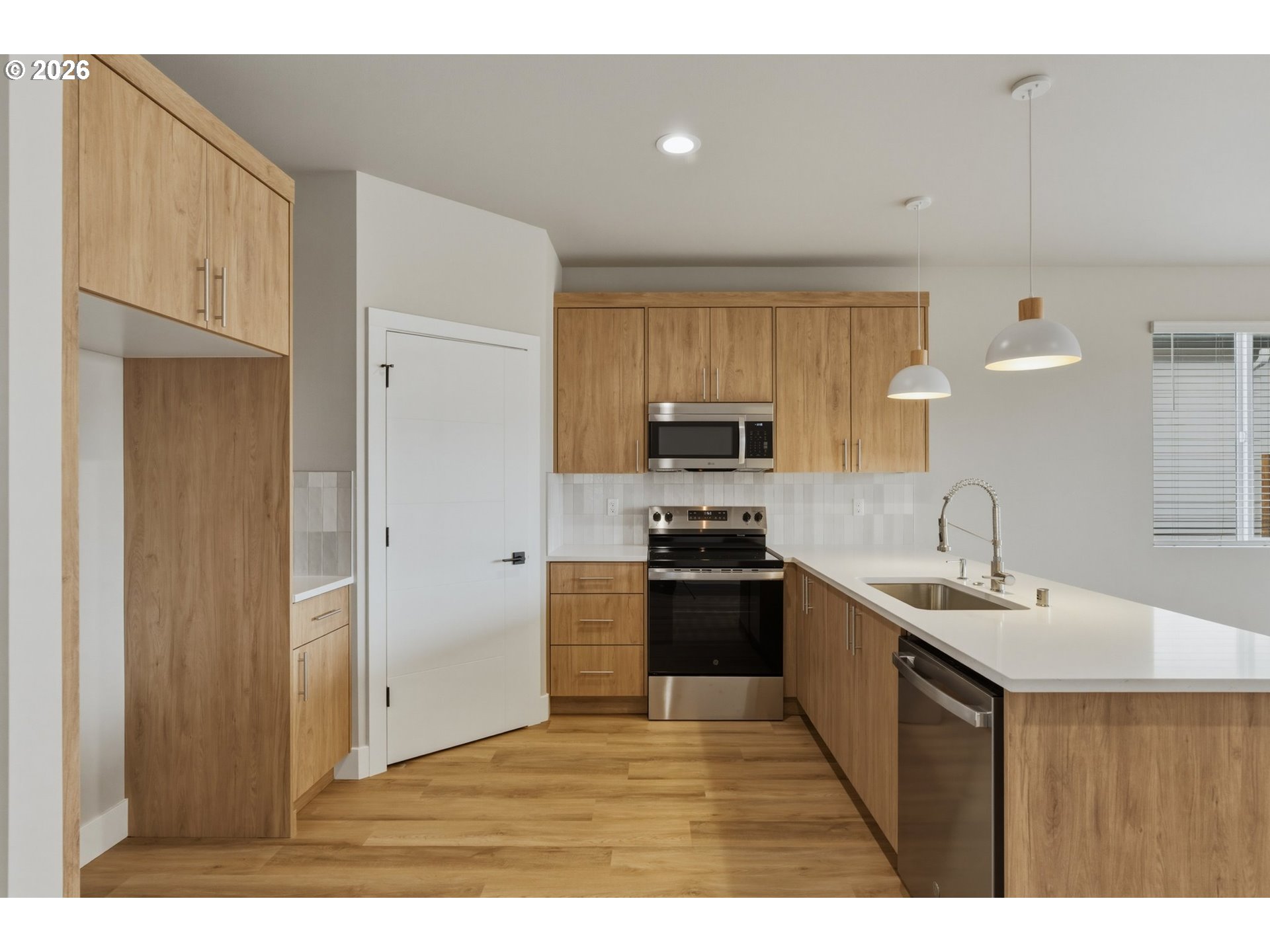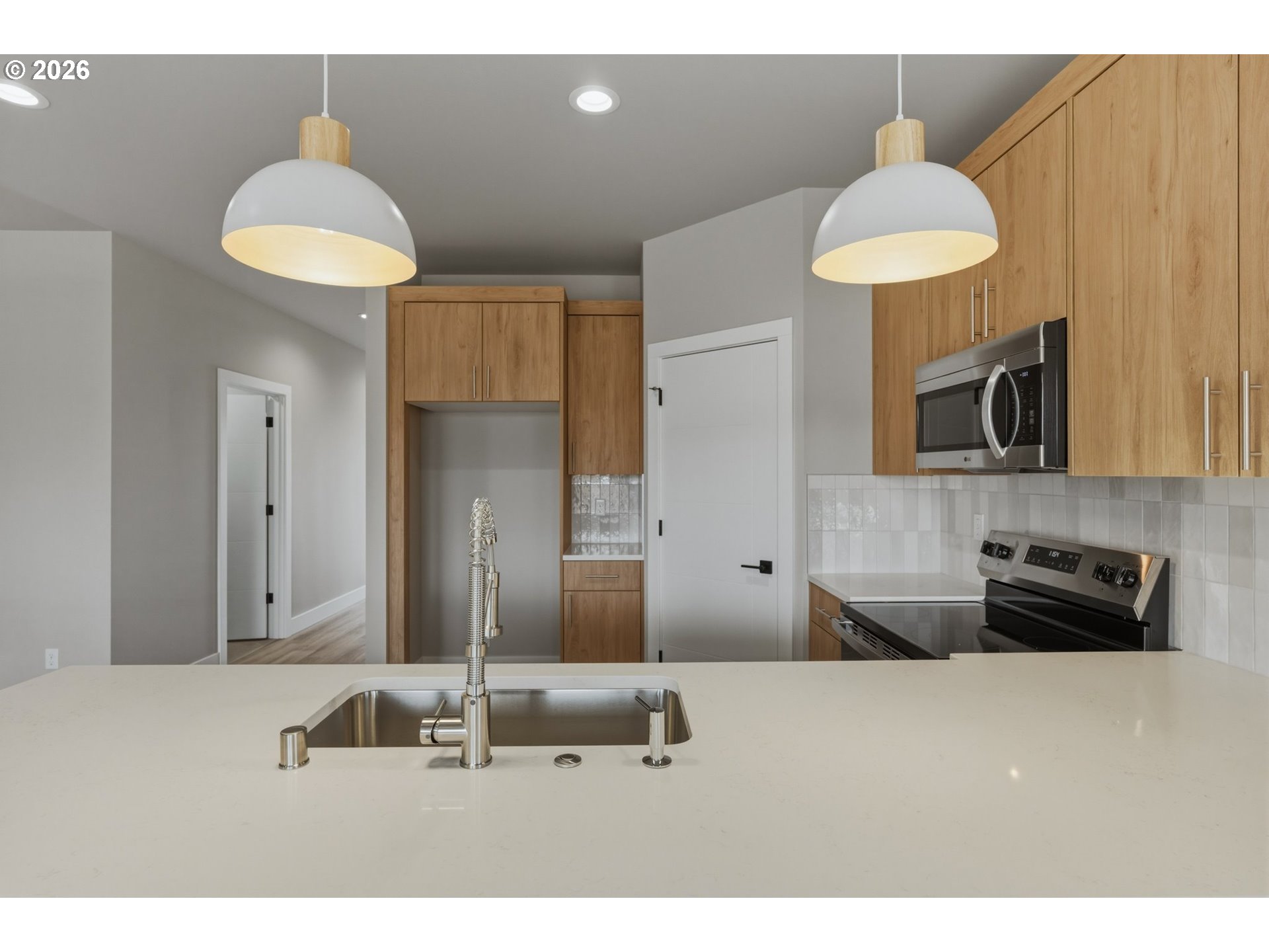 BuiltinRange, Dishwasher, Island, Microwave, Pantry, Quartz, StainlessSteelAppliance, Tile
