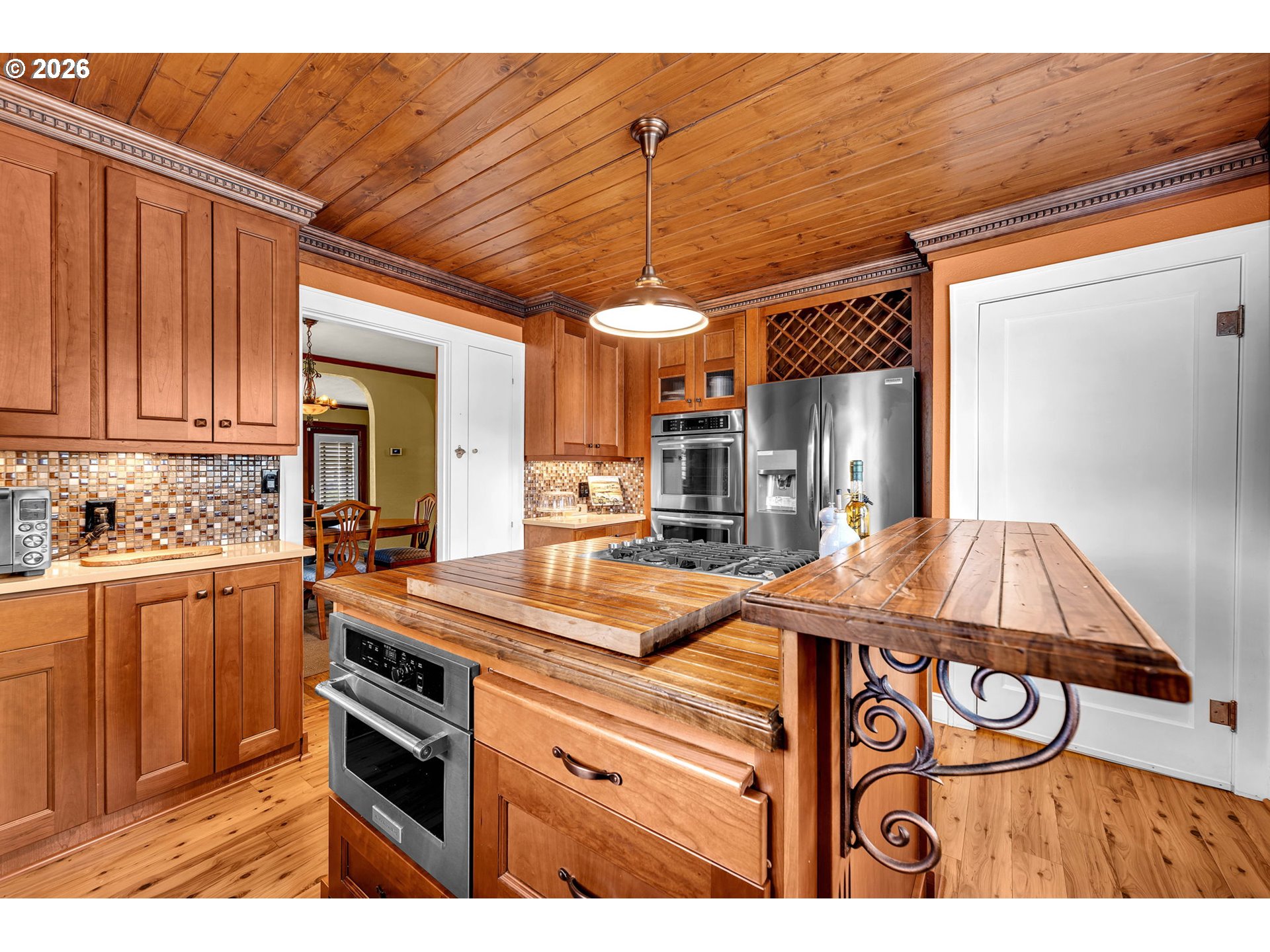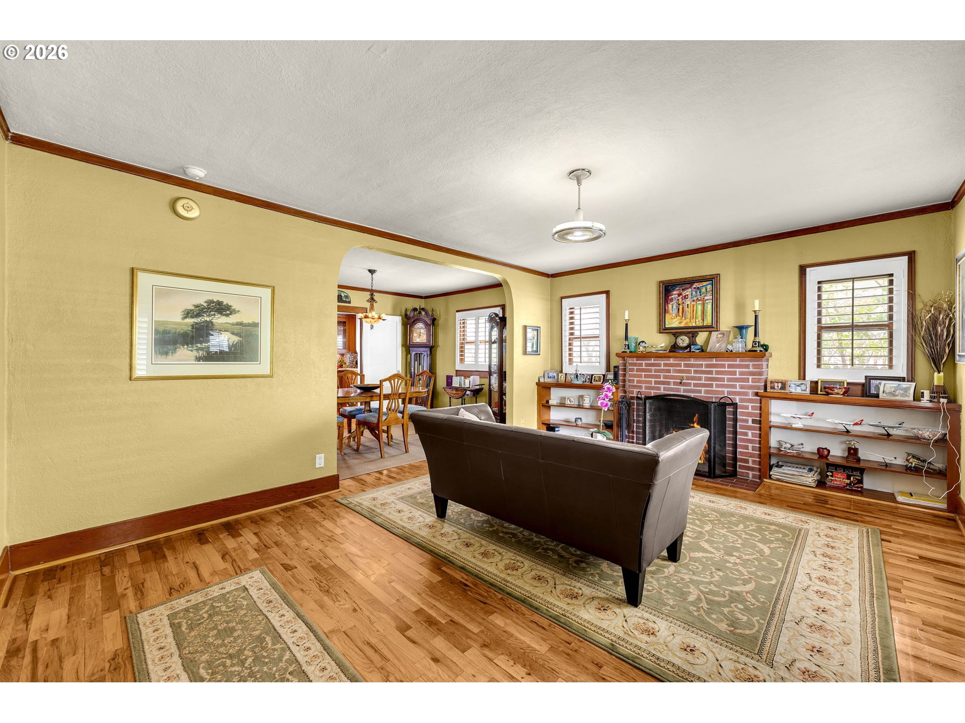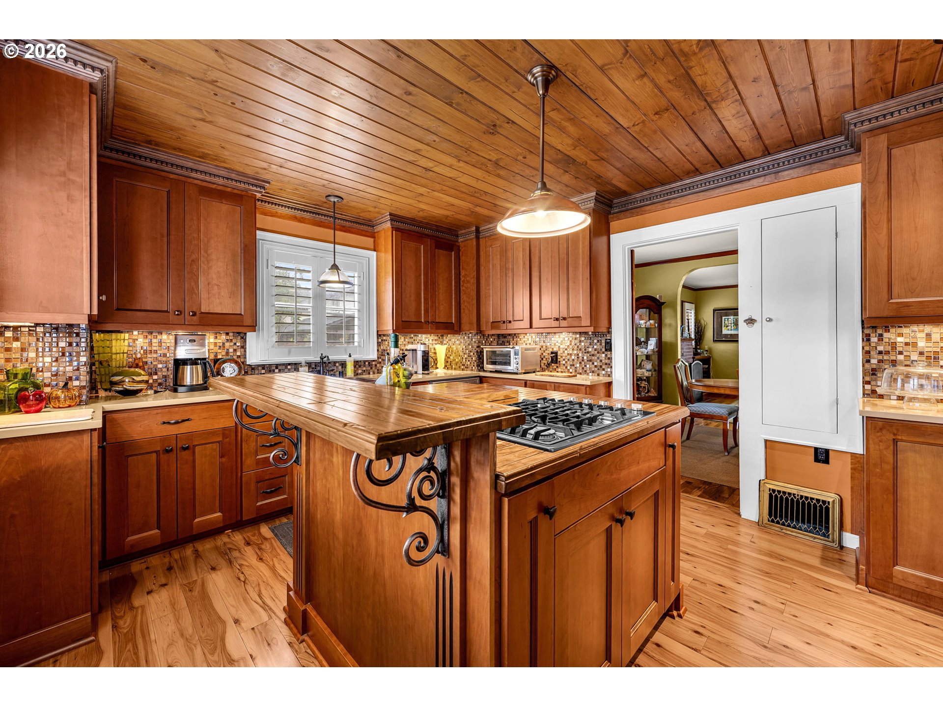 Tucked into a central, highly convenient location, this storybook Craftsman blends timeless charm with thoughtful, modern updates—creating the perfect balance for today’s busy households. Set on a large, private lot, the property offers room to play, entertain, and unwind, all while feeling like your own secluded retreat.Inside, the home shines with a fully remodeled gourmet kitchen designed for both everyday living and hosting, featuring quality finishes, abundant storage, and a warm, inviting aesthetic. Classic details like hardwood floors, crown molding, built-ins, and a cozy wood-burning fireplace preserve the home’s character, while smart updates throughout ensure comfort and efficiency. Flexible living spaces—including a loft with built-ins and surround sound—offer ideal work-from-home or relaxation zones for professionals and growing households alike.Outdoors, the charm continues with a welcoming covered front porch, beautifully landscaped and fully fenced grounds, and multiple spaces to gather—from the gazebo and private hot tub to the serene yard dotted with mature fruit trees. A detached garage with a finished, heated shop and potential for additional space above adds versatility and value.Peace of mind comes easy here, with major systems already updated—including a newer roof and a brand-new HVAC system—allowing you to simply move in and enjoy. This is a rare opportunity to own a character-rich home with all the heavy lifting already done, in a location that keeps you close to everything.