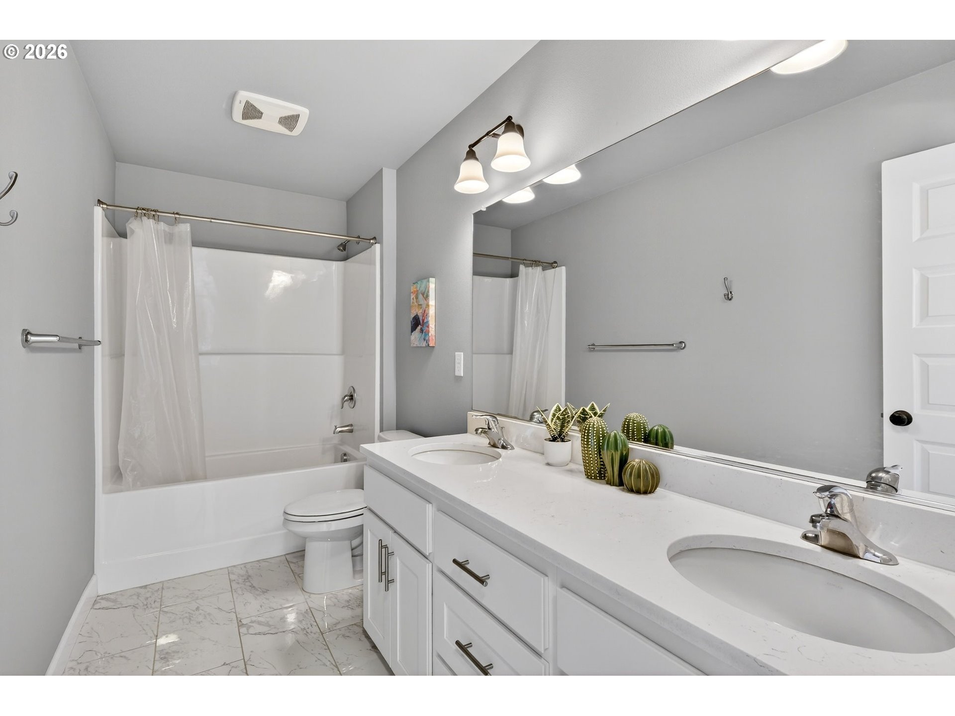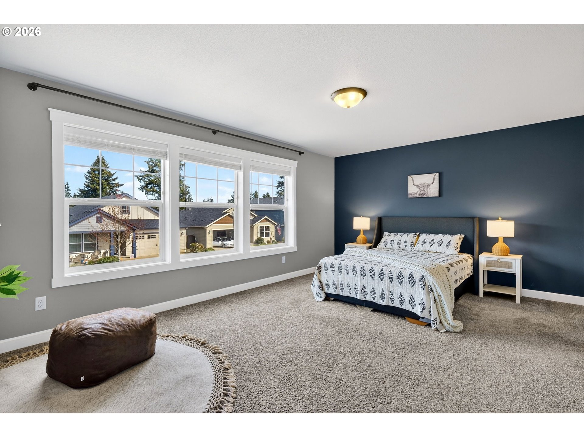Welcome home to this better-than-new Hidden Crest beauty, ideally located in the highly desirable Pleasant Valley / Salmon Creek area, offering both convenience and lifestyle. Step into the main level, where a bright and inviting living room features a cozy gas fireplace and a wall of windows that fill the space with natural light. The open-concept layout flows seamlessly into the modern kitchen, complete with quartz countertops, a large island, pantry, stainless steel appliances, and a gas stove with conventional oven—perfect for both everyday living and entertaining. Laminate flooring throughout the main floor adds warmth and durability. Upstairs, the primary suite offers a relaxing retreat with a spa-like ensuite bathroom featuring double-sink vanity, soaking tub, walk-in shower, and spacious walk-in closet. Two additional bedrooms plus a flexible bonus room provide options for a fourth bedroom, office, or playroom. A full bathroom with double sinks and bathtub serves the additional rooms, and the laundry room is conveniently located upstairs near all bedrooms. Step outside to the large backyard, thoughtfully designed with level paved space and flower beds, creating the perfect setting for family gatherings, outdoor dining, and entertaining.Enjoy the wonderful Hidden Crest community amenities, including private parks, playgrounds, and walking trails. The home is also centrally located near Costco, Home Depot, shopping malls, restaurants, major freeways, and endless outdoor recreation. This home truly offers comfort, style, and an unbeatable location — a must see!