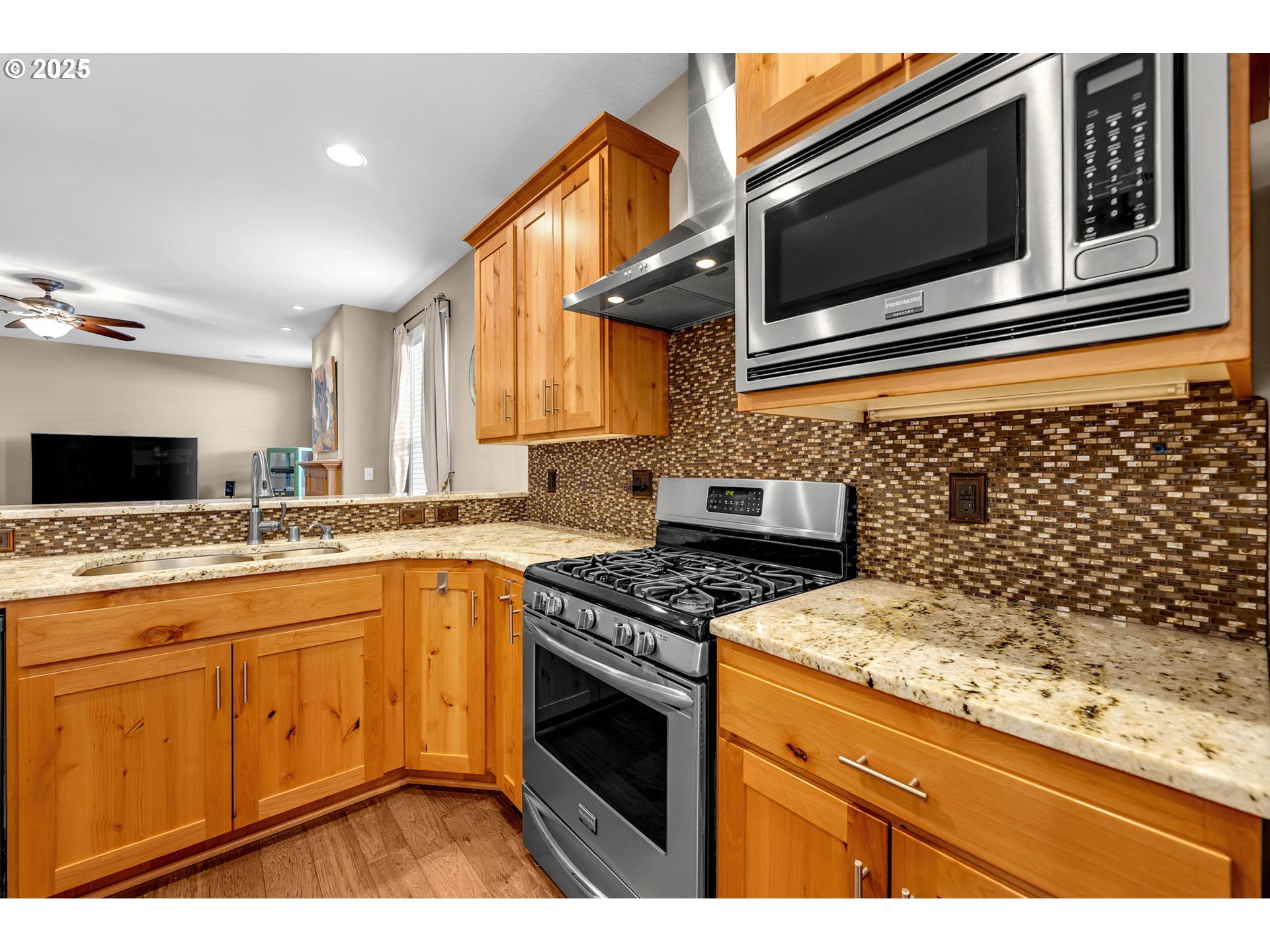 Spacious single-level 3 bedroom 2 full bath home with a 2-car garage situated on a flat, level, easily accessible street in the heart of Vancouver! Enjoy an open floor plan with high ceilings, a beautifully upgraded kitchen featuring quartz counters, quartz island, gas stove, pantry, and lots of storage. Wood floors extend through the living room and dining room, complemented by built-in surround sound and a freestanding entertainment system included with the home. The primary suite offers a walk-in closet, dual vanity, jetted tub, and walk-in shower. Step outside to a low-maintenance backyard with a covered patio, perfect for year-round enjoyment. Assumable 2.25% mortgage interest rate! Don’t wait, schedule your private tour TODAY!