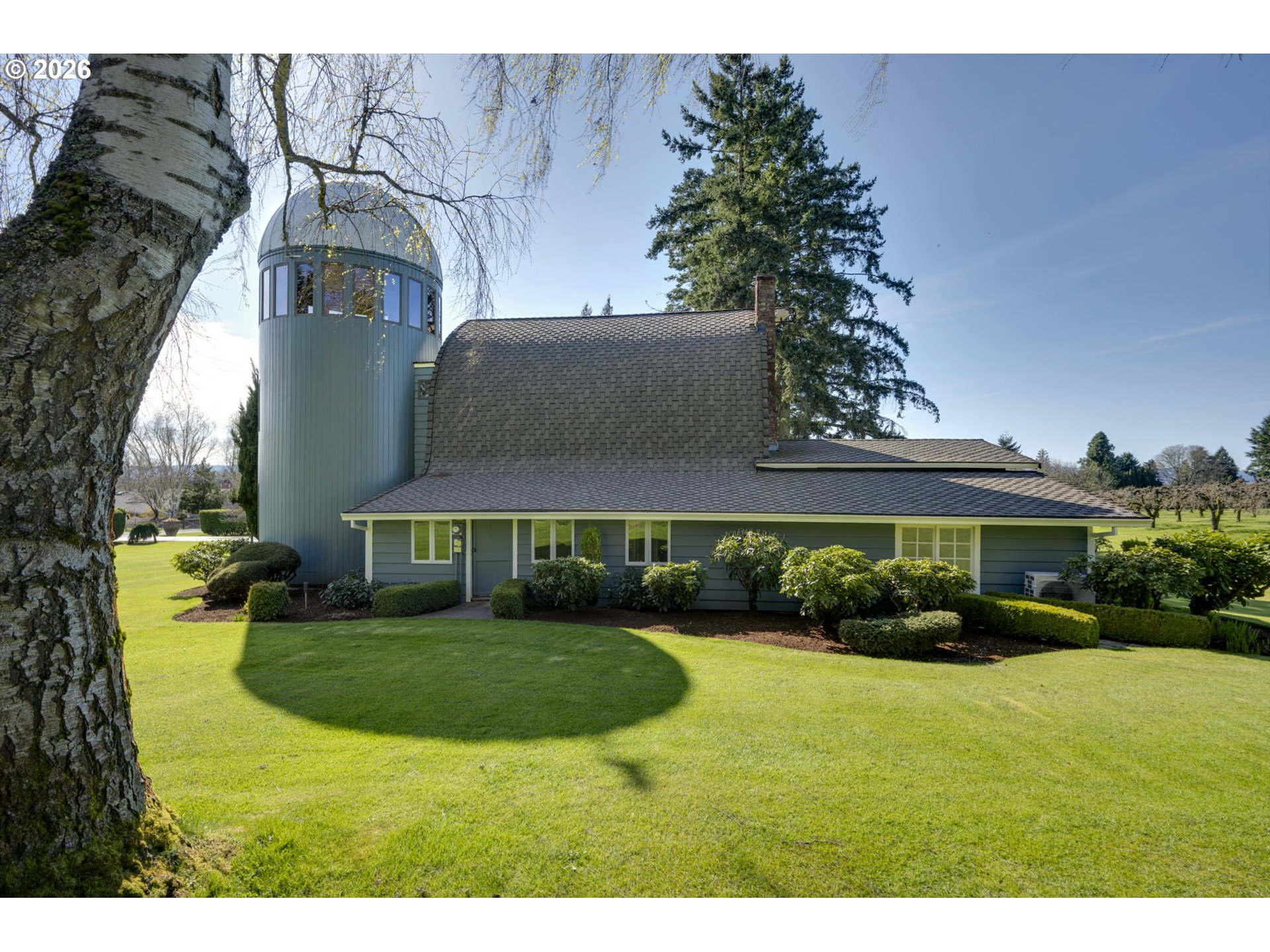 Welcome to Omega Farm, an exceptional and storied property offering two separate tax lots totaling approximately 5 acres in beautiful Ridgefield, WA. This unique opportunity features two residences, each with its own well, septic system, power, and irrigation, providing flexibility for multi-generational living, income potential, or creative use. The iconic “Barn” residence sits on approximately 4 acres and has been thoughtfully transformed from a 1960s dairy barn into a one-of-a-kind home. Lovingly renovated over time with extensive custom craftsmanship, the home showcases distinctive character throughout, including a curved roofline, custom stained glass windows, and a stunning handcrafted Koa wood front door imported from Hawaii. The exterior features a blend of red and yellow cedar siding, while the durable 50-year GAF Grand Sequoia roof adds long-term value. The property includes valuable water rights (permit #G2-24556C, up to 9 acre-feet annually) and a septic system permitted in 1976. The land is home to a productive Bartlett pear orchard, historically certified organic, with the potential to yield up to 15 tons in a strong season. The charming “Cottage,” built circa 1955, sits on its own 1-acre parcel and offers a full basement and attic along with all essential amenities. Previously used as a stained glass studio and storage space, it features hand-split cedar shingle siding and has benefited from electrical and plumbing updates following past fire/smoke restoration. The home is equipped with a unique wood/electric forced air furnace and shares the same high-quality 50-year roof as the other structures. Omega Farm is rich in history, character, and opportunity—ideal for those seeking a rural lifestyle, creative space, or investment potential in a serene Pacific Northwest setting.