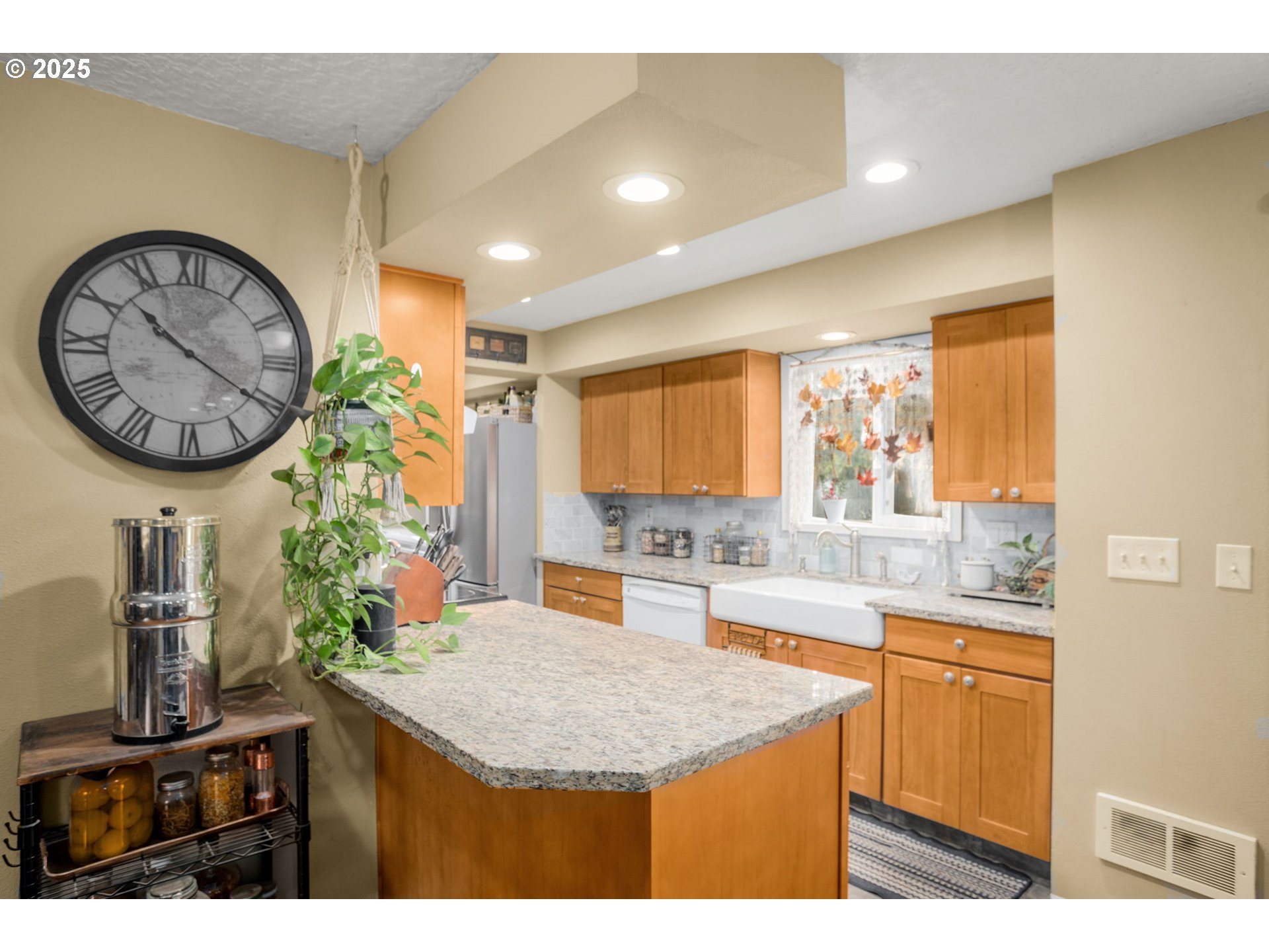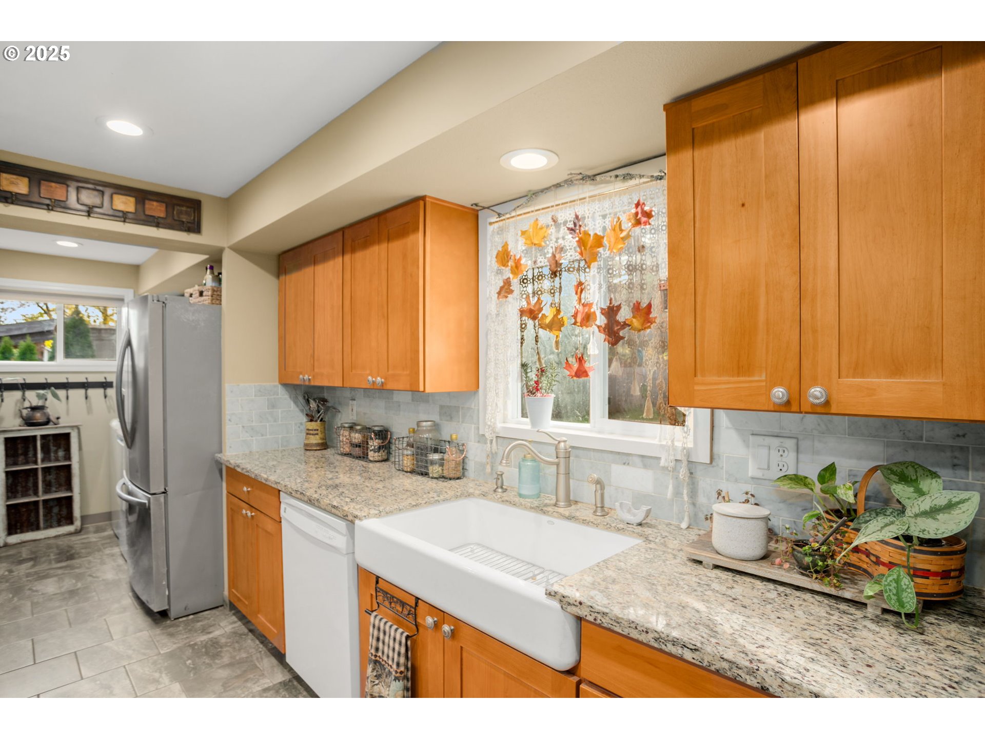 Discover this beautifully updated one-level, 3-bedroom, 2-bath ranch-style home tucked away on a quiet dead-end street in NE Hazel Dell. Set on a spacious, fully fenced .35-acre lot, this property offers comfort, privacy, and an inviting urban-farm charm.Inside, you’ll find lovely hardwood floors, an updated kitchen featuring granite countertops, a farmhouse sink, and ample cabinetry—perfect for the home chef. A cozy wood stove warms the home, complemented by updated vinyl windows for energy efficiency. The primary suite addition provides serenity and privacy with its location away from the other bedrooms.Step outside to a gardener’s and entertainer’s dream yard—a sunny, private retreat with raised garden beds, room for gatherings, and plenty of space to create your ideal outdoor oasis. Dreaming of keeping chickens? This yard has the space.Car enthusiasts, hobbyists, or those needing extra storage will love the oversized 2-car, 800 sq. ft. garage/shop, complete with RV parking and RV electrical hookup.All of this just minutes from Hazel Dell Community Park and a short drive to I-5 or I-205, offering quick access to local amenities while maintaining a peaceful, tucked-away feel. Experience the perfect blend of cozy living, functional updates, and expansive outdoor space in this delightful NE Hazel Dell neighborhood home.