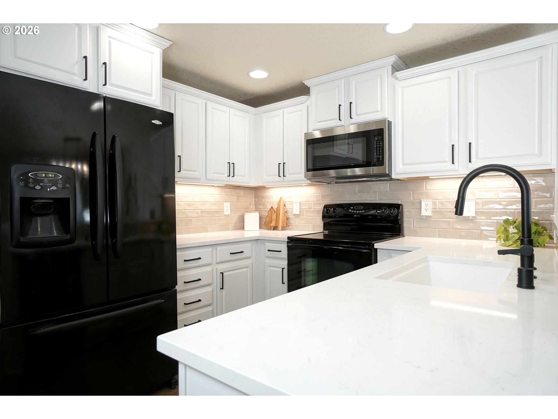 Dishwasher, FreeStandingRange, FreeStandingRefrigerator, Microwave, Quartz