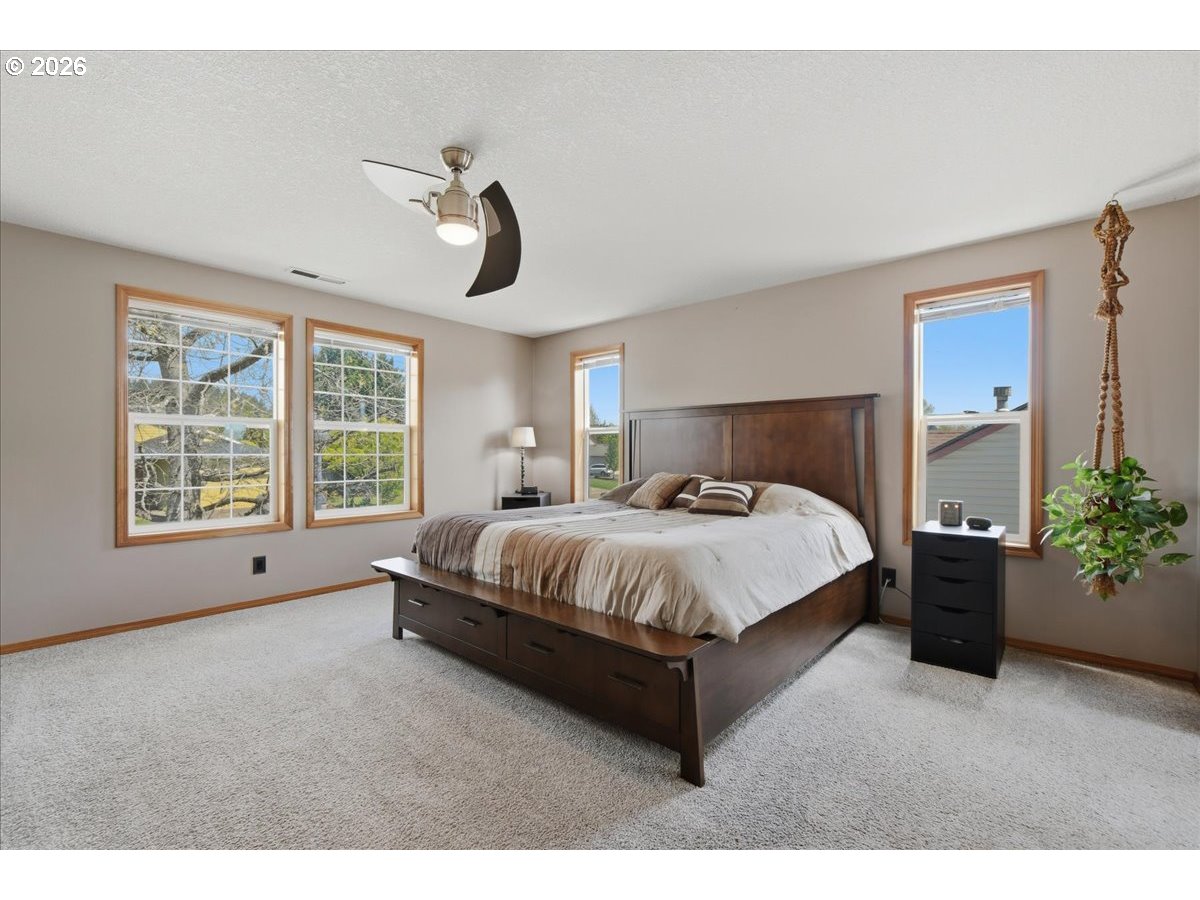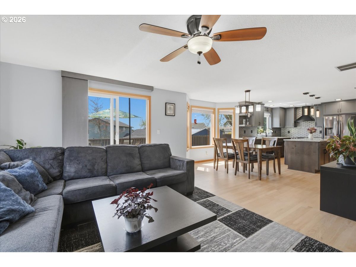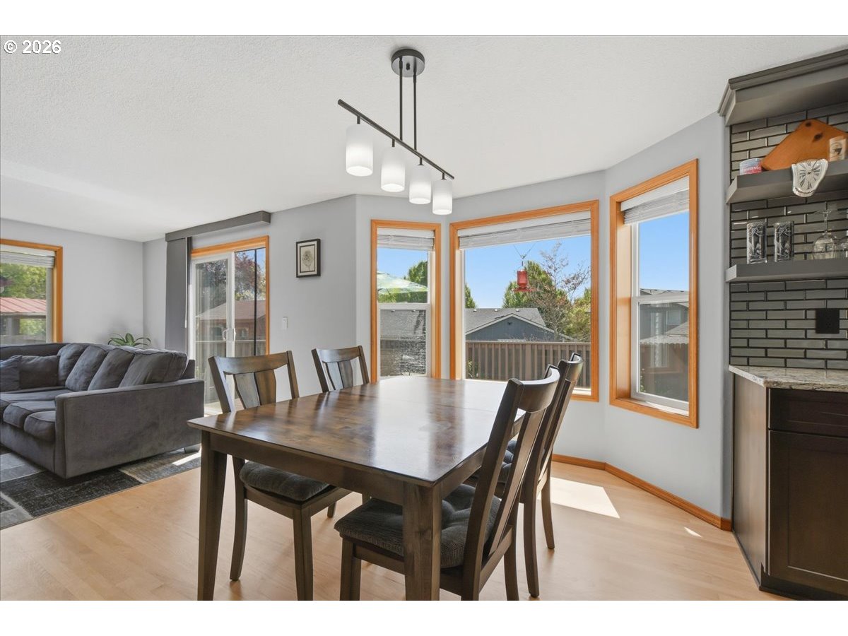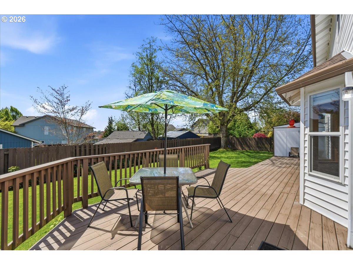 Pride of ownership shines throughout this beautifully maintained 4 bedroom, 2.5 bath home just under 2,400 sq. ft. in the highly sought-after Southview Heights neighborhood. An inviting front porch welcomes you into a vaulted entry filled with natural light, warm real hardwood floors, and soaring ceilings.The spacious living room and generously sized dining room provide the perfect setting for everyday living and hosting. The stunning updated kitchen is truly the centerpiece of the home, featuring quartz countertops, gorgeous soft-close cabinetry, a unique tile backsplash, custom range hood, high-end appliances, a large walk-in pantry, and an eating area, all enhanced by updated lighting.The cozy family room opens to the kitchen and showcases a beautiful gas fireplace with ledgestone surround, creating a warm and inviting space. The main level laundry room adds convenience with built-in cabinets and shelving.Upstairs, the spacious primary suite offers a walk-in closet and a beautifully updated bathroom complete with marble counters, new cabinetry, a luxurious Kohler shower, soaking tub, and luxury vinyl tile flooring. Three additional bedrooms are nicely sized, and the updated hall bath features marble counters, new cabinetry, and luxury vinyl tile.Important updates include a new roof in 2019, a newer water heater, and a reverse osmosis water filtration system, providing peace of mind for years to come.Step outside to your own peaceful retreat with a fully fenced backyard, a 10x12 shop with 220 power, an expansive wood deck, and a fire pit area perfect for summer entertaining. RV parking provides space for a travel trailer or boat.Located in a quiet and desirable neighborhood close to parks, walking trails, charming downtown restaurants and convenient nearby shopping with easy access to I-5—this is a truly wonderful place to call home.