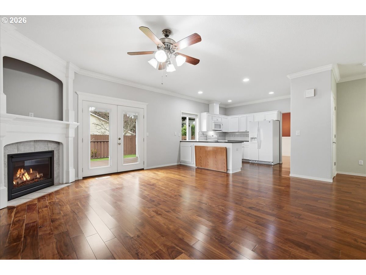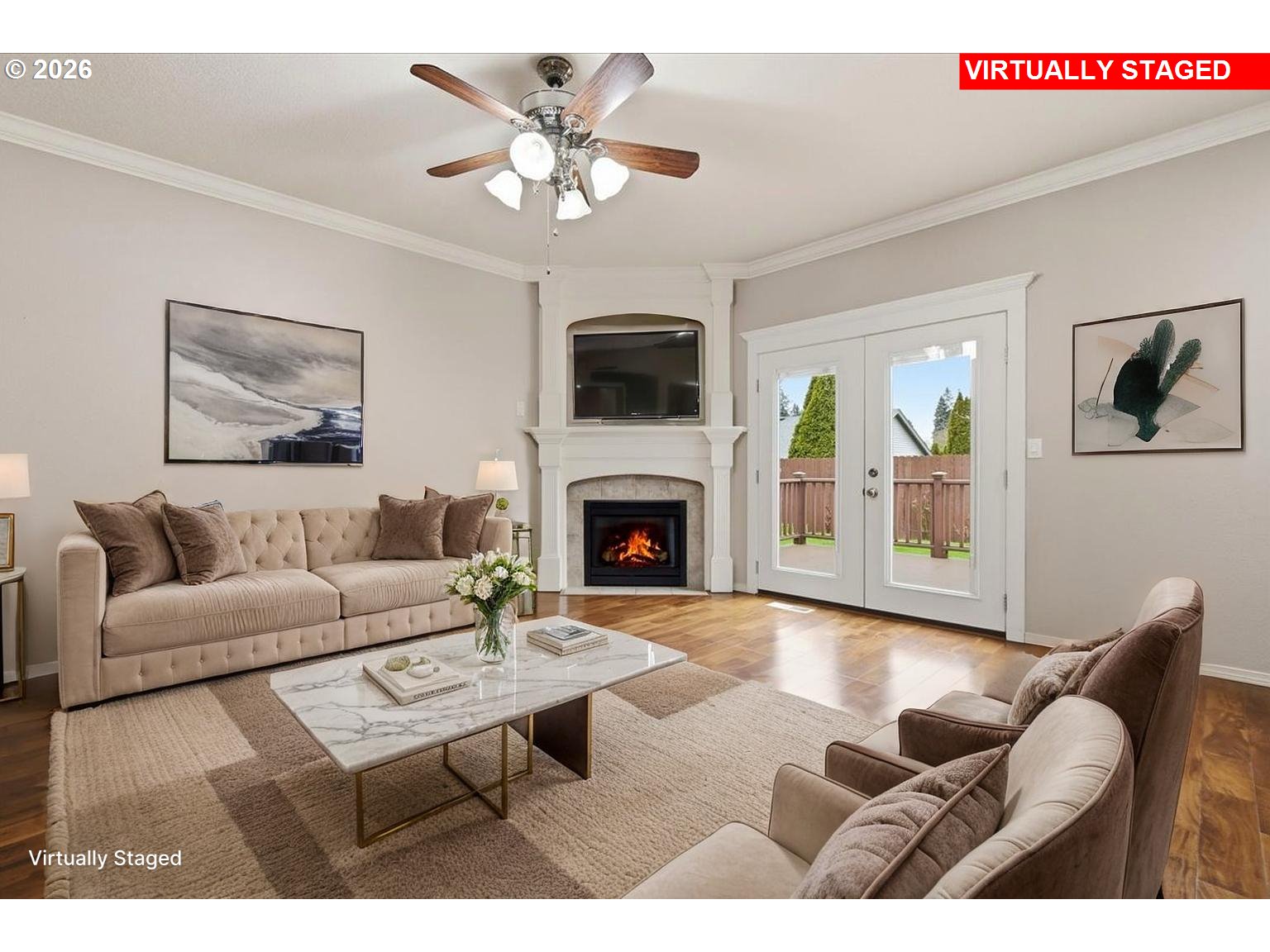 Welcome to this beautifully maintained 4-bedroom, 2.5-bath home offering 2,217 square feet of thoughtfully designed living space. Pride of ownership shines throughout, with high ceilings, crown molding, and elegant finishes that create a warm, timeless atmosphere. Engineered wood floors run throughout the majority of the first floor, including the entryway, kitchen, dining area, and one of the two living rooms, adding both durability and style. The open-concept main level is ideal for both everyday living and entertaining. The kitchen features granite countertops and flows seamlessly into one of the living rooms, where a cozy gas fireplace creates an inviting gathering space. A formal dining room provides an additional setting for hosting. The home also includes a dedicated laundry room, complete with a convenient laundry chute from one of the upstairs bedrooms. Upstairs, the spacious primary suite offers a peaceful retreat, complete with a beautifully updated en-suite bathroom featuring a stunning shower for a spa-like experience. All bathrooms have been tastefully remodeled with modern finishes. The 3-car garage is a standout feature, complete with a workshop addition behind the third bay—perfect for hobbies, projects, or extra workspace. Step outside to enjoy the inviting front porch and a fully fenced backyard designed for year-round enjoyment. The large, partially covered Trex deck makes outdoor entertaining effortless in any season. Conveniently located with quick access to I-205 and SR-500, this home offers the perfect balance of comfort, functionality, and accessibility. A rare opportunity to own a meticulously cared-for home with exceptional features, all within easy reach of town.