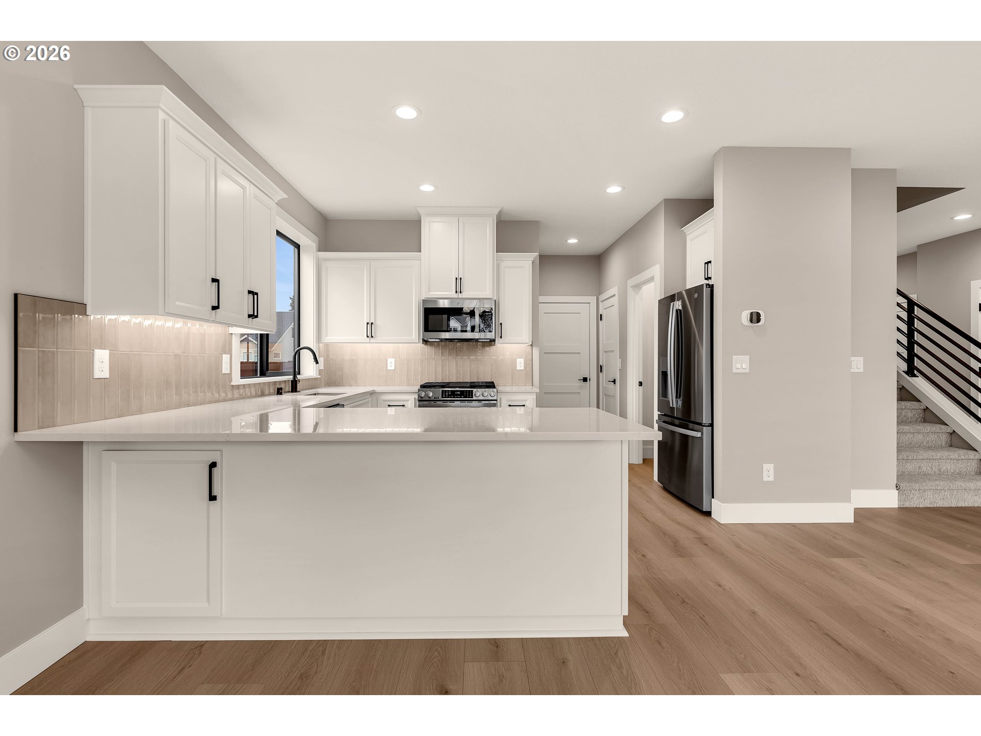 BEAUTIFUL NEW CUSTOM-BUILT HOME! This 1944 Sqft home is built with quality craftsmanship and attention to detail! Features include 4 bedrooms with loft, 2.5 baths, laminate flooring, high efficiency Milgard windows, 5 burner gas range, built-in microwave, SS appliances, quartz countertops, tile backsplash, walk-in pantry, refrigerator, CAT 5 ethernet, gas fireplace, built-in cabinetry, custom metal handrail, LARGE primary bedroom, walk-in tile shower, walk-in closet with built in wood shelving, double vanity sinks with toe kick lighting, laundry room with built-in cabinets, covered patio, gas stub for BBQ or heater, side mount garage door opener, landscaped front & back yard & so much more! This is a MUST SEE HOME!