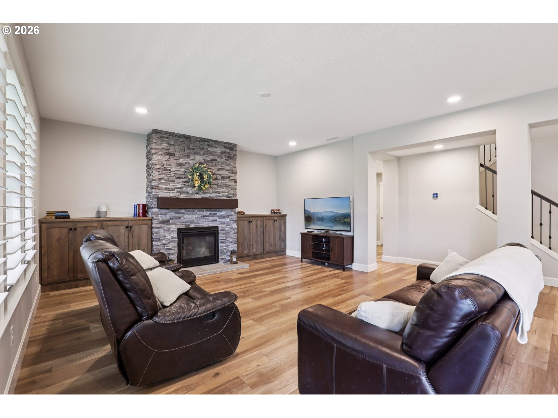 Step into your new home that truly has it all! This beautifully maintained & like-new home offers 5 bdrms + a dedicated office, including a highly desirable main-level bdrm, living space, & full bath—multi-generational living or a private workspace. The moment you enter, you’ll feel the soaring ceilings & expansive layout that creates an inviting & open feel. The heart of the home is the stunning kitchen, w/ dbl ovens, gas appl, generous pantry, & oversized island w/ ample seating. Thoughtfully designed w/ functionality in mind, the home includes the following pre-wired options, pendant lighting above the island, SS in bonus room, ceiling fan in great room & patio, hot tub, & security system. Upstairs, retreat to your luxurious prim ste w/ dual WI closets, a spa-like soaker tub, & a large tile shower. The additional bdrms are spacious & well-appointed + the convenient upstairs laundry that’s pre-plumbed for a utility sink. Enjoy upgraded window shutters that provide both style & privacy, complementing over 50k in builder upgrades that elevate the overall quality & finish.This home is as practical as it is beautiful, featuring 400-amp electrical service, finished & insulated garage, & whole-house water softener installed. Your private, fully fenced backyard w/ peaceful tree views—perfect for all. Located in a welcoming community w/ wide streets, playground, & pickleball courts, this home blends comfort, thoughtful upgrades, & modern convenience into 1 exceptional opportunity.