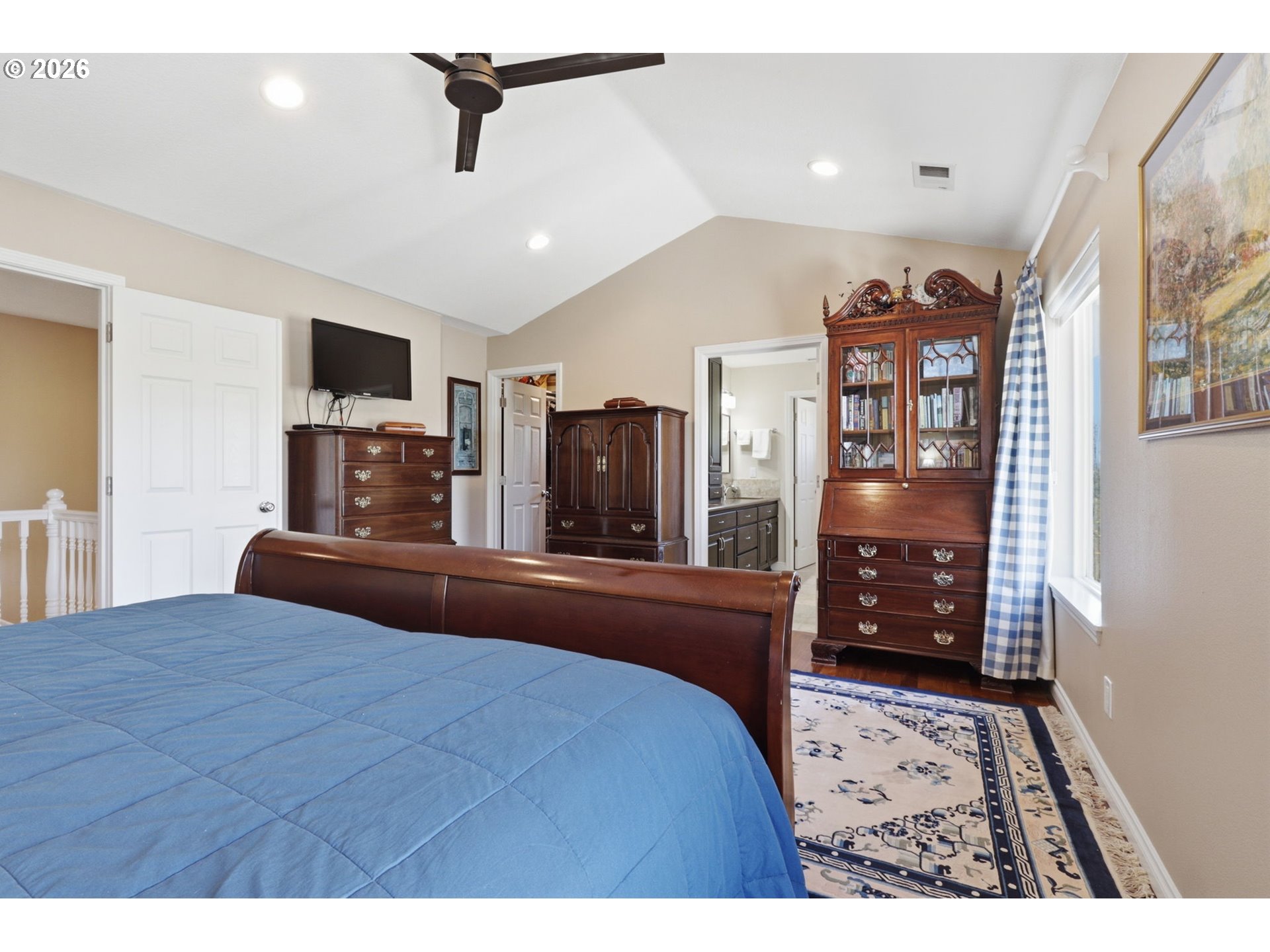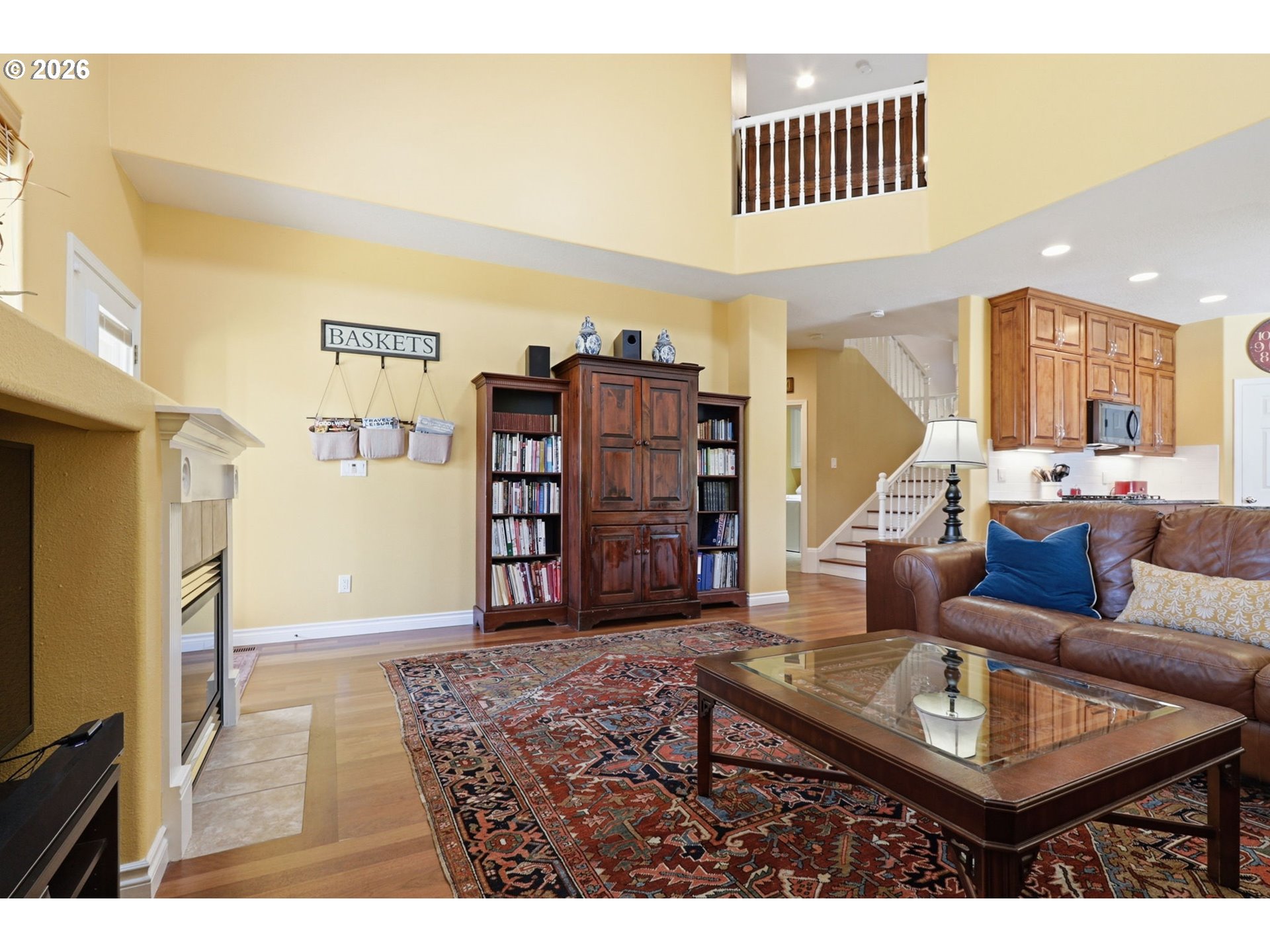 Perched above the street with beautiful terraced landscaping and a welcoming covered front porch, this home offers standout curb appeal and a warm, inviting feel. Inside, cherry hardwood floors, high ceilings, and a vaulted family room create a bright, open layout with great natural light. The kitchen is a true highlight, featuring a massive 9x4 island, stainless steel appliances, and a large walk-in pantry, all flowing easily into the main living spaces. A dedicated office with built-ins adds flexibility, while upstairs, the primary suite offers a spacious retreat with a well-appointed bath. Additional bedrooms are light-filled and versatile. Major updates include a newer HVAC system, newer hot water tank, water softener, and a roof that’s just three years old. The garage includes a workshop area for added function. Private patio, low-maintenance yard, and a great location in Village at Cedar Ridge, close to schools, hospital, parks, and everyday conveniences.
