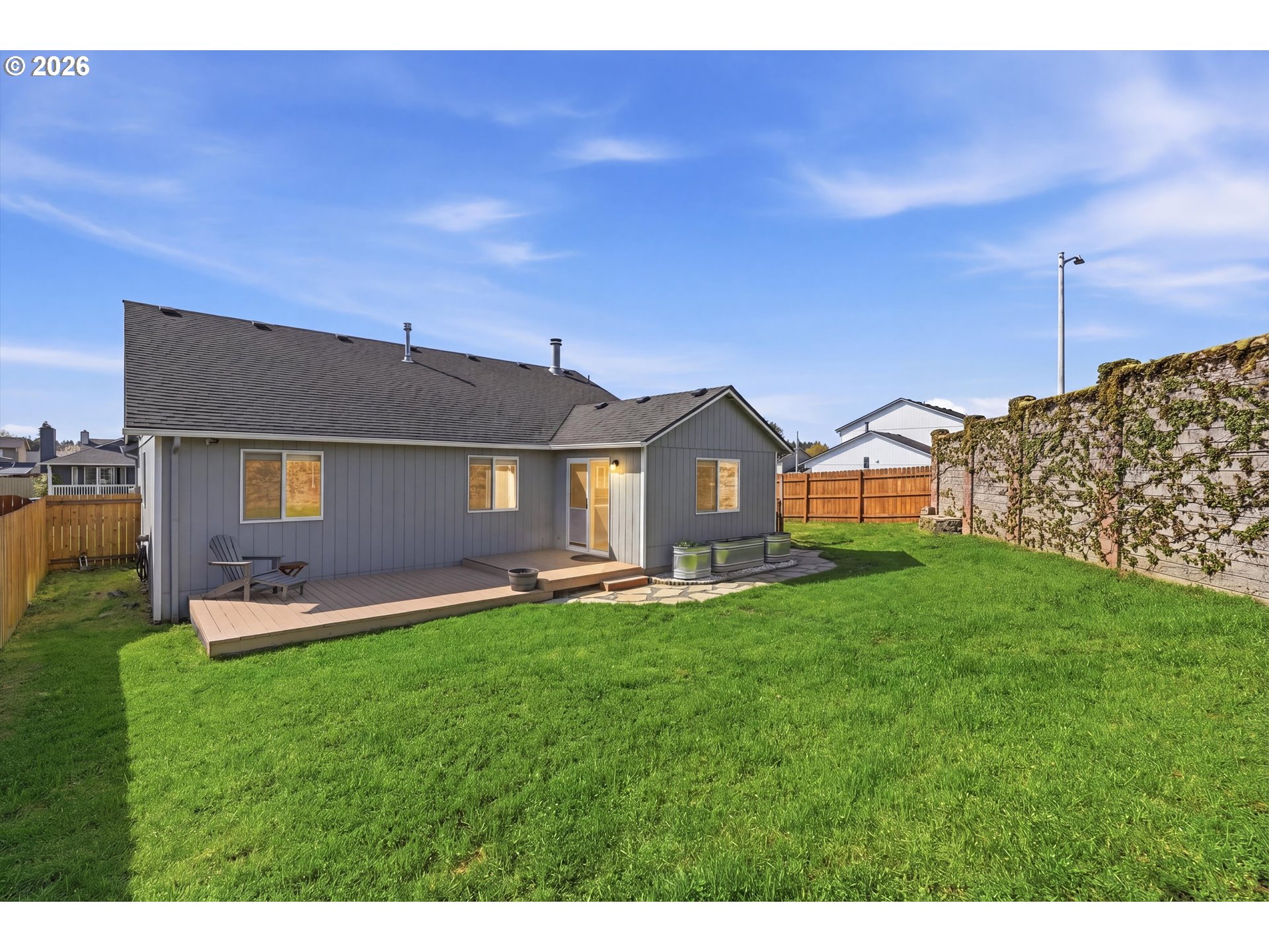 Turn-key single-level home perfectly positioned on a desirable corner lot with a spacious front yard & inviting curb appeal. Light & bright throughout with abundant natural light, luxury vinyl plank flooring, updated carpeting, and tasteful interior colors. Functional floor plan featuring both living & family rooms, plus an open kitchen with great flow for everyday living. Newer interior paint & refrigerator, with air conditioning & washer & dryer included.The primary suite offers built-ins & an en suite bath. Two-car garage with insulated door & additional overhead storage.Private backyard retreat with deck, immaculate landscaping, fenced dog run, RV/boat parking, extended side yard, pear tree, updated fencing, and outdoor lighting—ideal for relaxing or entertaining. Additional features include a patio walkway, newly painted front porch, garden troughs, and a retaining wall creating usable outdoor space.Ideally located just minutes from Salmon Creek Greenway access at Klineline Pond—offering miles of paved walking & biking trails, plus nearby parks, recreation, and everyday conveniences.
