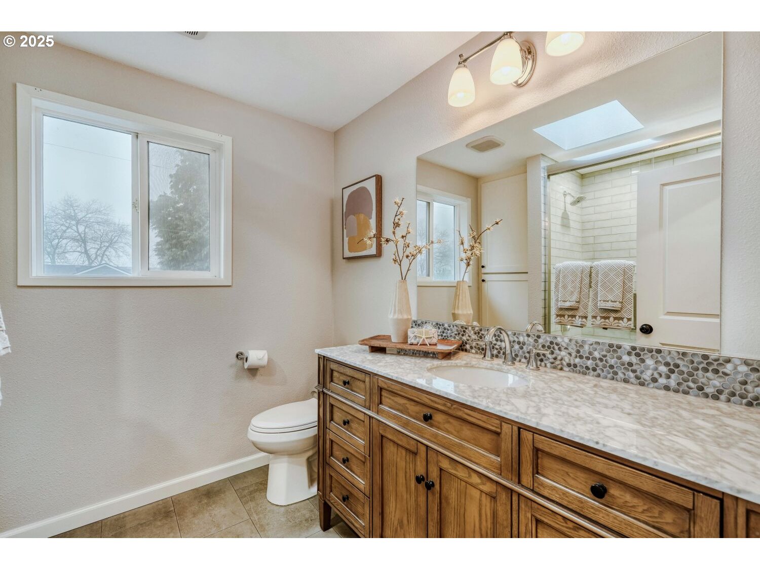 **OPEN SAT 1/3 1-3PM**Extensively updated classic home in a prime Vancouver location! This 3-bedroom, 3-bath detached residence offers 2,250 sq ft of thoughtfully improved living space, blending 1943 charm with modern upgrades throughout. The refreshed kitchen features new quartz countertops, fresh paint, and tile back splash, while new flooring spans most of the home—wood and tile on the main level with laminate-style flooring on the lower and upper levels. The main-level living room is warmed by wood flooring and a cozy gas fireplace, while the bathroom showcases custom period tile. Major system updates provide peace of mind, including brand-new Hardie plank siding around the entire building envelope, a presidential 20-year tear-off roof (Summer 2024), new driveway (Fall 2024), newer windows, newer plumbing throughout, newer sewer line, newer electrical panel, newer sump pump in the basement bathroom, newer water collection tanks in the yard, and a high-efficiency natural gas tankless water heater (2020).The remodeled primary suite is a true retreat with a private bath featuring custom tile, tile floors, a skylight, and a new vanity with quartz countertops. Along with a bonus space off the primary that would make a full walk-in closet or den/library space. Comfort is enhanced with gas forced-air heating in the main living areas and a mini-split system in the upstairs primary suite. Outdoor living shines with a custom Trex-style deck (2020), landscaped backyard with shed, hot tub (approximately 5 years old), and a brand-new sprinkler system in both front and back yards. Ideally located near Columbia River bike trail access, the Vancouver Farmers Market, and the vibrant downtown Vancouver Waterfront—this home offers exceptional updates, comfort, and lifestyle appeal.