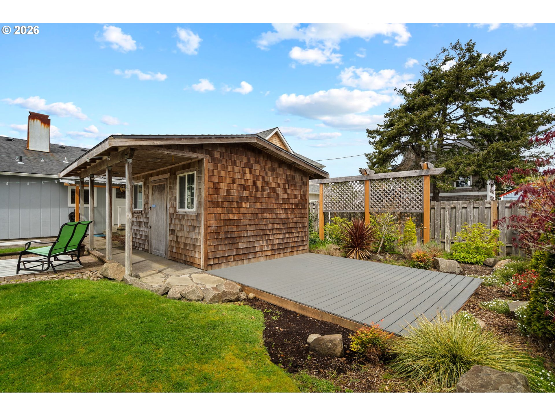 If a beach house 3 short blocks to the ocean was on your bucket list this year, meet 2233 S Downing St. A darling two bed, two bath cottage with all the coastal charm that you'd think of when the words 'beach house' come to mind. From the cedar shake siding and the front porch swing, to the she shed and fire pit in the yard, or the claw foot tub and cozy eat-in kitchen. Numerous updates throughout the property, roof in 2018, exterior paint 2024, primary bath 2019, landscaping and trex deck in 2023, & more! Nows the time to make those Oregon Coast dreams reality!
