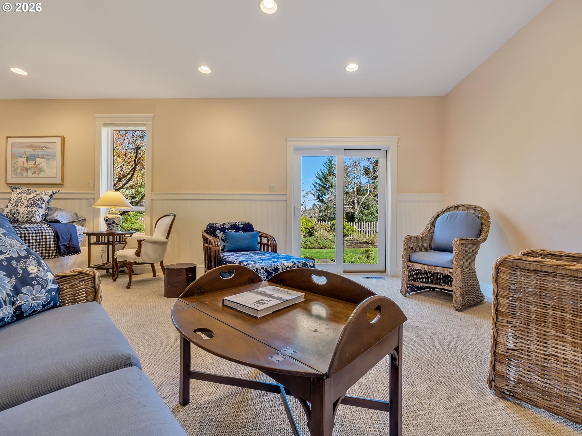 Well built and meticulously maintained, this exquisite Shamrock Pines home offers an outstanding floor plan designed for comfortable main-floor living and effortless entertaining. The primary suite on the main level features a cozy gas fireplace, a lovely sitting area overlooking the garden, and direct access to a quiet patio-an ideal retreat for relaxation. Light, airy rooms throughout the main floor create an inviting flow and abundant natural light. A sunny south facing Den is also favorite The second level is perfect for extended family or guests, with a spacious family room featuring built-in bookshelves-also makes a great library or office, and a spacious bonus room with a skylights and a gas-stove fireplace. A 1620 sq ft garage with 4 stalls provide ample room for craft or project stations and offers access to the 2nd floor bonus room. See home features document for much more.