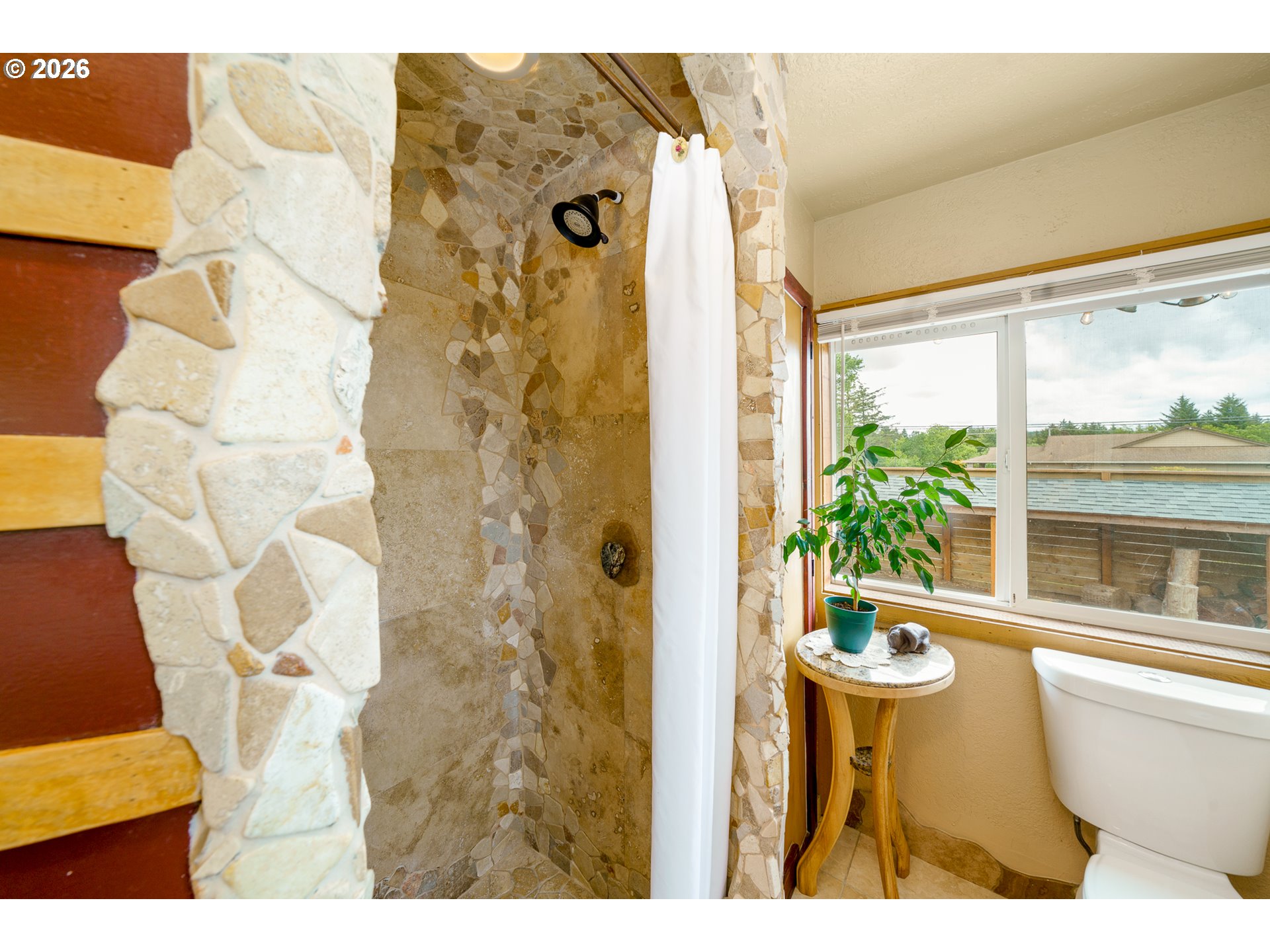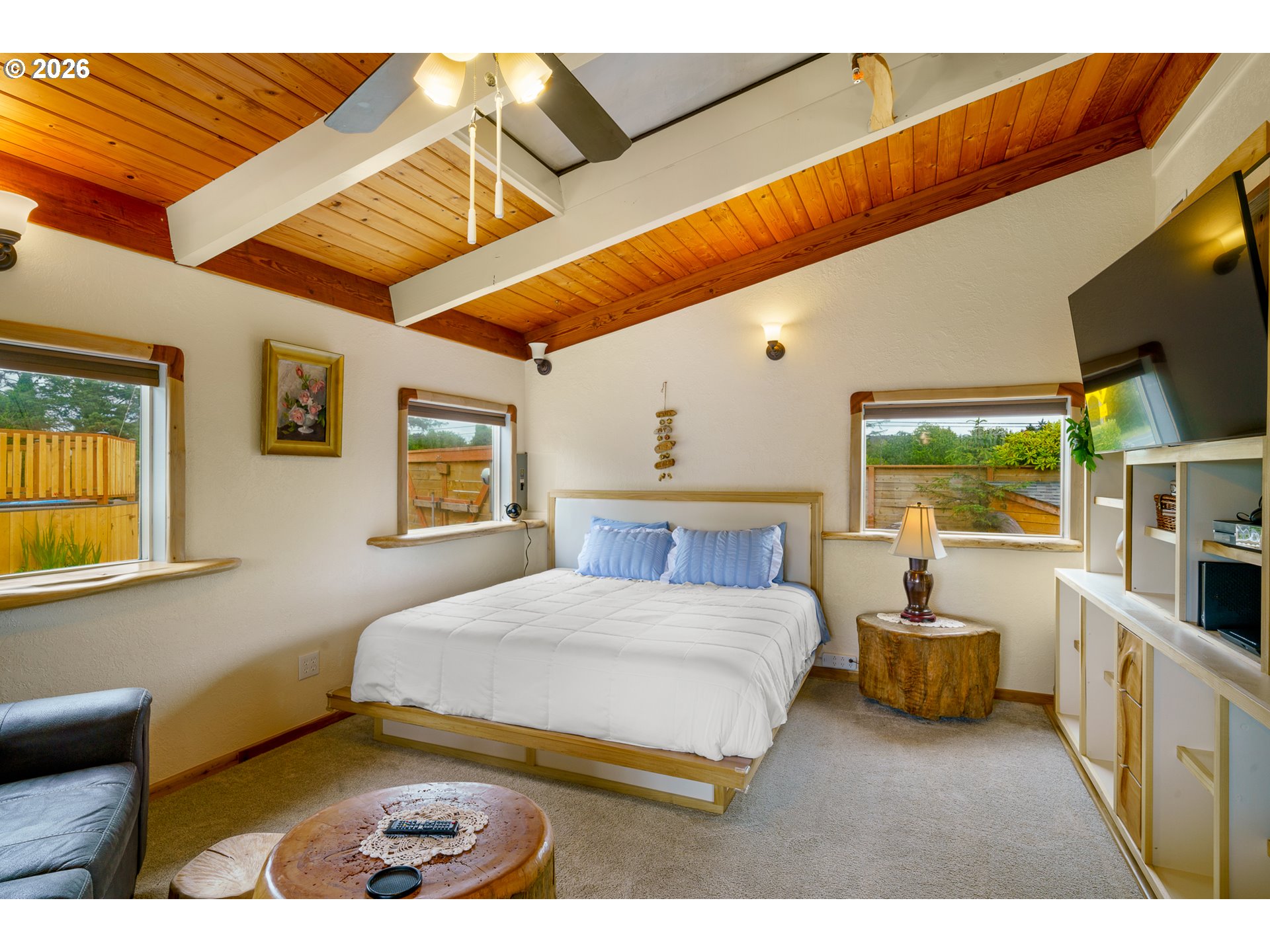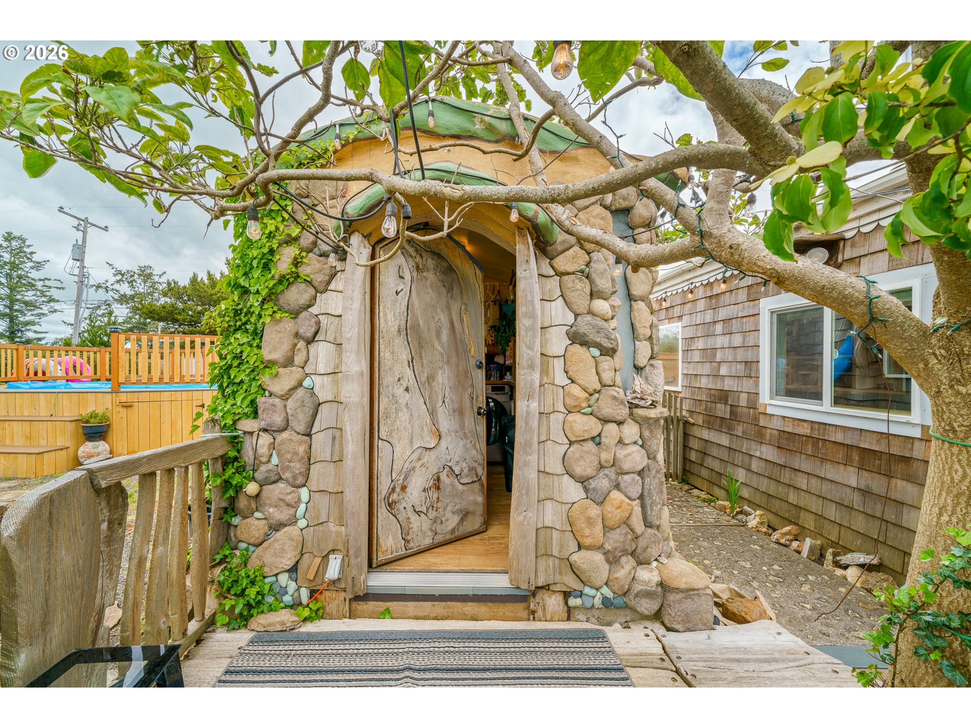 Elevated waterfront property with 195 ft of Neawanna estuary frontage and panoramic river to ocean views. This one of one parcel sits 30 ft above the water on land once occupied by a Clatsop village and referenced in the Lewis & Clark journals as a trading point and western turnaround. C3 commercial zoning qualifies for commercial finance and supports flexible live work or income producing uses, with 195 ft of Highway 101 with dedicated ingress/egress. Includes a bohemian home, detached studio + shop, room for additional units, and an operational STR license. Both the hot tub and pool overlook the estuary, surrounded by wildlife, tidal channels, and open water just minutes from Seaside and Gearhart.