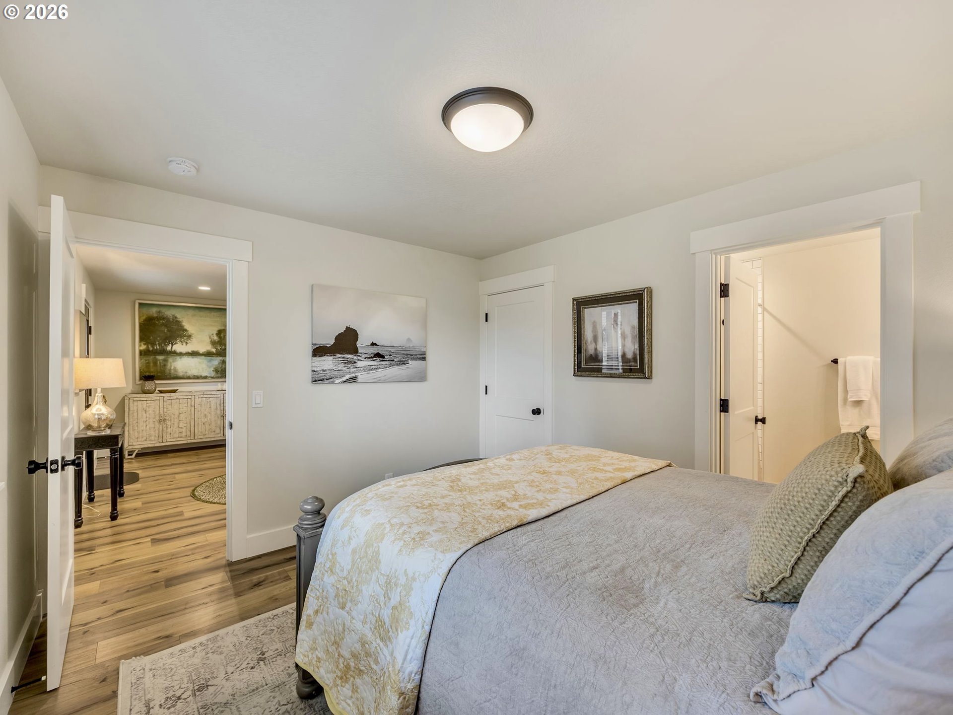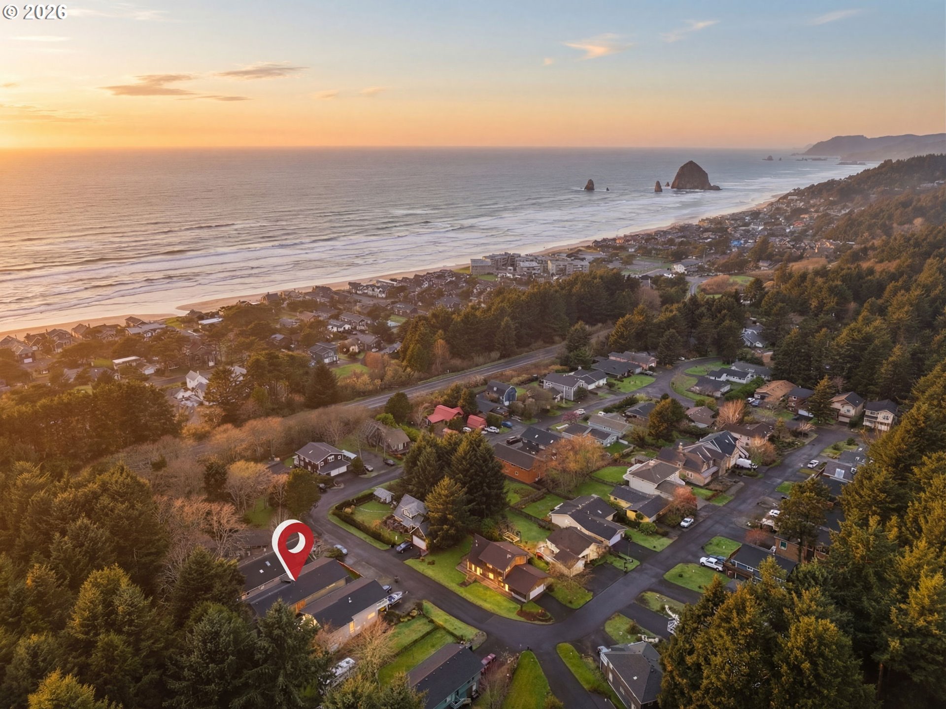 Unique offering in Haystack Heights, with forest at your backyard and just a short jaunt to the beach. This house is nestled in a quaint neighborhood just minutes from the stores and restaurants of Cannon Beach. Custom built in 2021 by a local builder, with high quality construction and timeless coastal style, this home is sure to impress! The floor plan features 5 bedrooms and 5 1/2 baths, including 4 beautiful en suites and a charming 1-bedroom ADU apt. above the garage. It is ideal for guests or potential rental income. High-end finishes include quartz, tile and a luxe kitchen with oversized island perfect for large gatherings. Enjoy 2 gas fireplaces, peeks of the ocean, front deck sunsets, new hot tub, and darling finished shed perfect for an office or studio. This one is truly special.